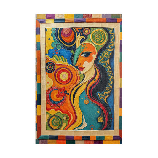 Abstract Woman Face Puzzle, Vivid Bold Colorful Jigsaw Game for Adults