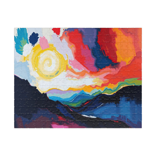 Abstract Sunrise Jigsaw Puzzle - Swirling Sun Illustration and Colorful Horizon