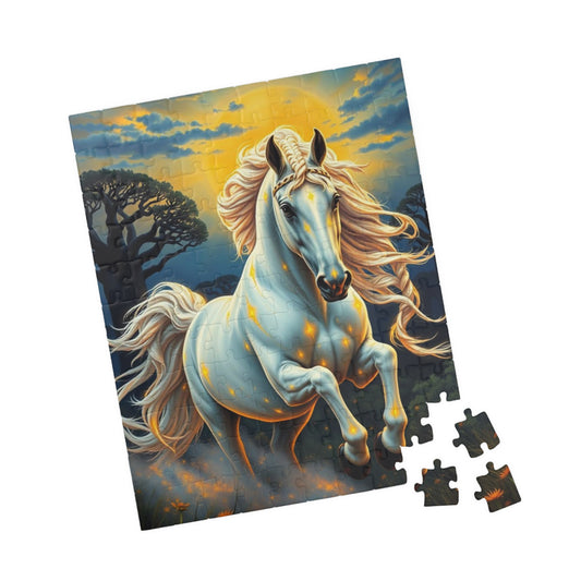 African Jungle White Horse Jigsaw Puzzle, Enchanting Horse Lover Gift for Friends, Family Game Night, Mindful Birthday Holiday Fun