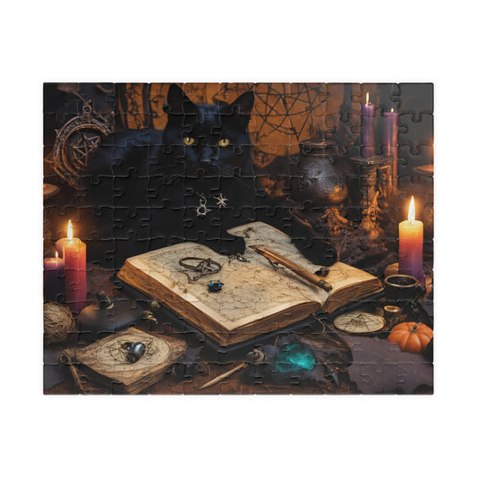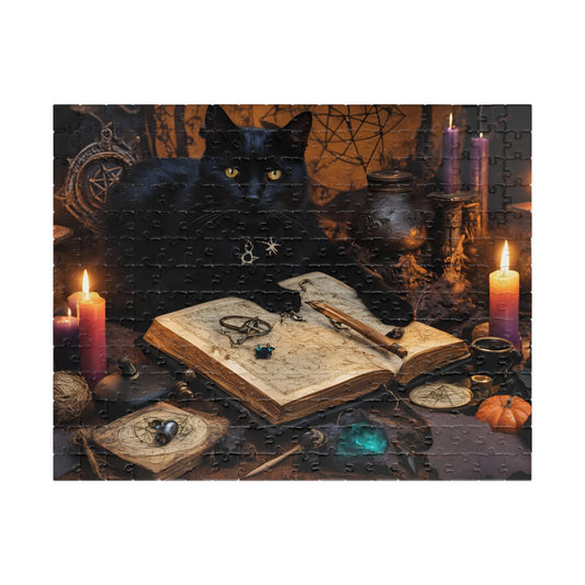 Mystical Black Cat Puzzle, Witch's Familiar and Ancient Spellbook Jigsaw Game, Entertaining Hobby, Mindful Gift for Dark Art Puzzle Lover
