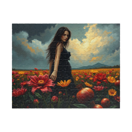 Gothic Floral Jigsaw Puzzle, Lone Figure in Flower Field Dark Fantasy Art Puzzle for Adult, Indoor Leisure Activity, Gift for Family Friends