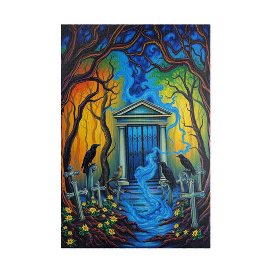 Mystical Cemetery Puzzle, Gothic Dark Fantasy Art Jigsaw Game, Unique Gift for Adult, Solo Fun, Brain Teaser, Quiet Pastime Holiday Activity