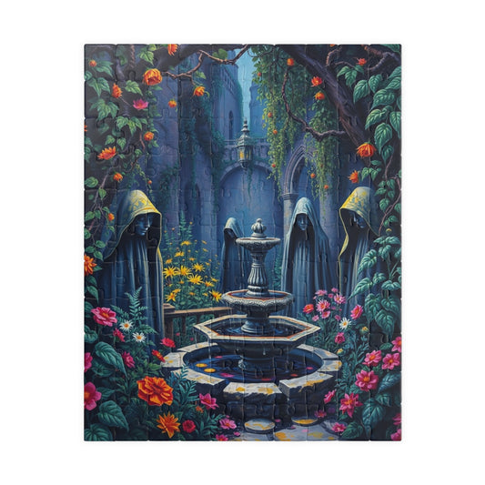 Ghostly Gothic Garden Puzzle, Dark Fantasy Scene with Glowing Flowers and Hooded Figures, Quiet Leisure Staycation Activity for Puzzle Lover