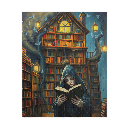 Gothic Witch Puzzle, 110, 252, 520, 1014-Piece Black Cat Dark Library Jigsaw Game for Adults, Halloween Decor, Unique Gift, Witchcraft Art