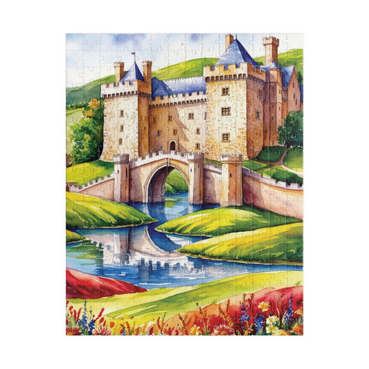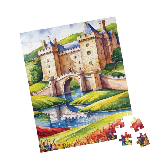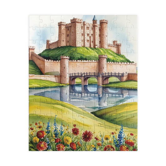 Enchanted Castle Landscape Jigsaw Puzzle, Rolling Hills and Fairytale Fortress, Ideal Gift for Medieval Art Enthusiast, Staycation Activity