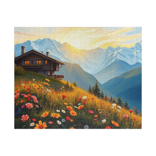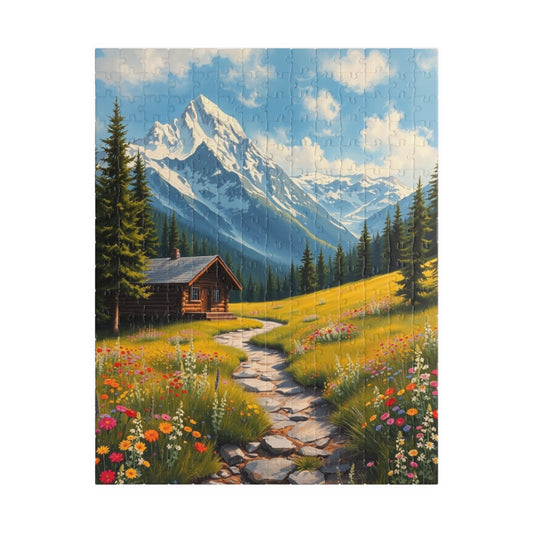 Mountain Cottage Illustration Puzzle, Nature Scene Jigsaw, 110-1014 Pieces, Gift for Nature Lovers, Family Fun, Relaxation Activity