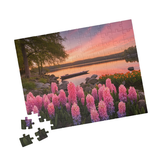 Puzzle - Lakeside Sunset Hyacinths, 110, 252, 520, 1014-piece, Jigsaw Game, Relaxing Hobby, Nature Scene, Mindfulness Activity, Floral