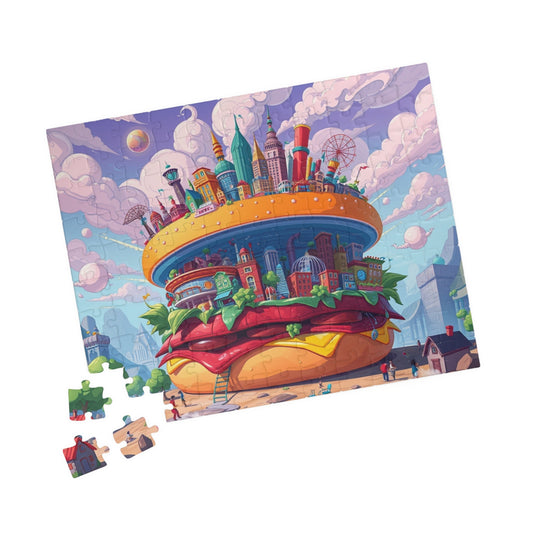Giant Burger Cityscape Pop Art Puzzle, Colorful Fun and Unique Jigsaw Game Toy, Gift for Food and Urban Art Lovers, Entertaining Pastime
