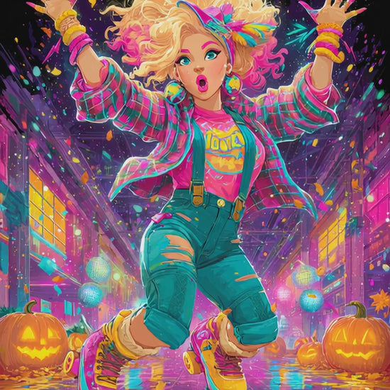 1980s Autumn Cowgirl Jigsaw Puzzle - Neon Skating Rink, Retro Roller Skating Game for Fun Family Nights, Gifts for Adults, Brain Teaser