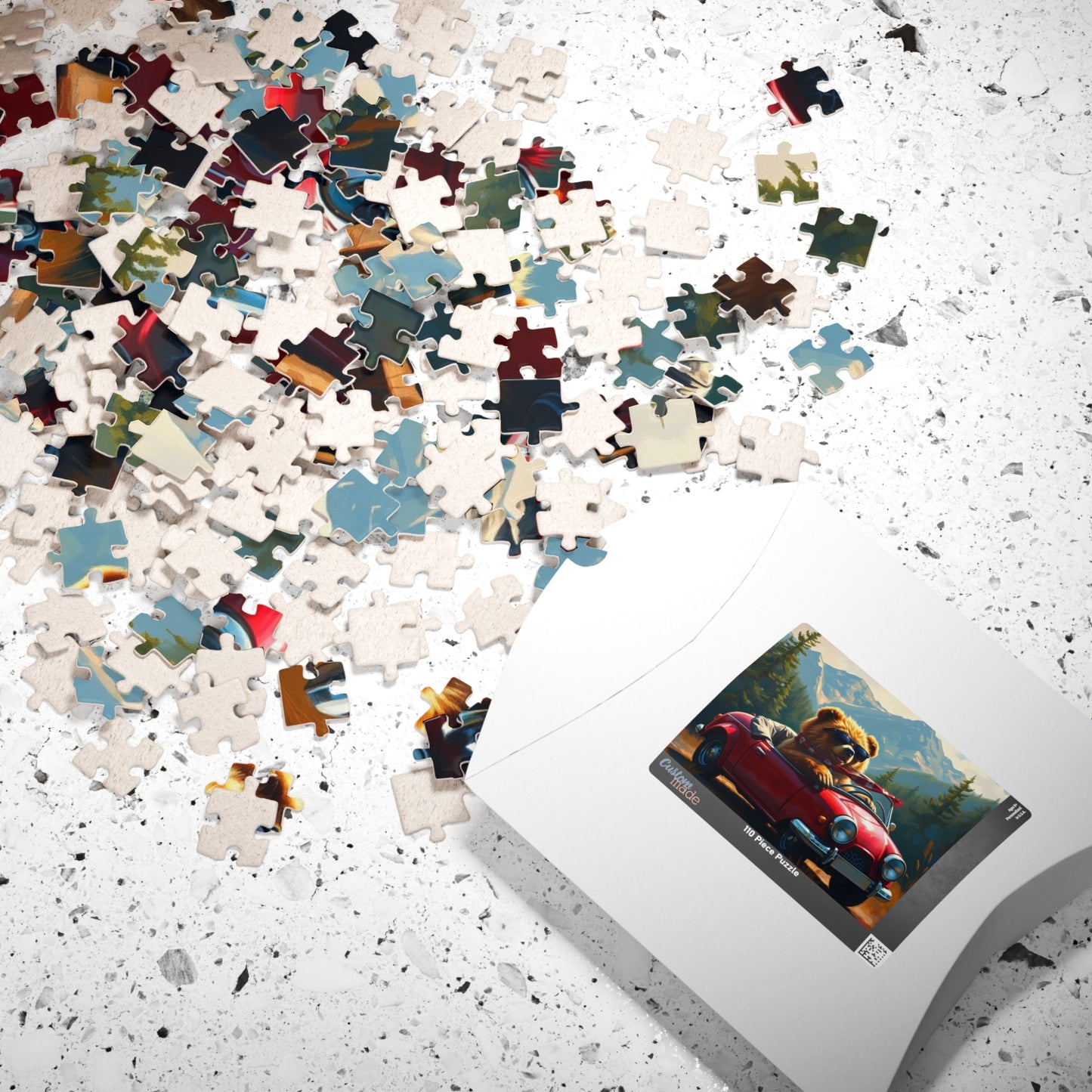 Adventurous Bear Jigsaw Puzzle for Adults, Fun Family Game Night, Mountain View Scenic Puzzle Artwork, Animal Lover Gift for Friend