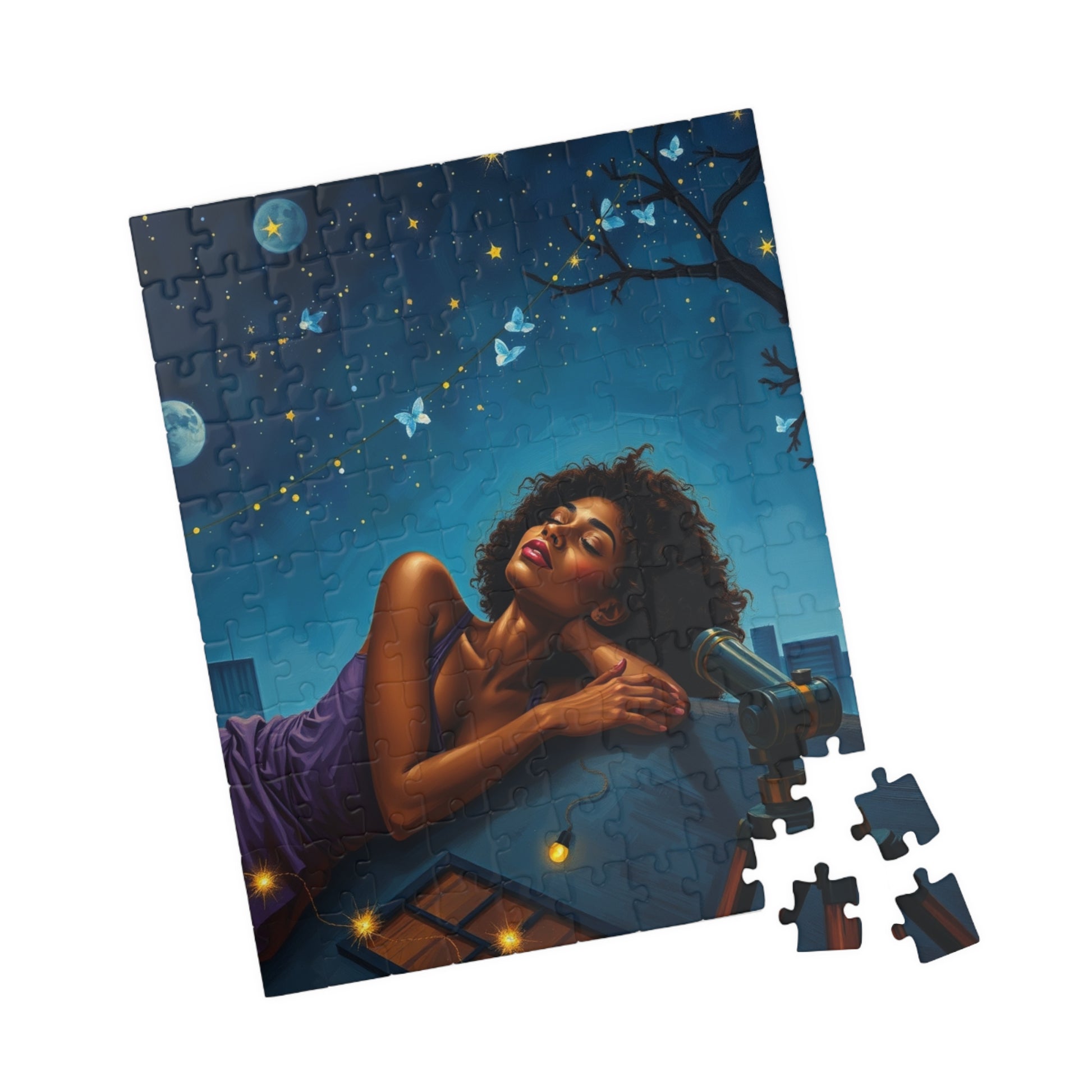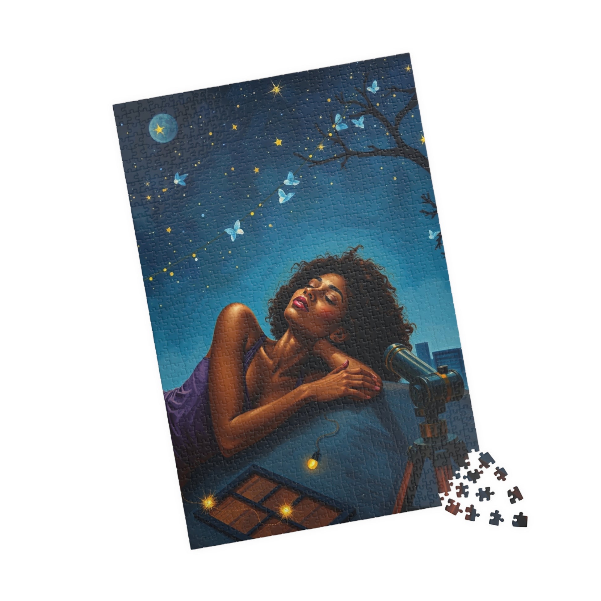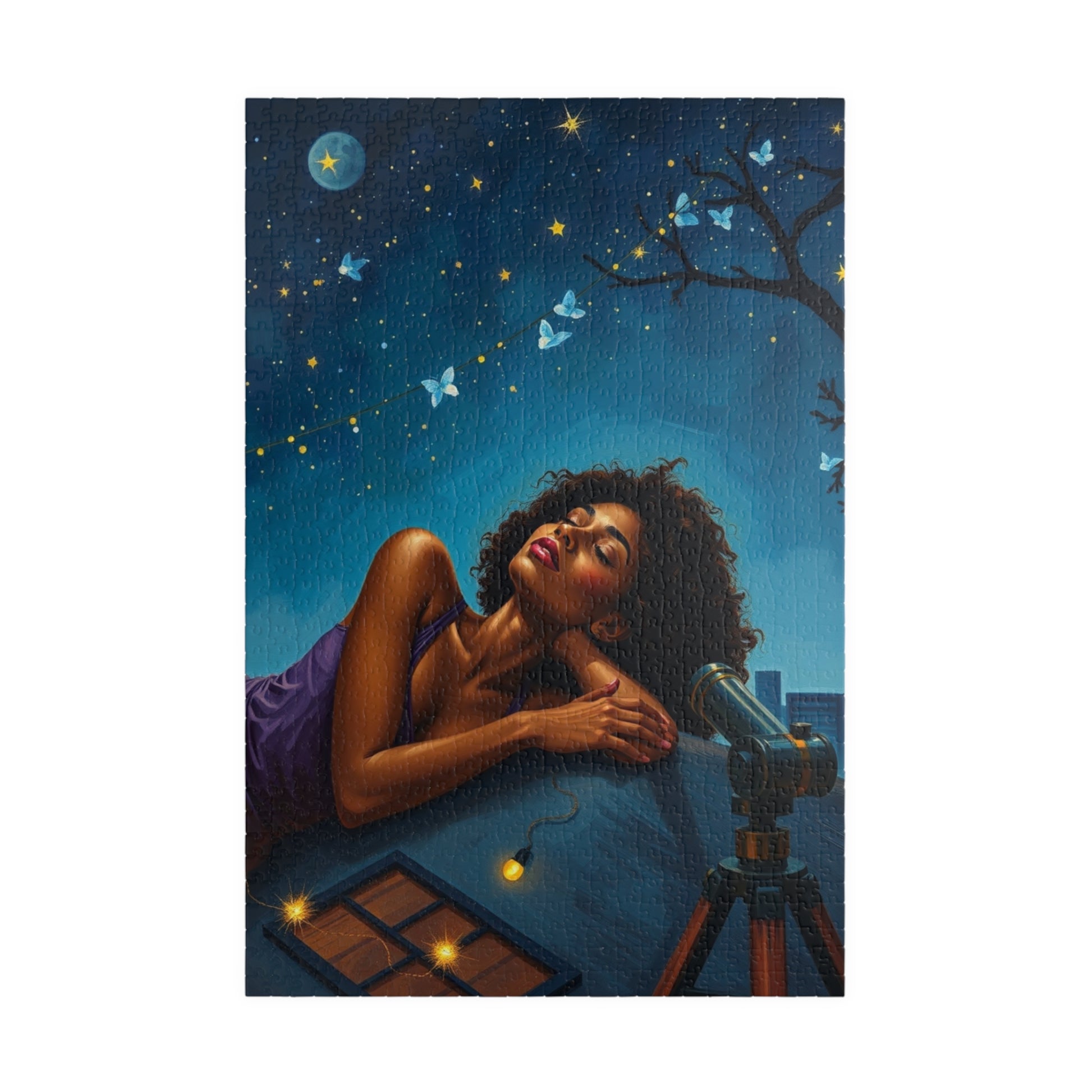 African American Woman Jigsaw Puzzle, Starry Night Scene, Black Art, Black Girl Puzzle, Perfect Gift for Black People, Family or Solo Fun
