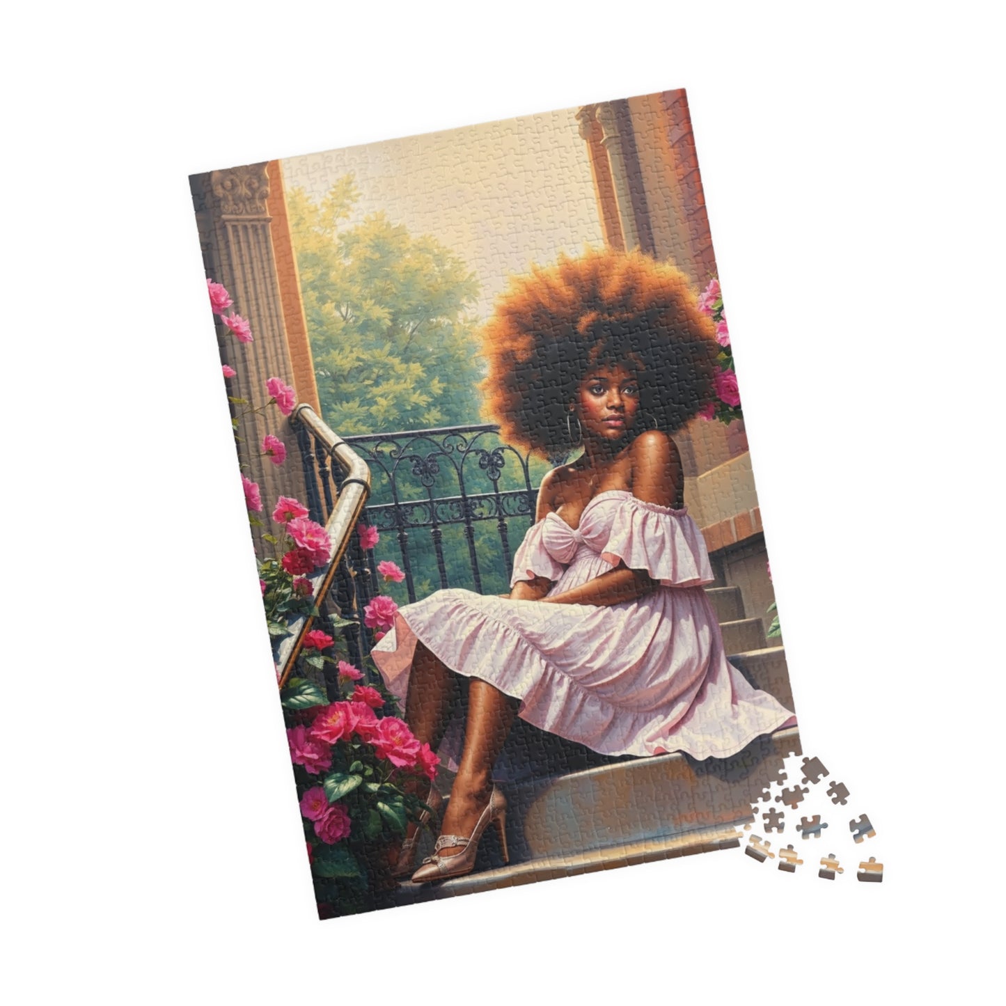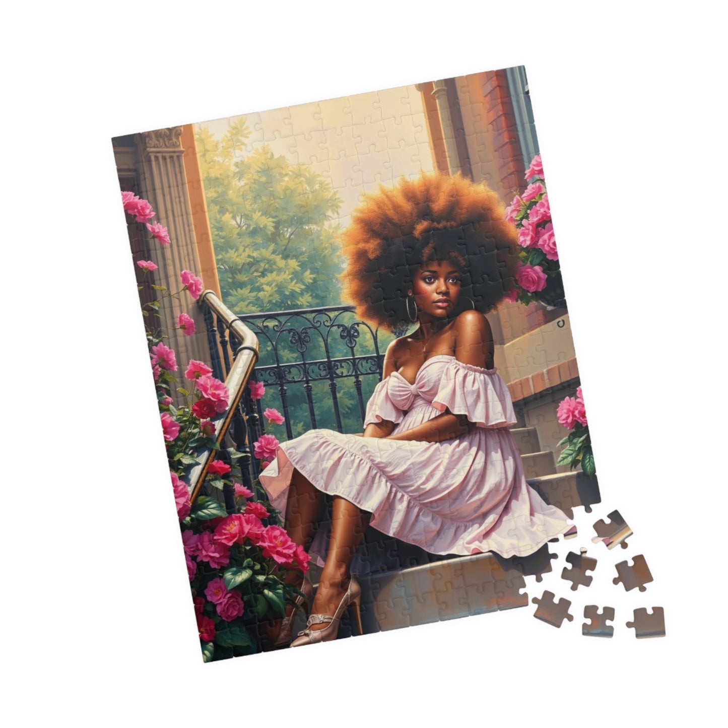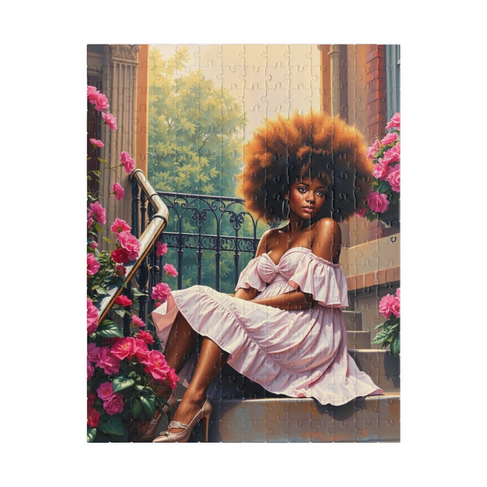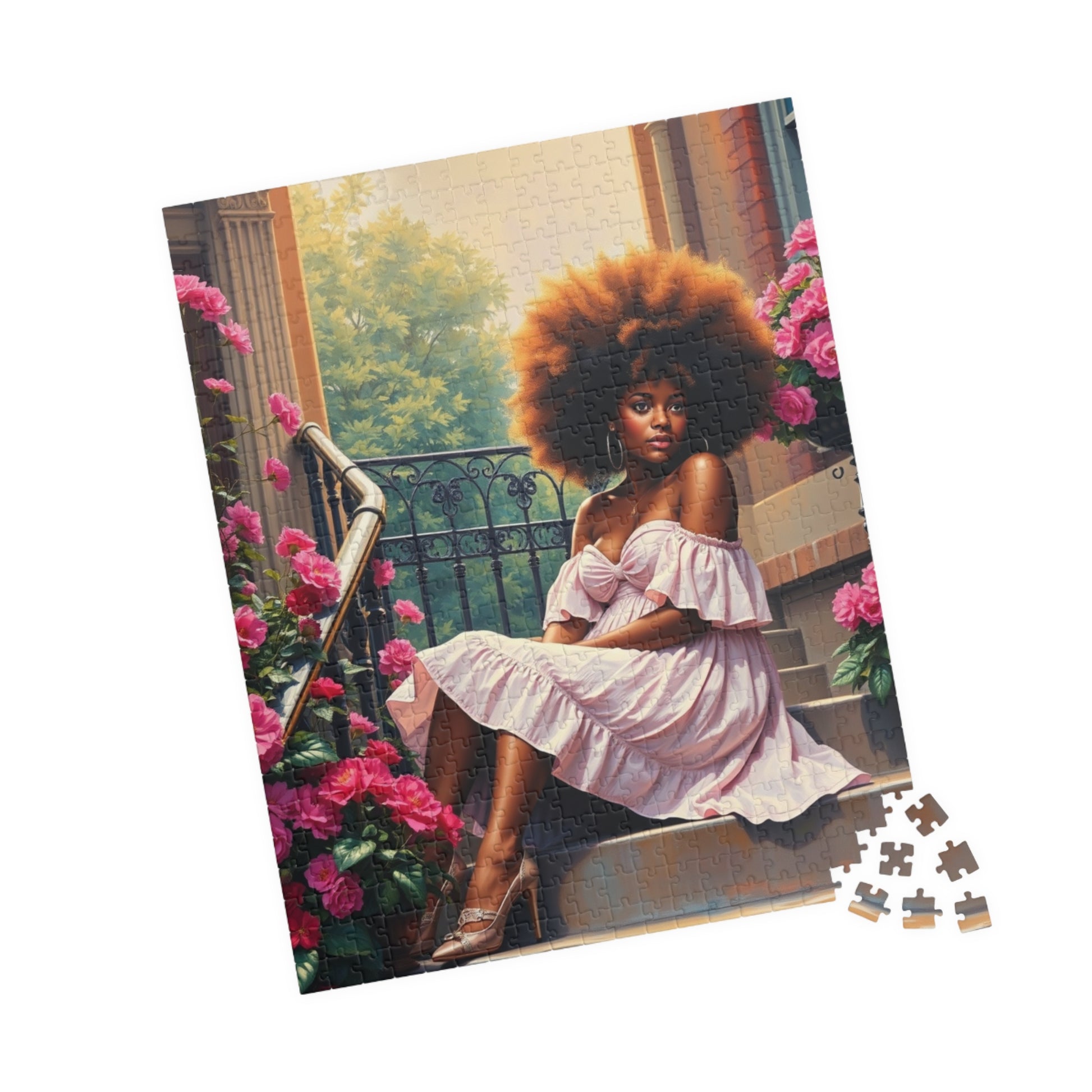 African American Woman Puzzle, Black Lady on Porch Jigsaw Game, Afrocentric Gift for Adults, Unique Puzzle Black Art