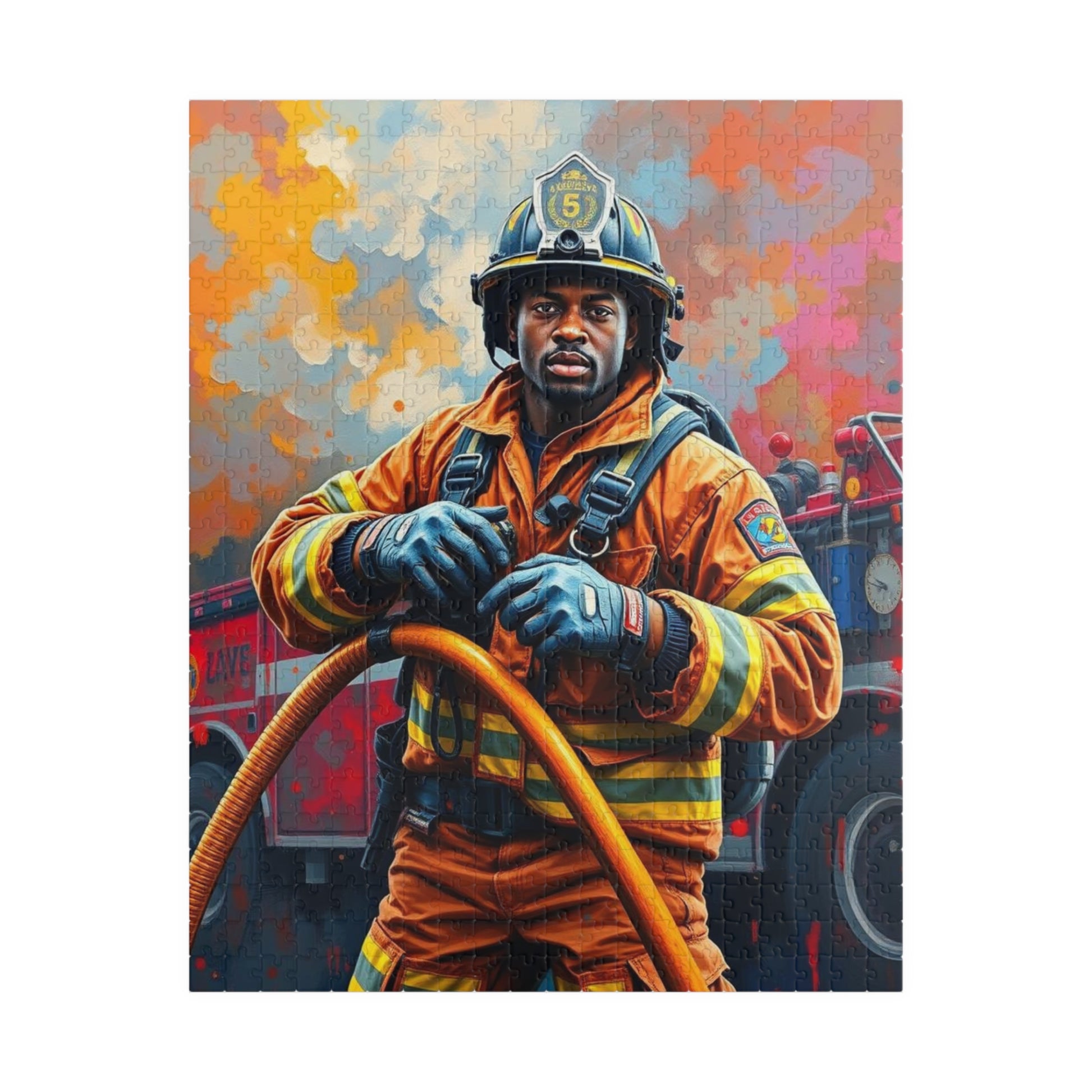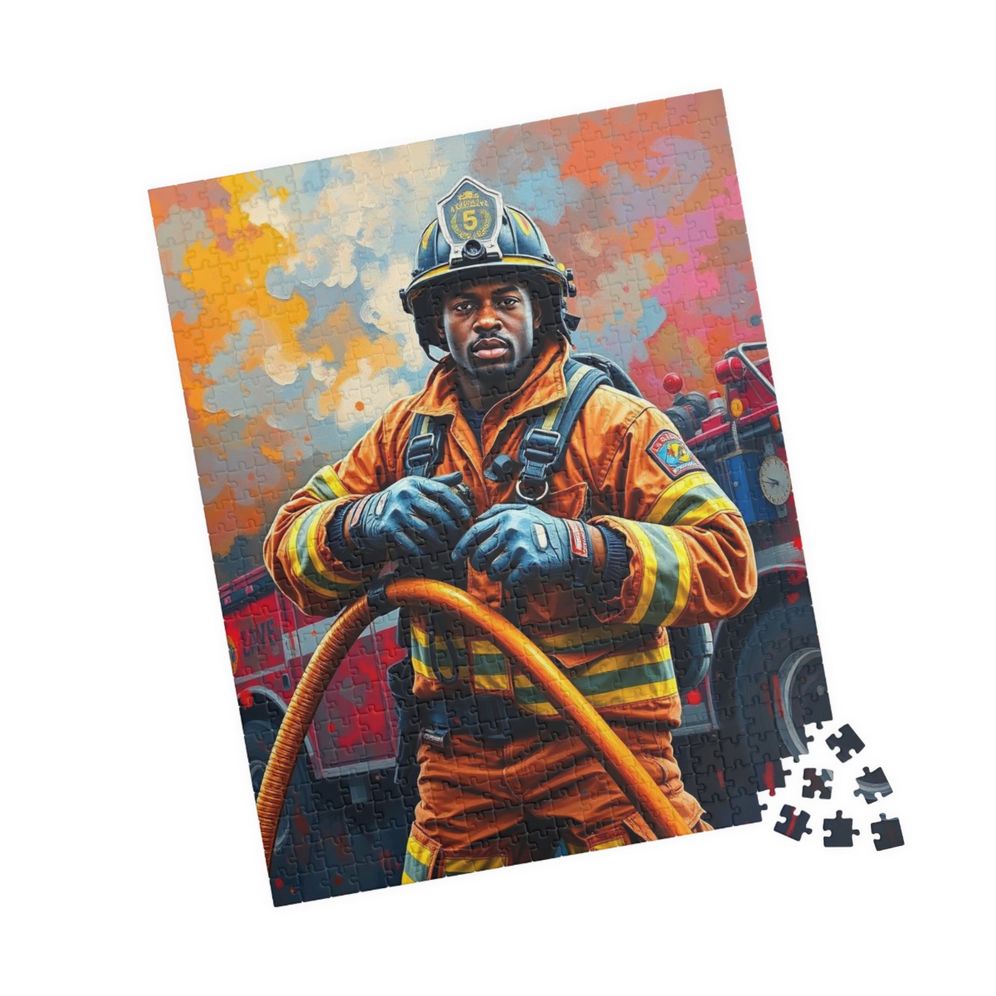 Afrocentric Firefighter Puzzle, African American Man Inspirational Black Art Jigsaw Game, Puzzle Lover Holiday Gift, Family Bonding Activity