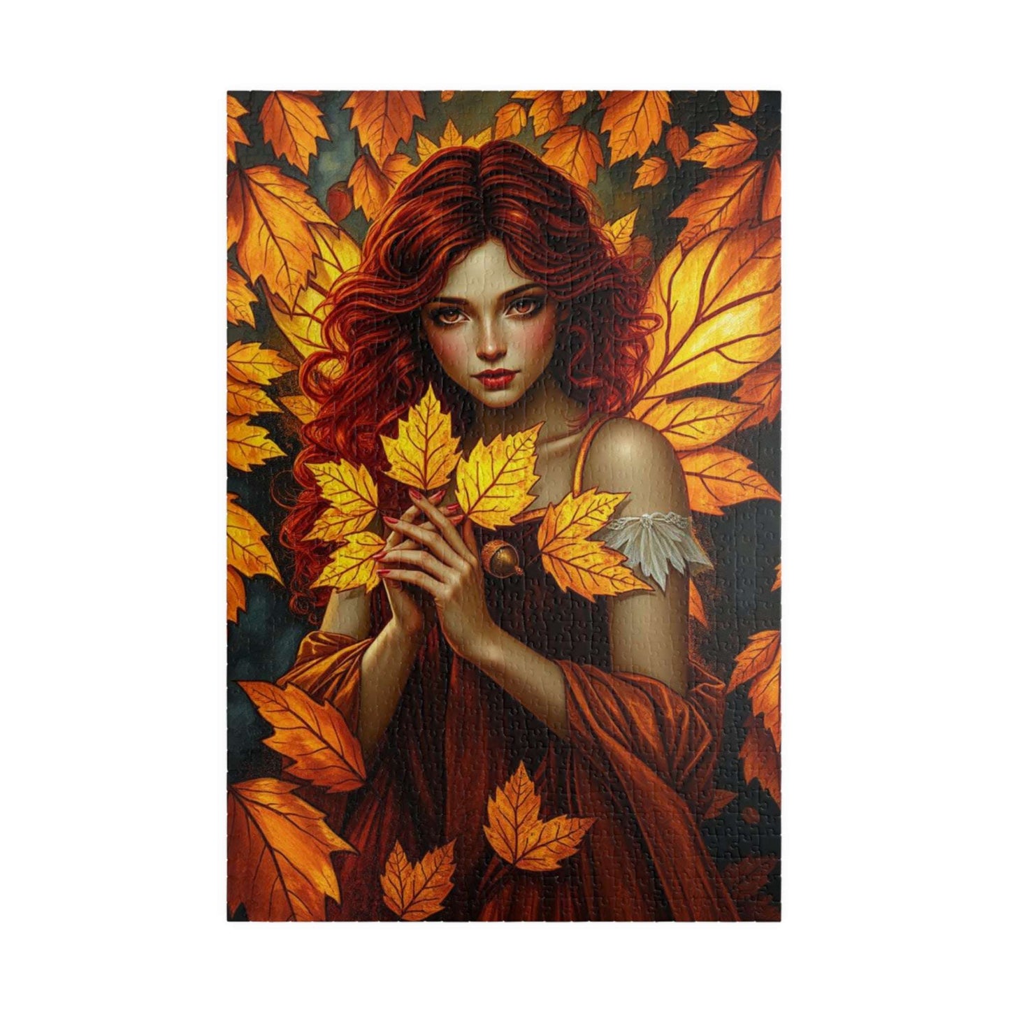 Dive into a world of color and creativity with this enchanting puzzle! Each piece is a gateway to relaxation, perfect for cozy evenings spent with friends or family. This stunning jigsaw puzzle featuring a fairy inspired by Pre-Raphaelite art with flowing red hair and a bronze-ruby gown, she stands gracefully amidst golden foliage, amber leaves, and chestnut vines creating a dreamlike tapestry of fall magic. Whether you prefer to tackle it solo or as a team, this puzzle transforms into a captivating piece of art once completed. It's an ideal companion for anyone who enjoys a challenge while unwinding, making it a fantastic gift for puzzle enthusiasts, art lovers, or anyone looking to engage their minds through fun. Celebrate family gatherings, holidays, or quiet weekends with this artistic puzzle that brings people together. Perfect for birthdays, holidays, or as a thoughtful gift for any occasion!