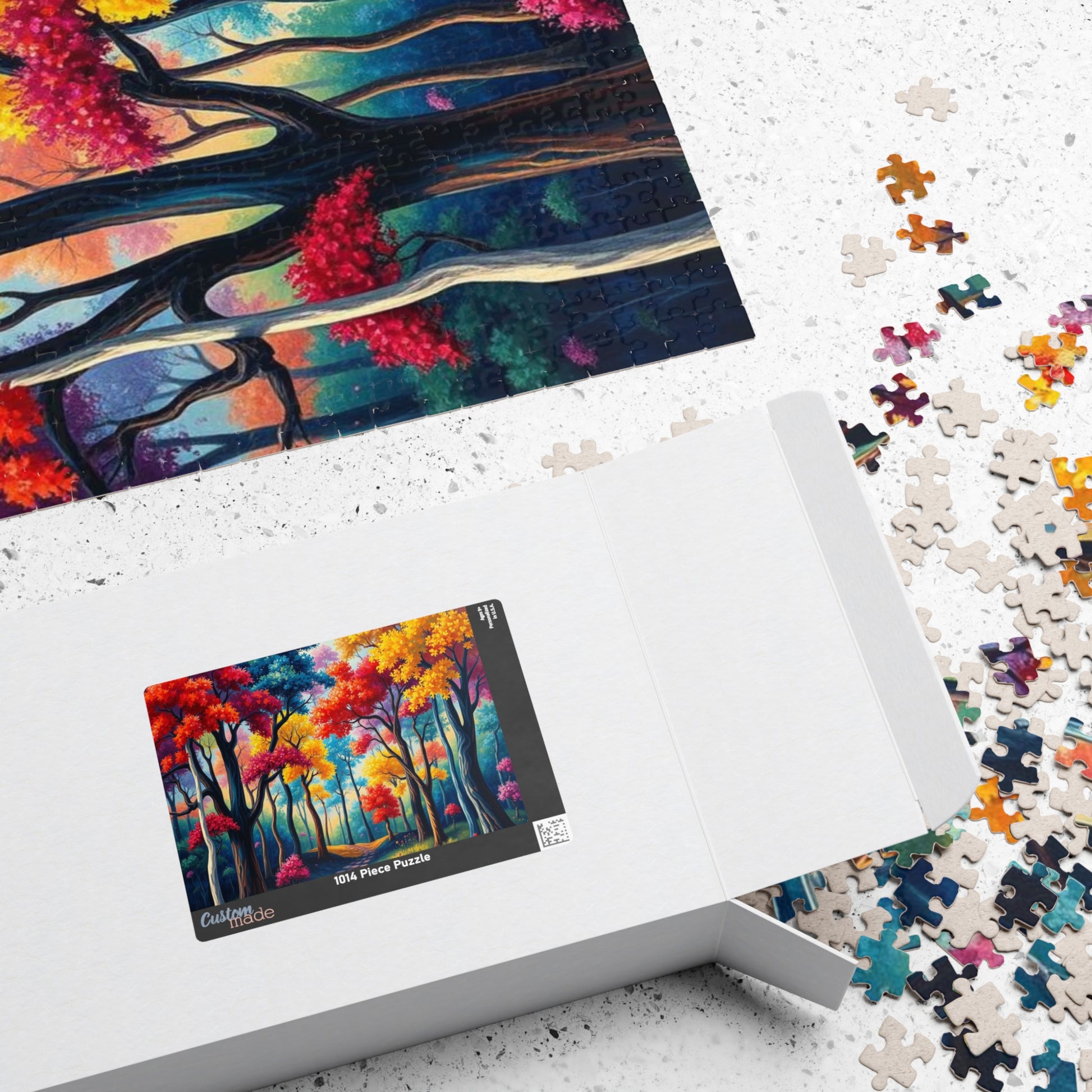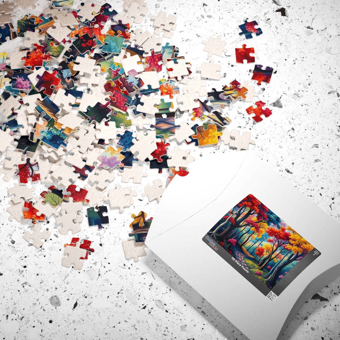 Product features - Vibrant colors - Paper box: Comes in a durable box featuring your artwork on top. - Glossy finish: Full-color laminate on one side for a polished look. - Multiple piece options: Choose from 110, 252, 520, or 1014 high-quality chipboard pieces.