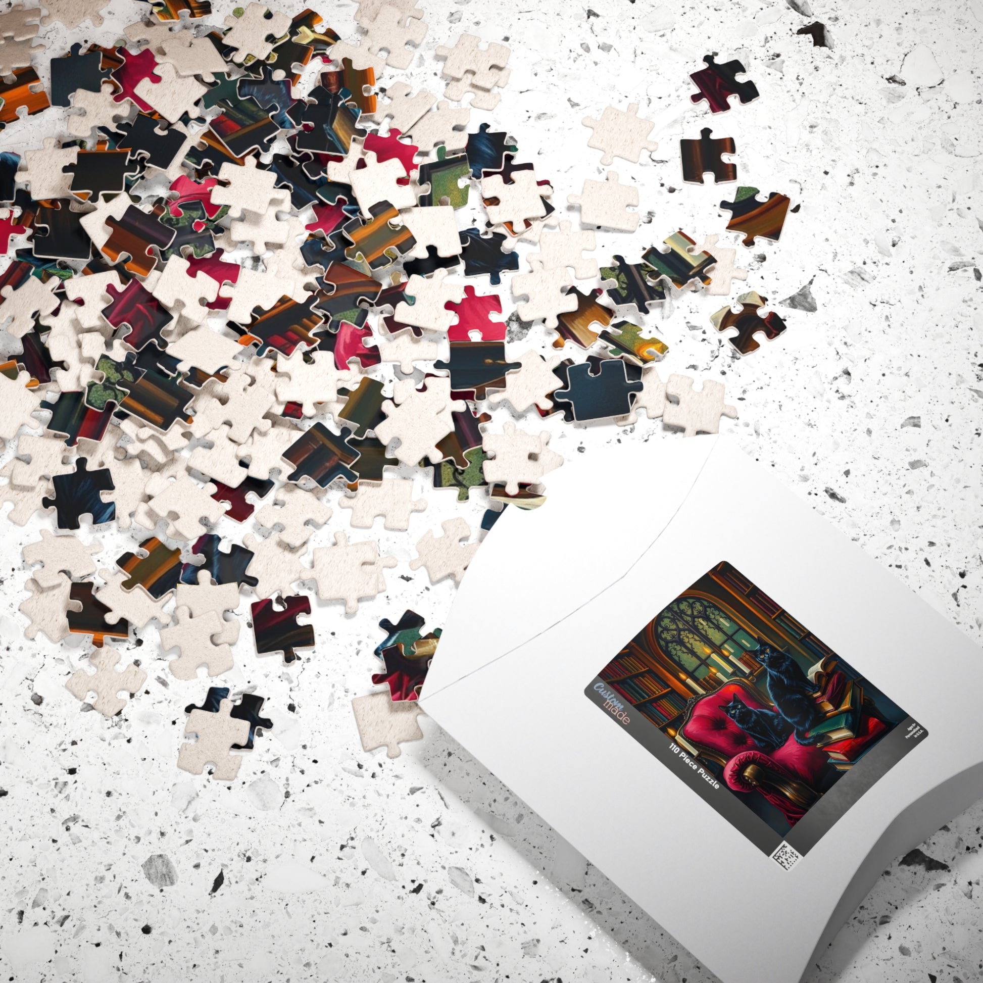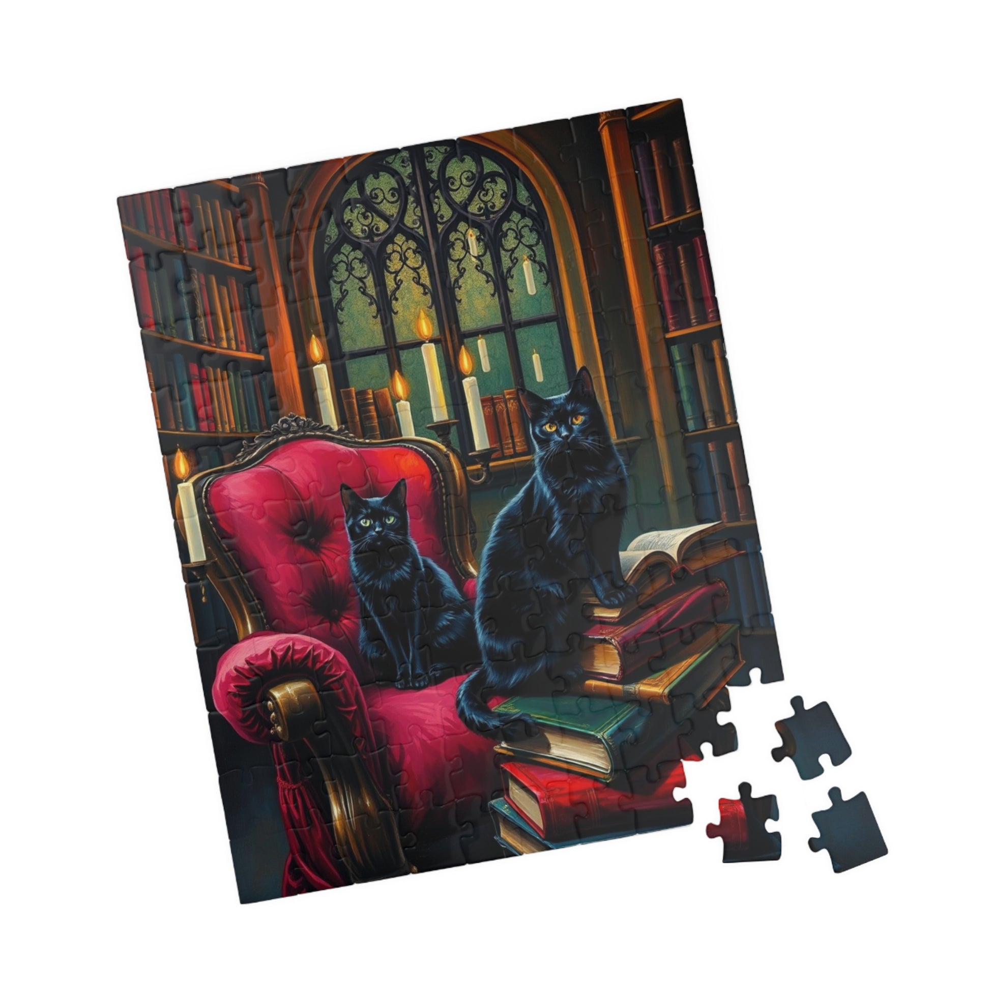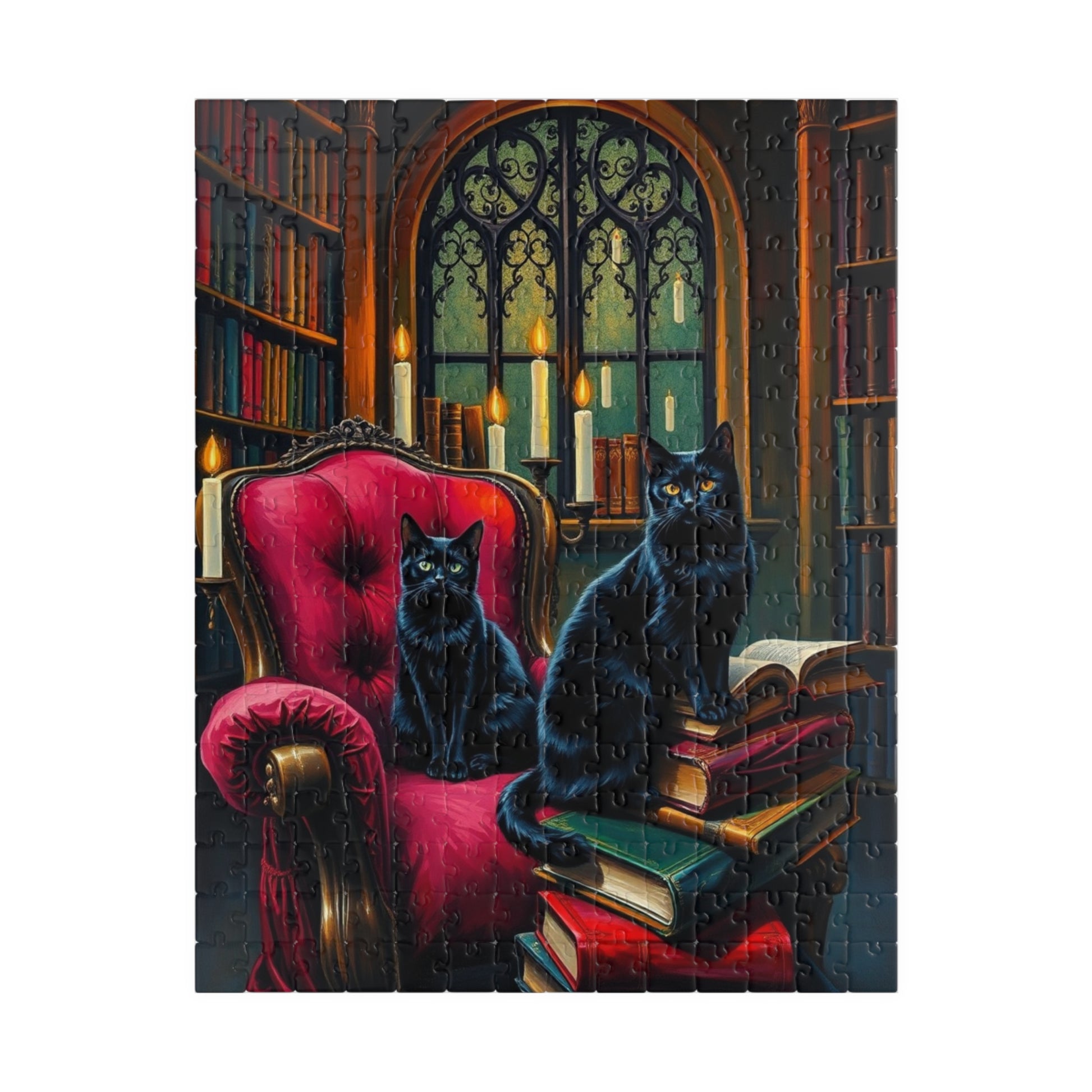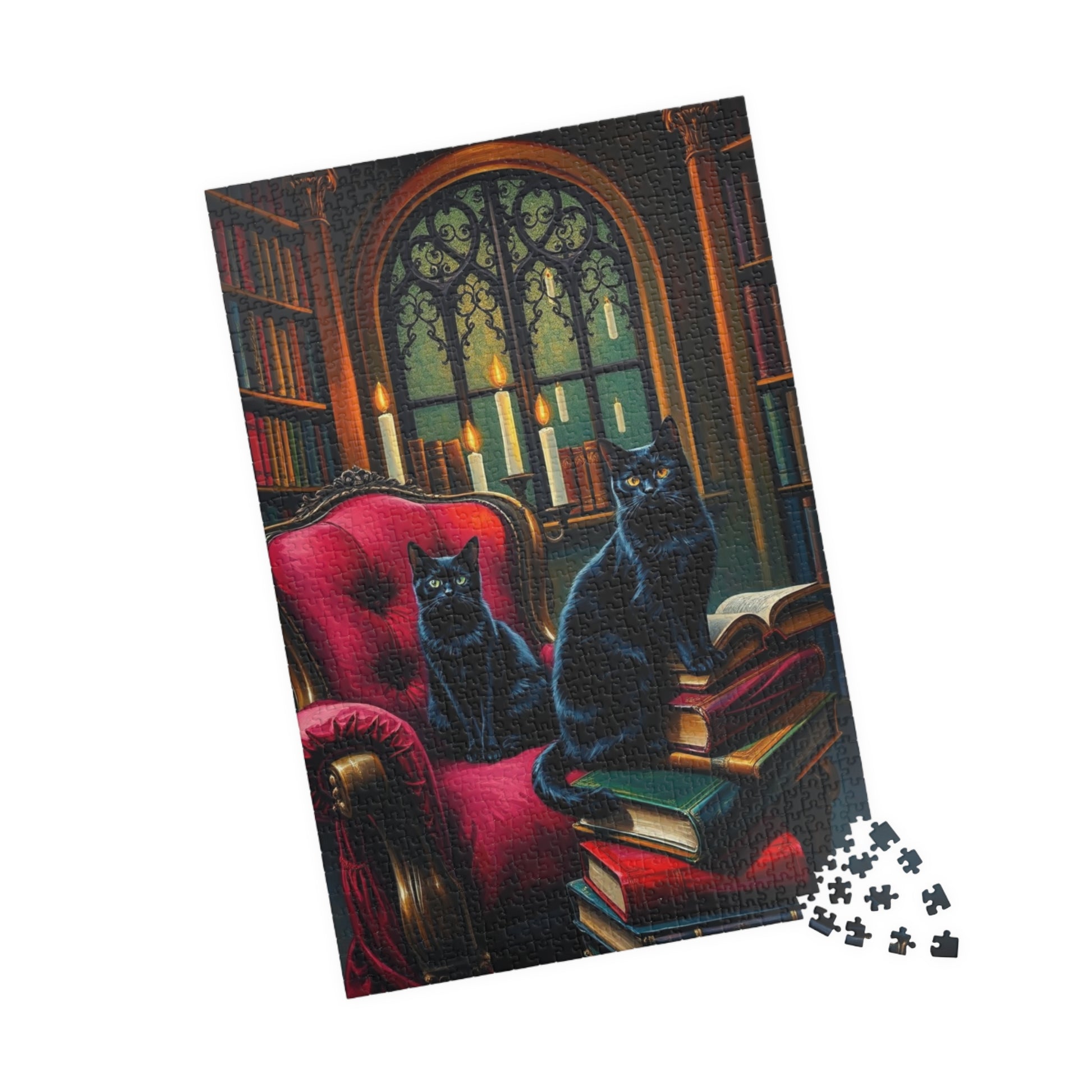 Black Cat Bookshelf Gothic Puzzle, Cozy Kittens in Library Study Room, Family Activity or Solo Fun, Pet Themed Puzzle, Animal Lover Gift