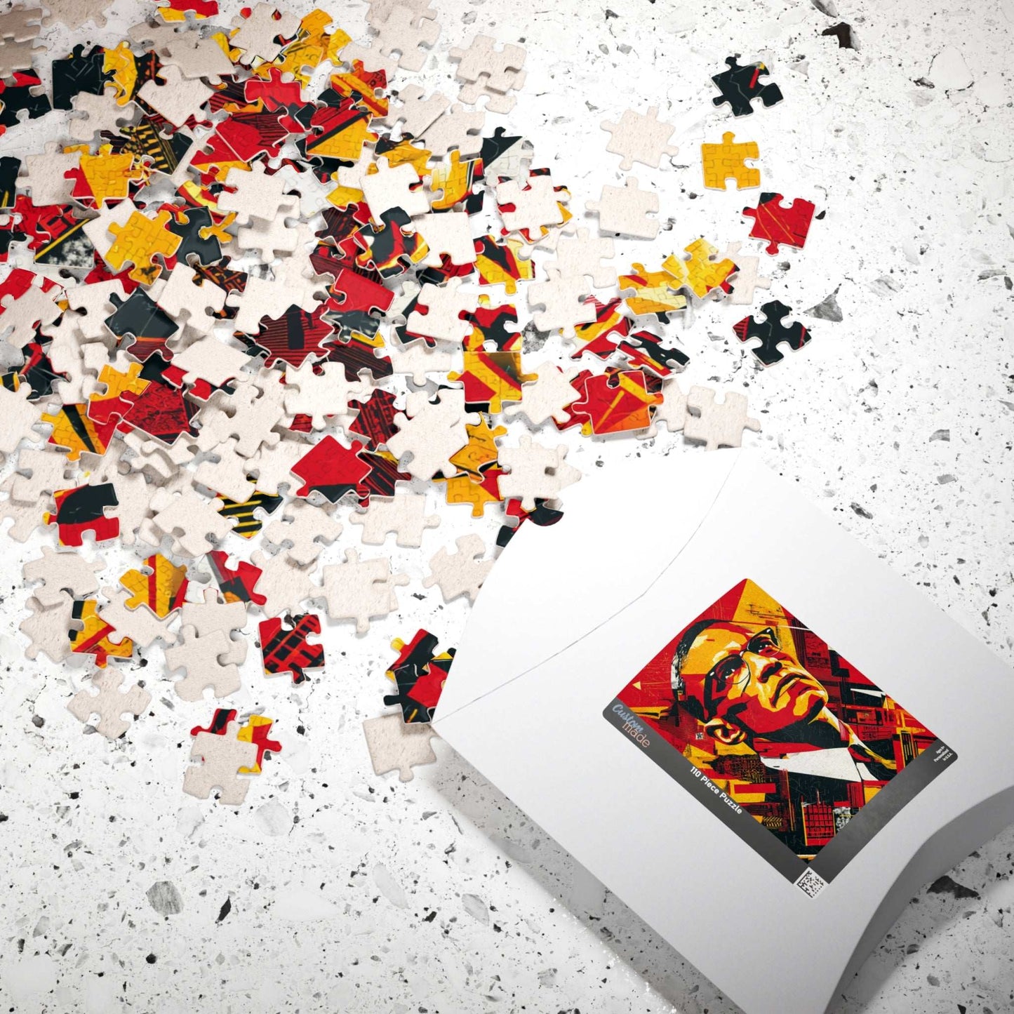 Black History Month Puzzle – Malcolm X Geometric Pop Art Jigsaw, Afrocentric Home Décor & Educational Gift for African American History Buff