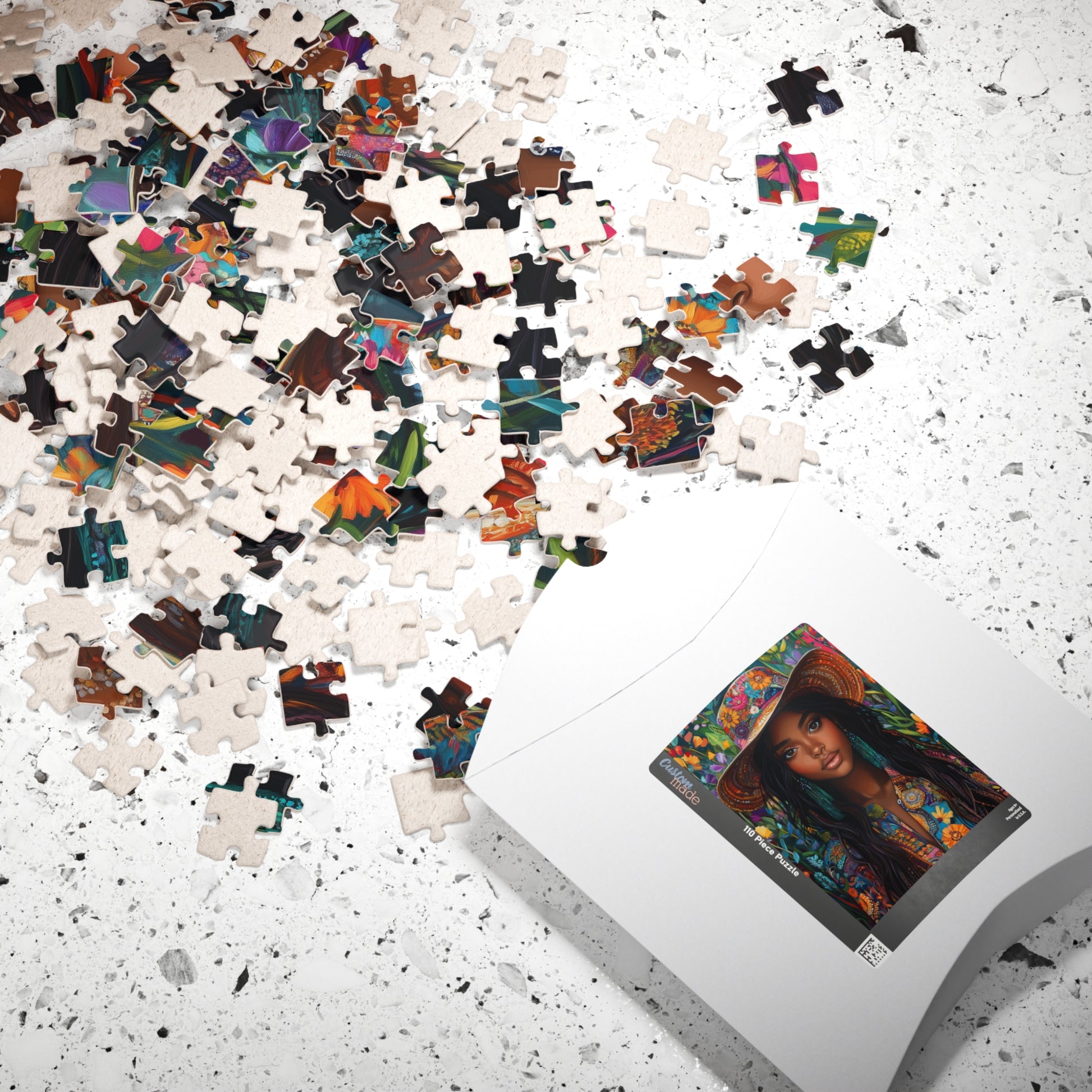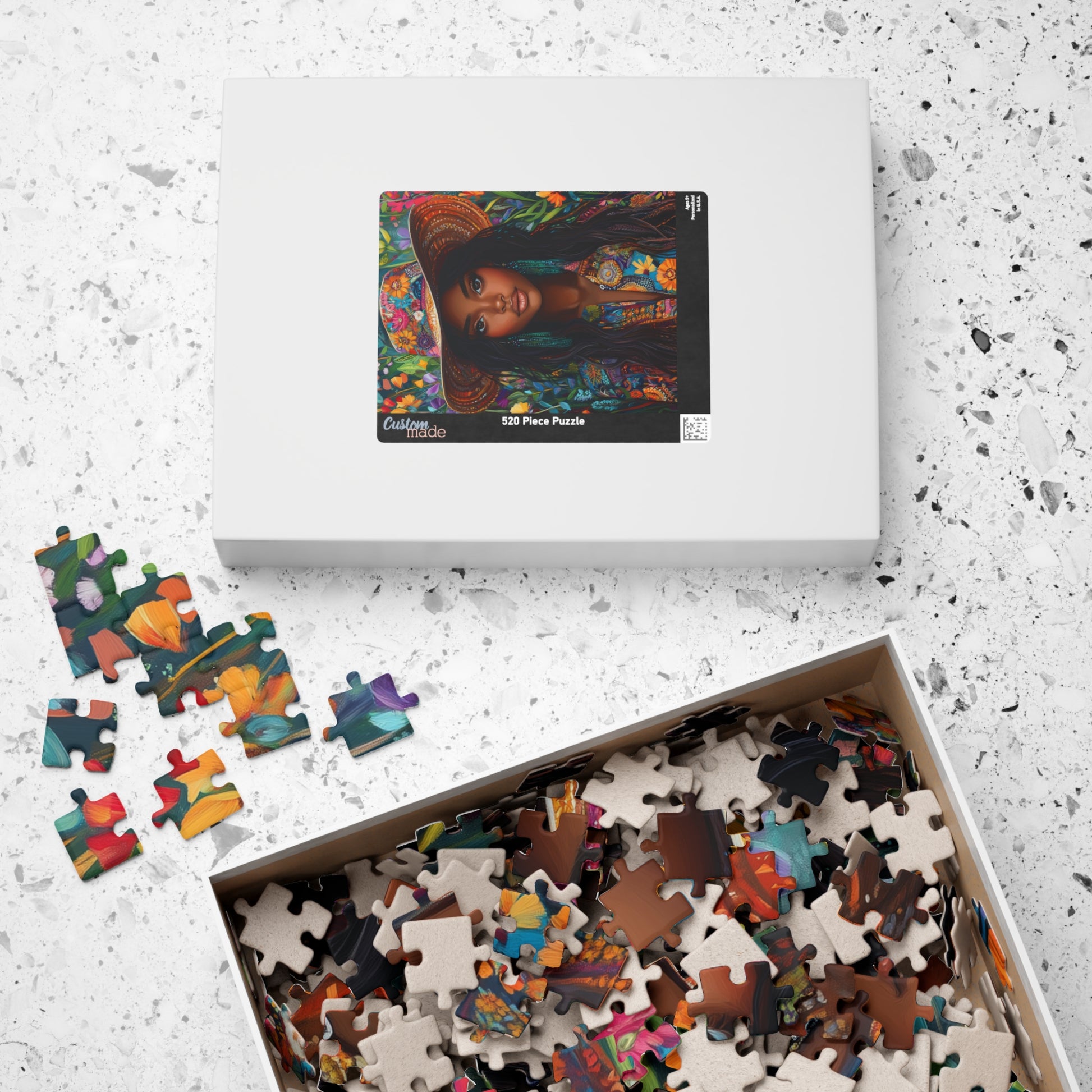 Boho Floral Portrait Puzzle 110-1014 Piece | African American Sunhat Woman Jigsaw