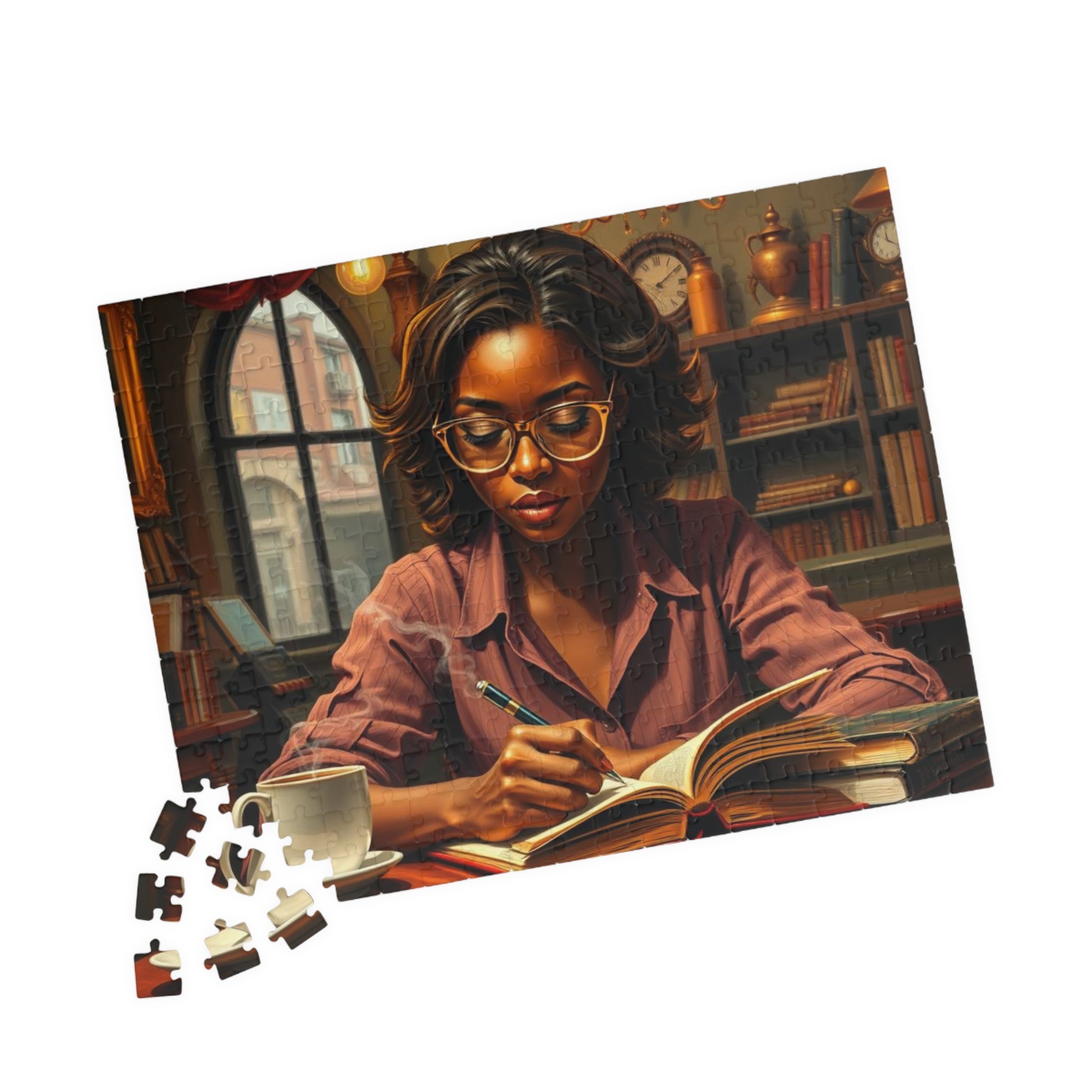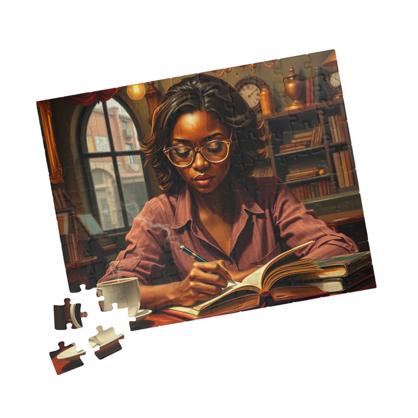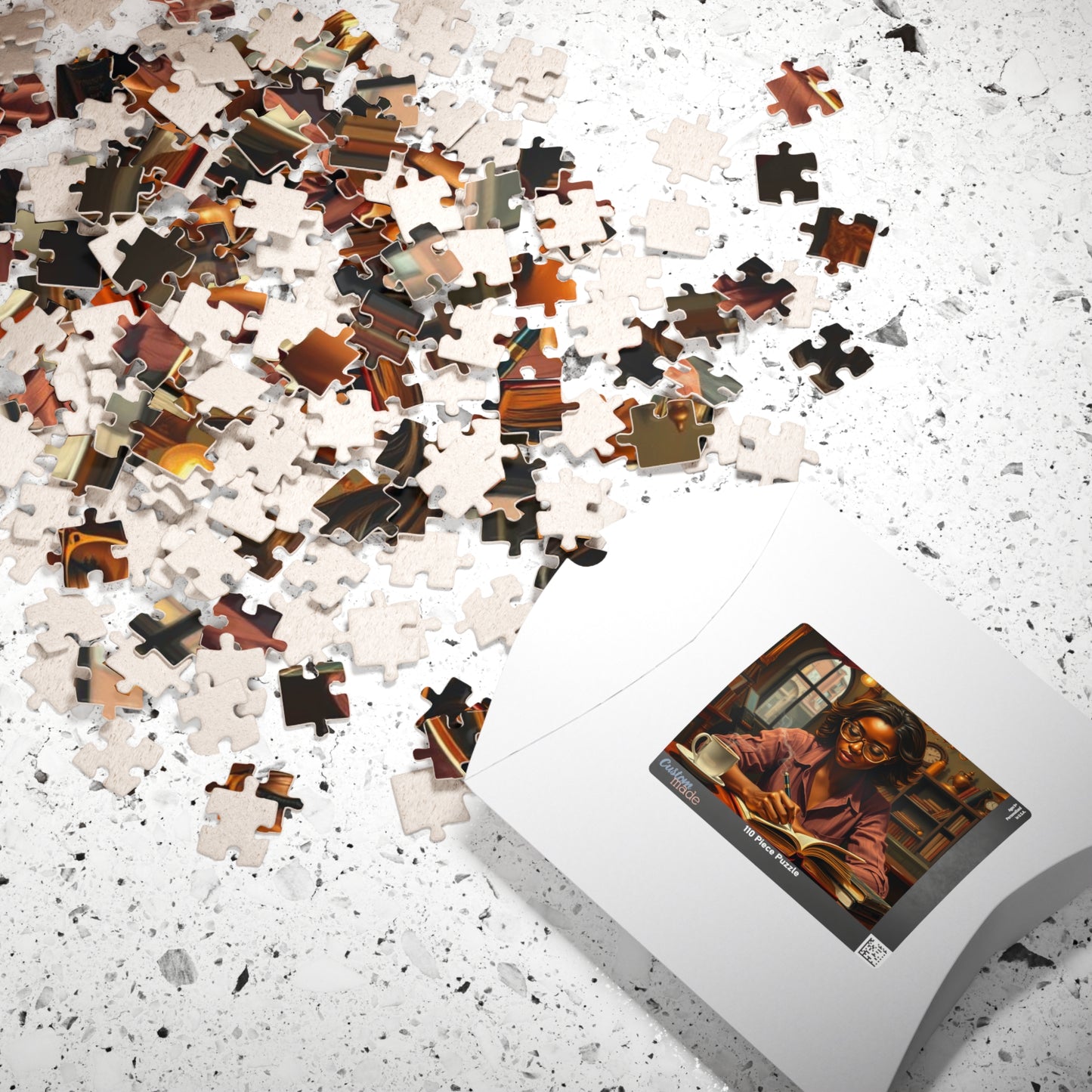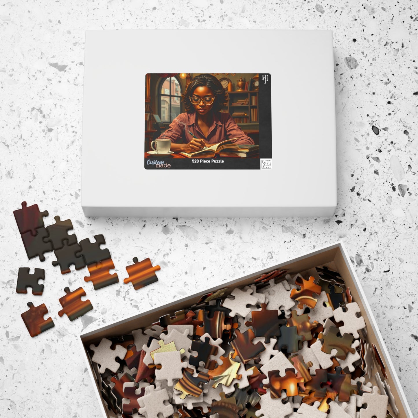 African American Woman Reading Jigsaw Puzzle, Black Art Afrocentric Puzzle Lover Gift for Bookworms, Friends, Family Fun, Mindful Home Entertainment