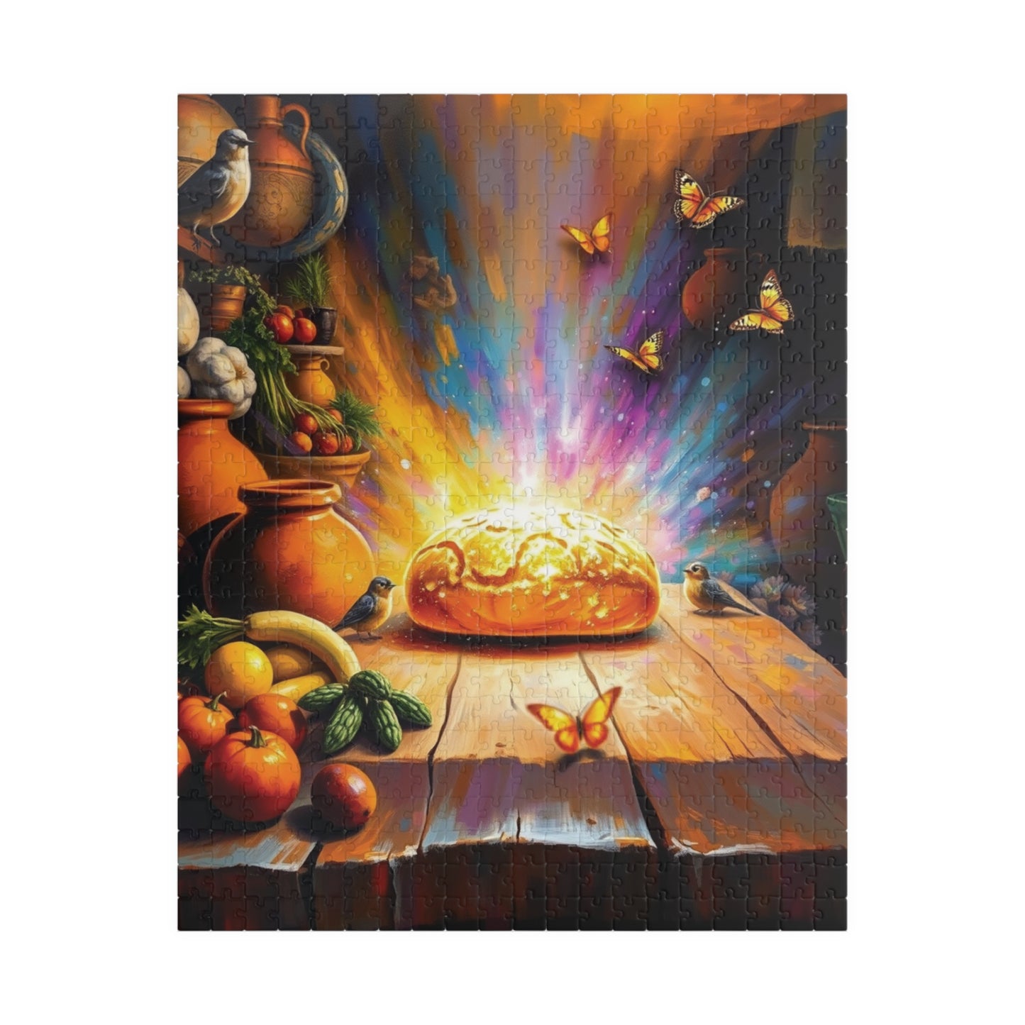 Bread of Life Jigsaw Puzzle, Glowing Bread with Birds Butterflies, Christian Symbolism Faith-Based Game, Gift for Religious Puzzle Lovers