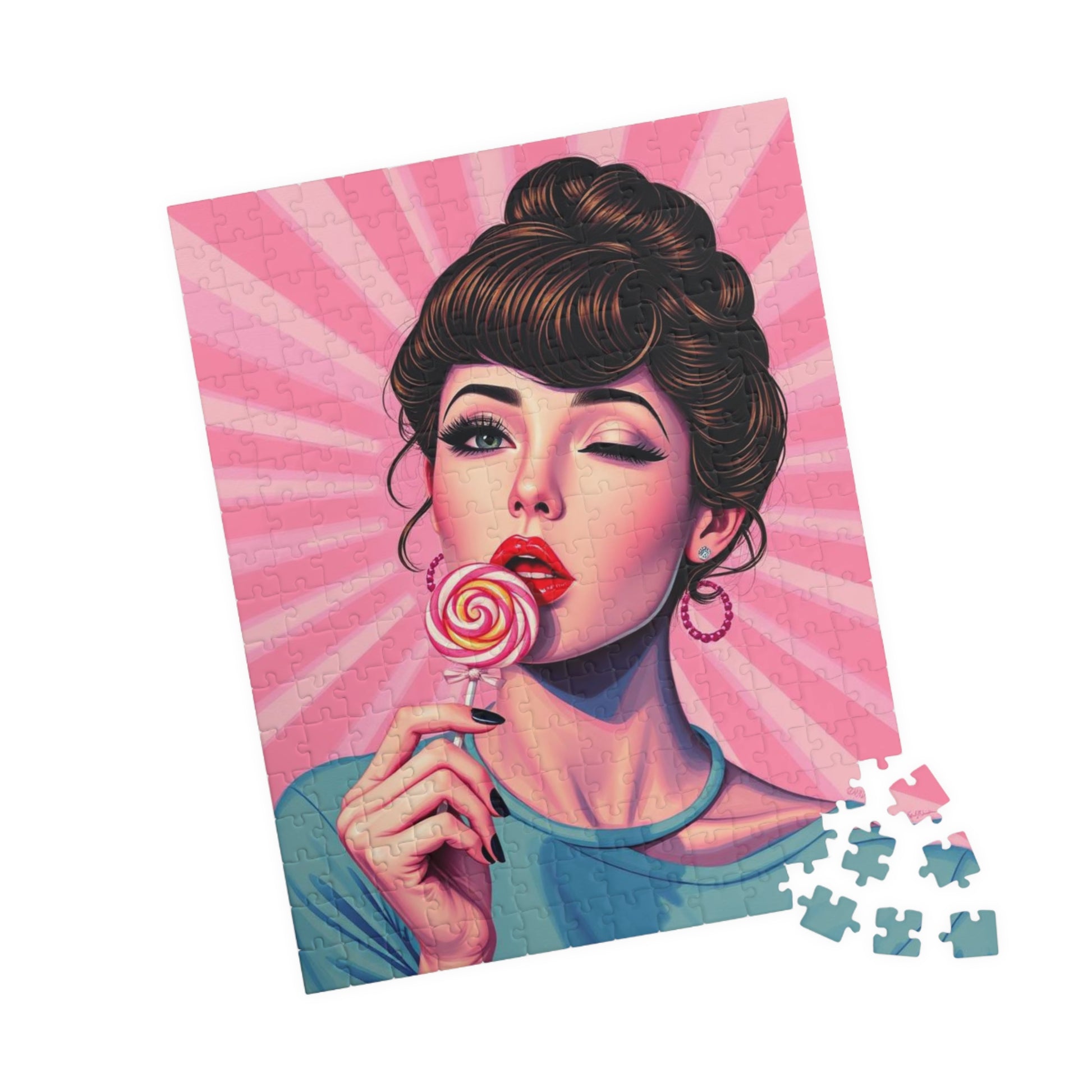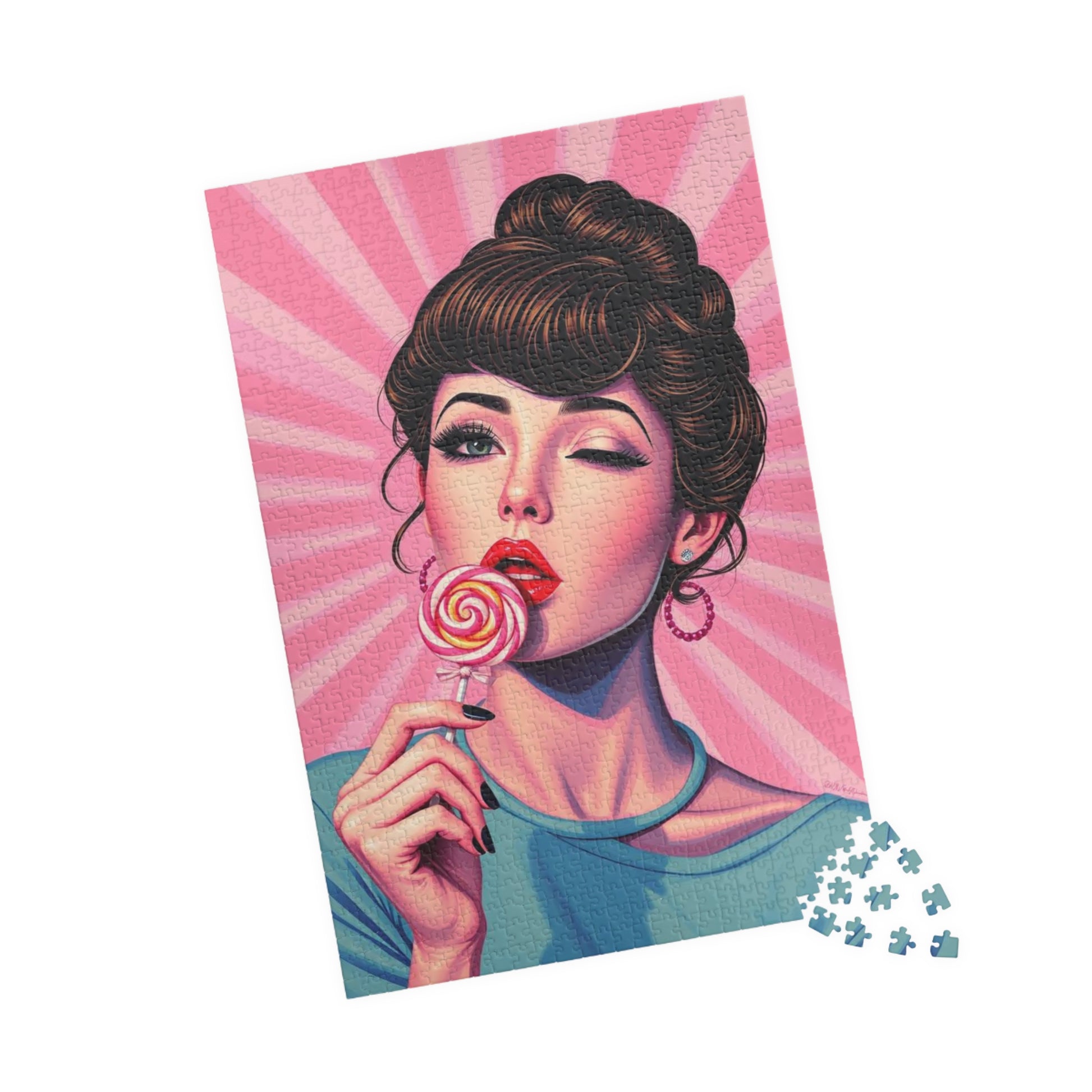 Candy Girl Pop Art Jigsaw Puzzle, Vintage Glamour Puzzle 110 - 1014-piece, Retro Gift for Puzzle Lovers, Home Activity, Fun Collectible