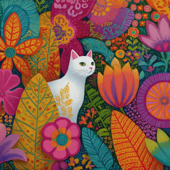 Cat Among the Flowers – Garden Cat Jigsaw Puzzle, Animal Theme Fauvist Flower Art Puzzle, Cartoonish