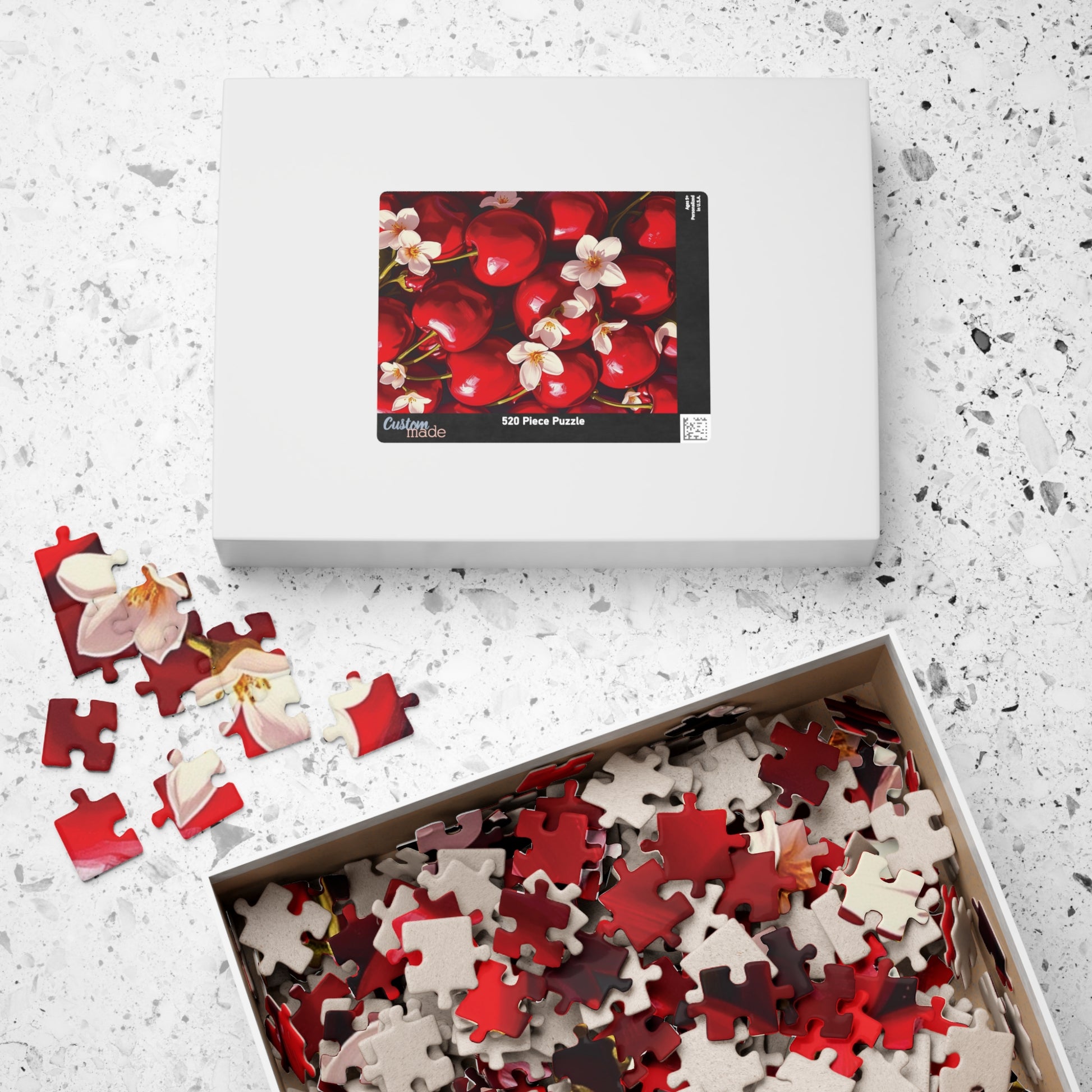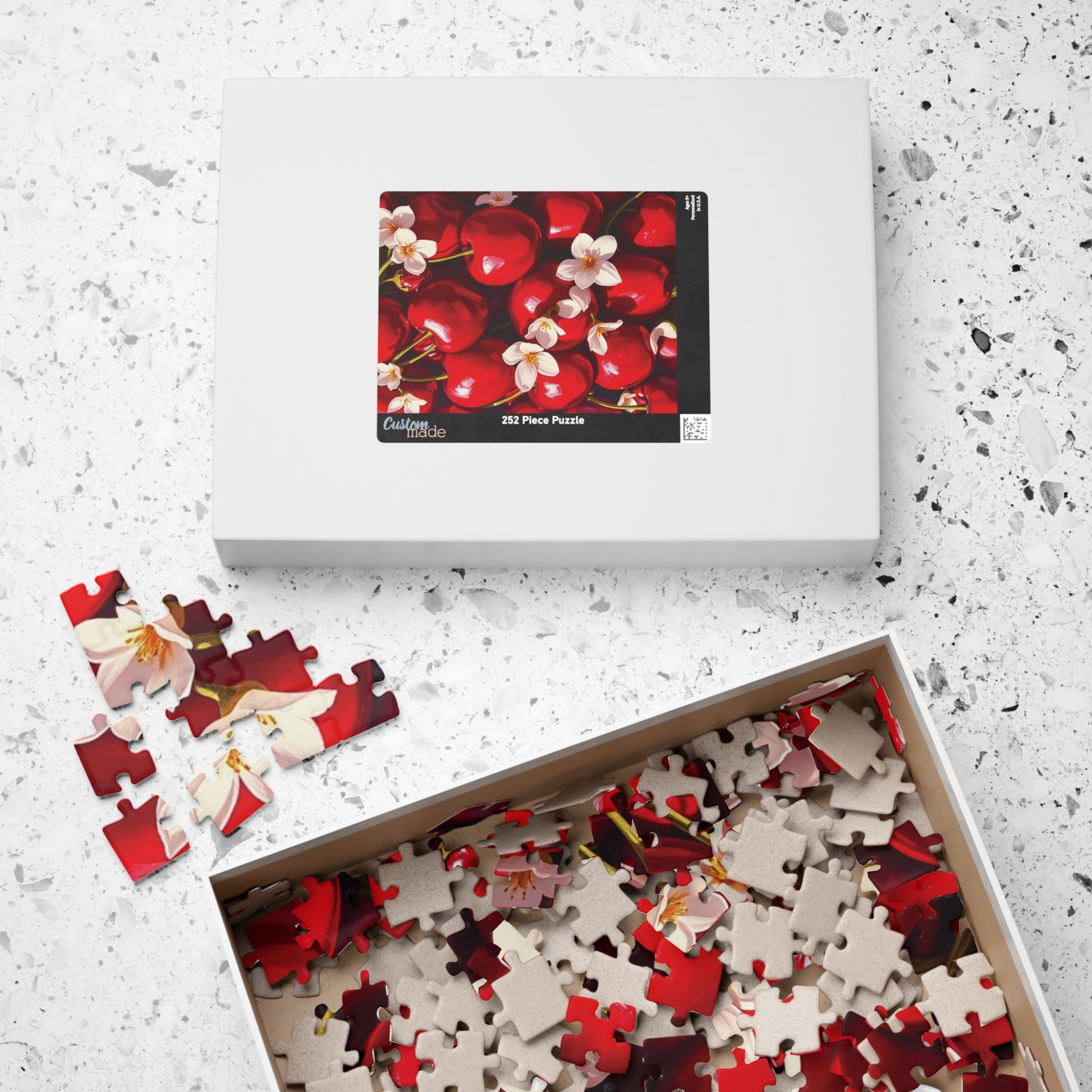 Immerse yourself in a vibrant and refreshing puzzle experience with this stunning collage of bright red cherries and delicate white floral accents. The rich, glossy cherries overlap in a dynamic arrangement, their deep crimson hues popping against the soft elegance of intricate blossoms. Each piece fits seamlessly into a lively composition that evokes the essence of summer orchards and timeless botanical beauty. Whether you’re a fruit lover, a puzzle enthusiast, or simply looking for a visually striking challenge, this puzzle is the perfect blend of bold color and natural charm, making it a delightful addition to any collection.