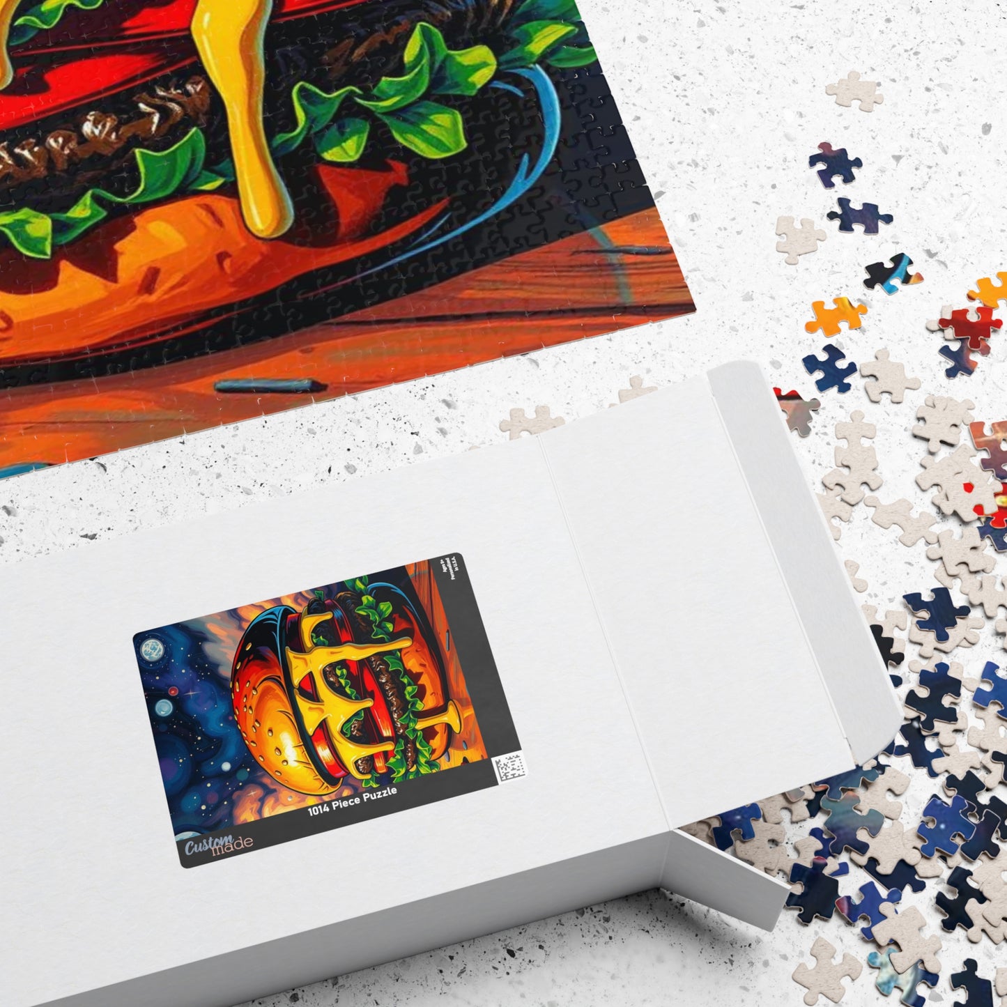 Cheesy Burger Puzzle, Pop Art Jigsaw Game for Adults, Fun Food Art Jigsaw, 110-1014 Piece Puzzles, Gift for Food Lovers, Game Night Activity