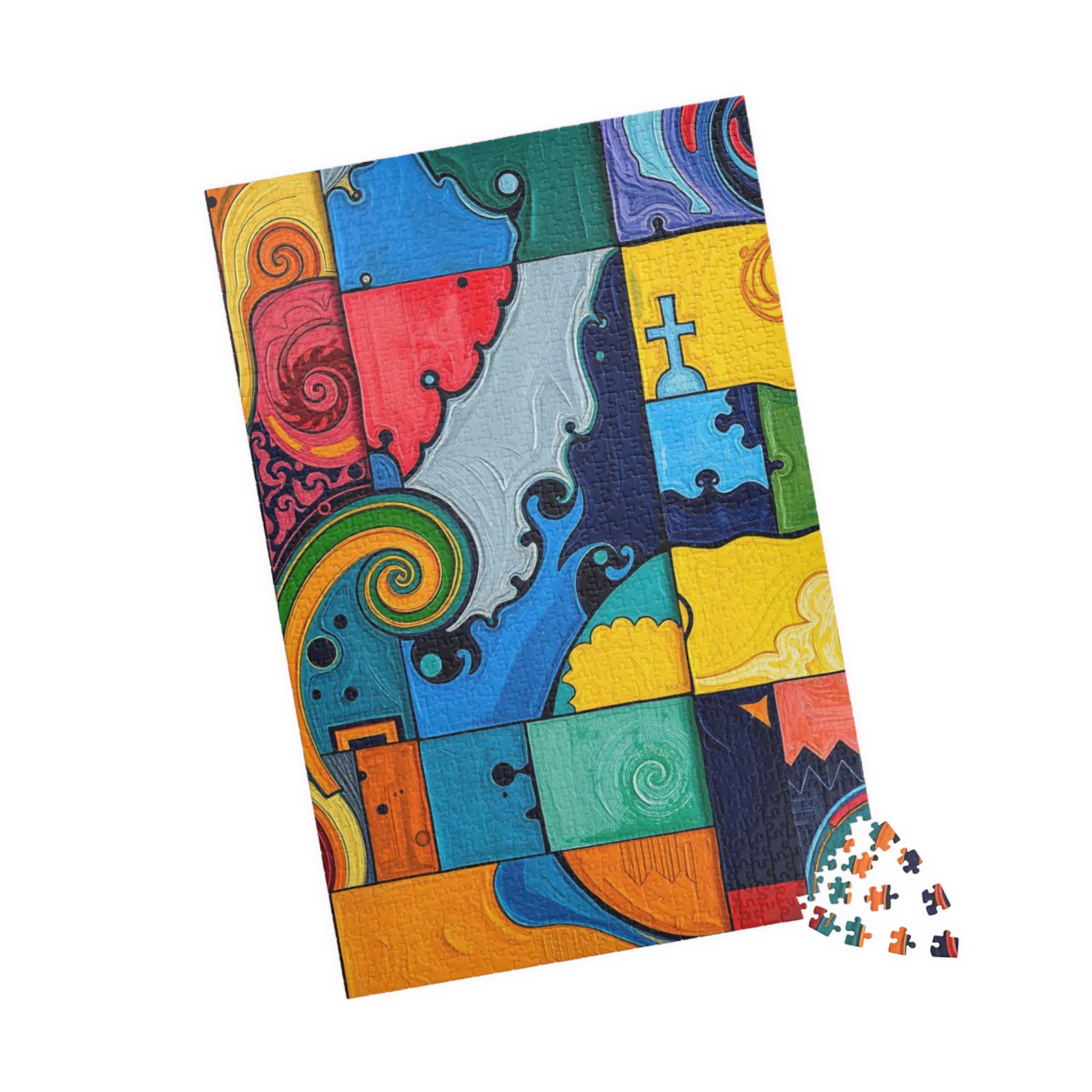 Colorful Abstract Puzzle for Family Fun - Modern Art Geometric Shapes