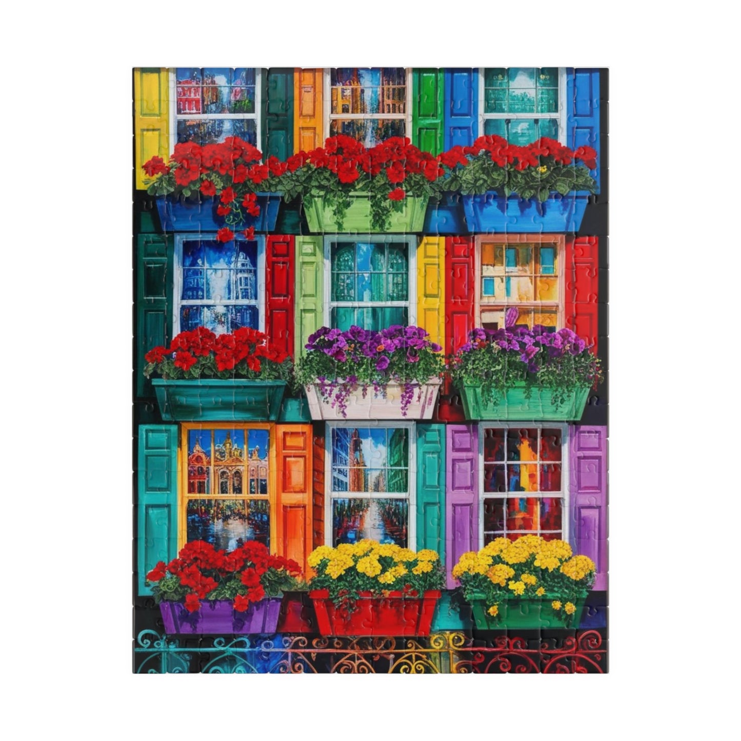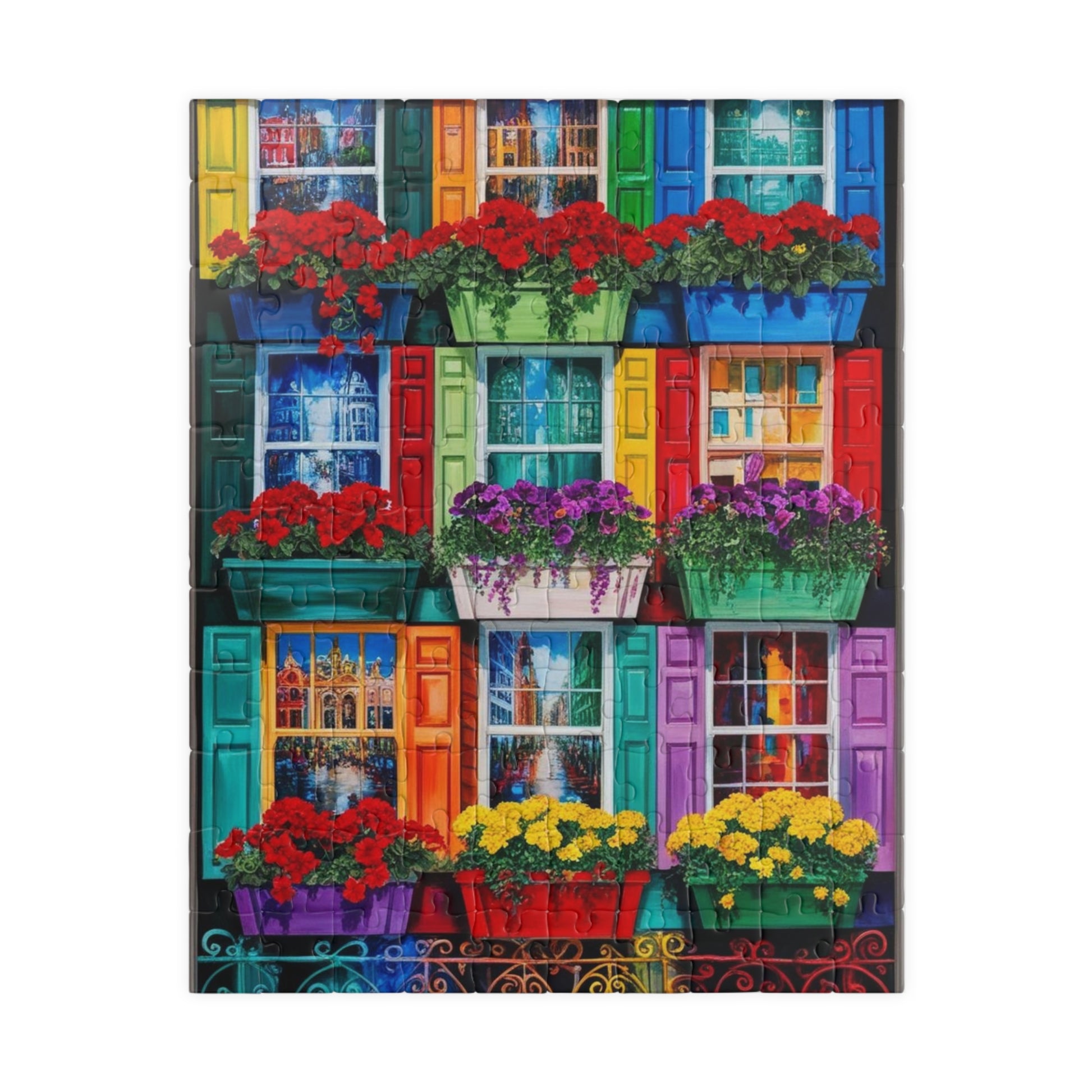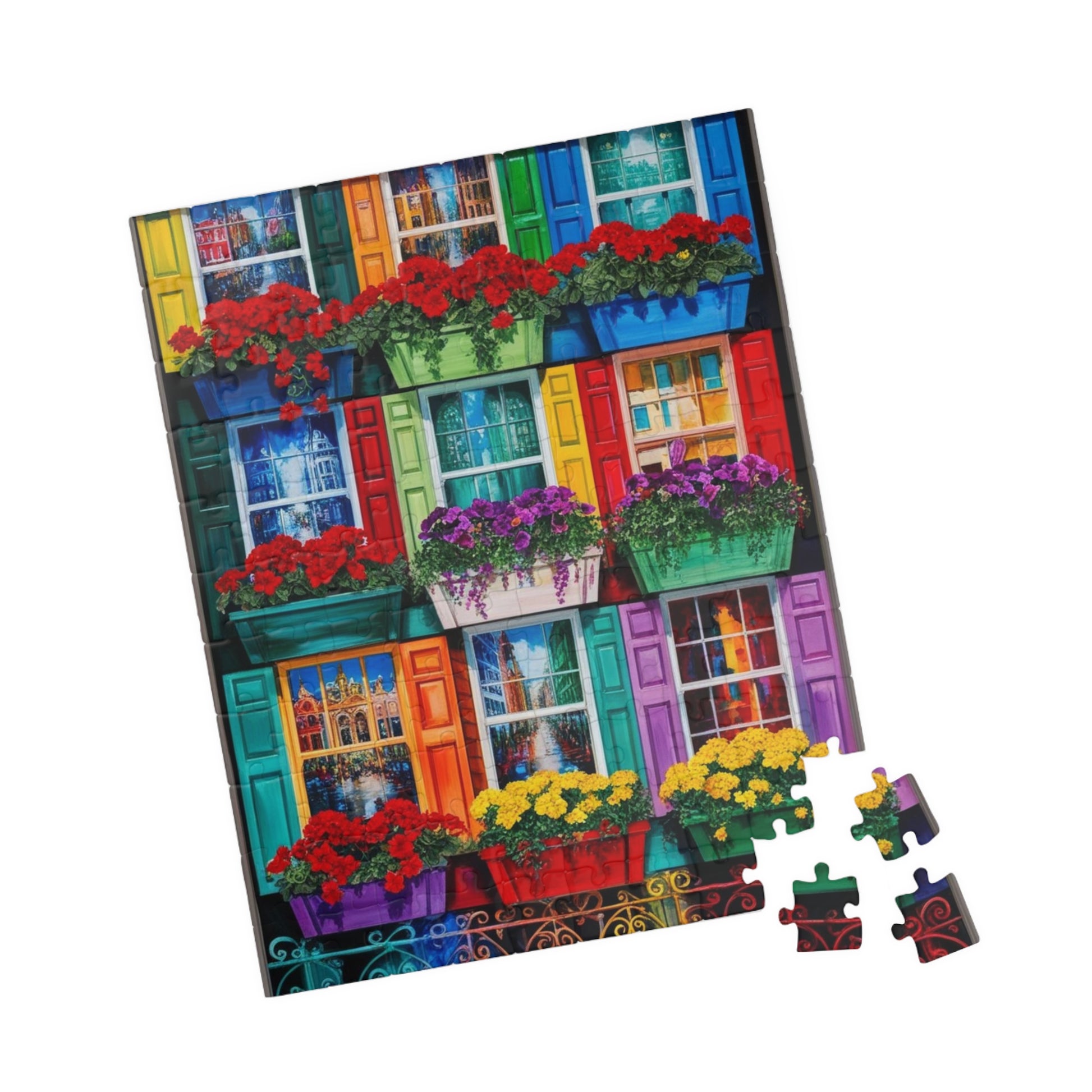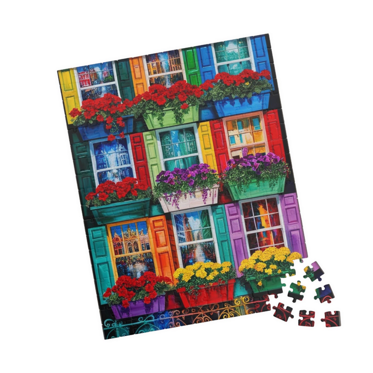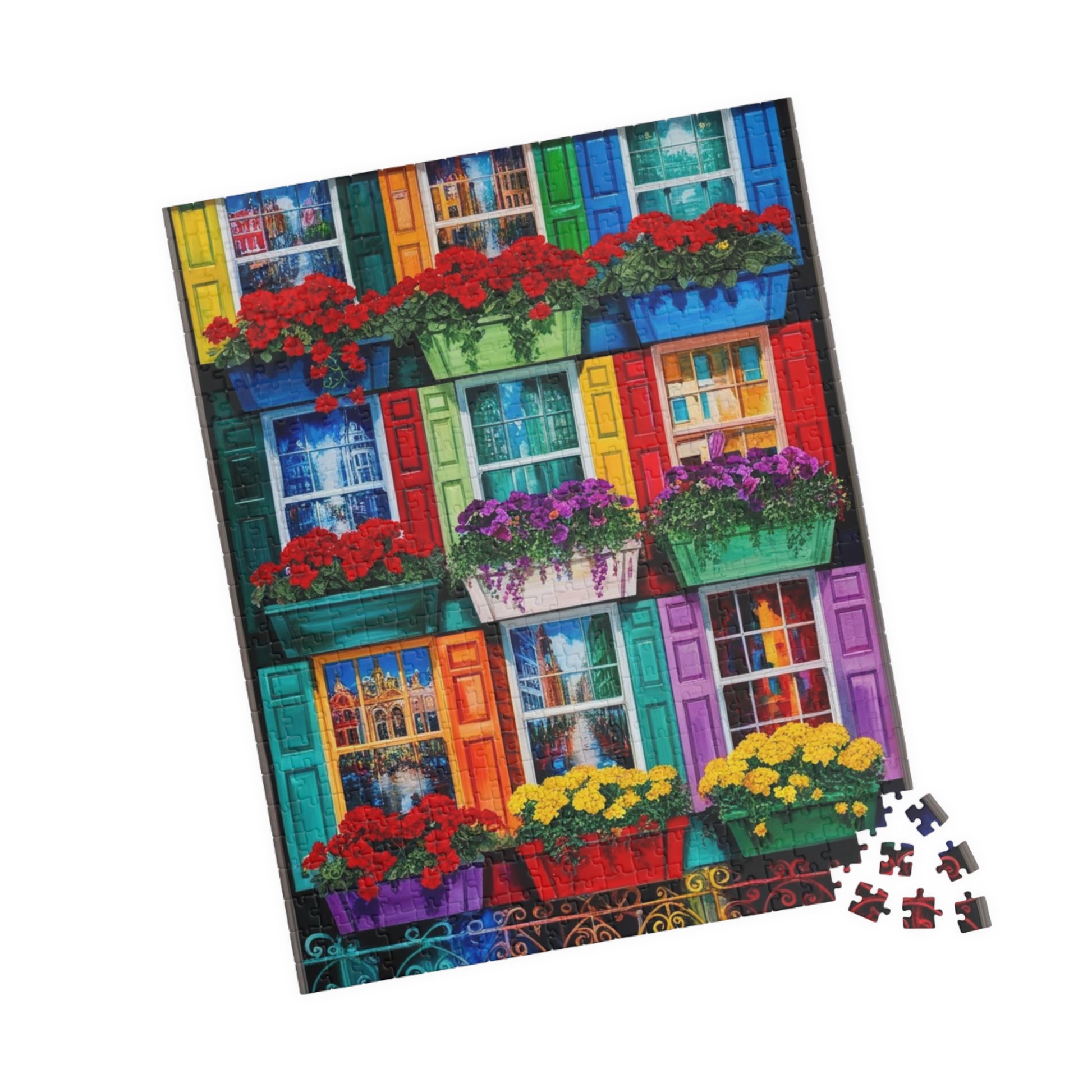 Colorful Flower Window Puzzle, 110/252/520/1014-piece Puzzle, Flower Lover Gift for Friends, Family Game Night, Fun Activity