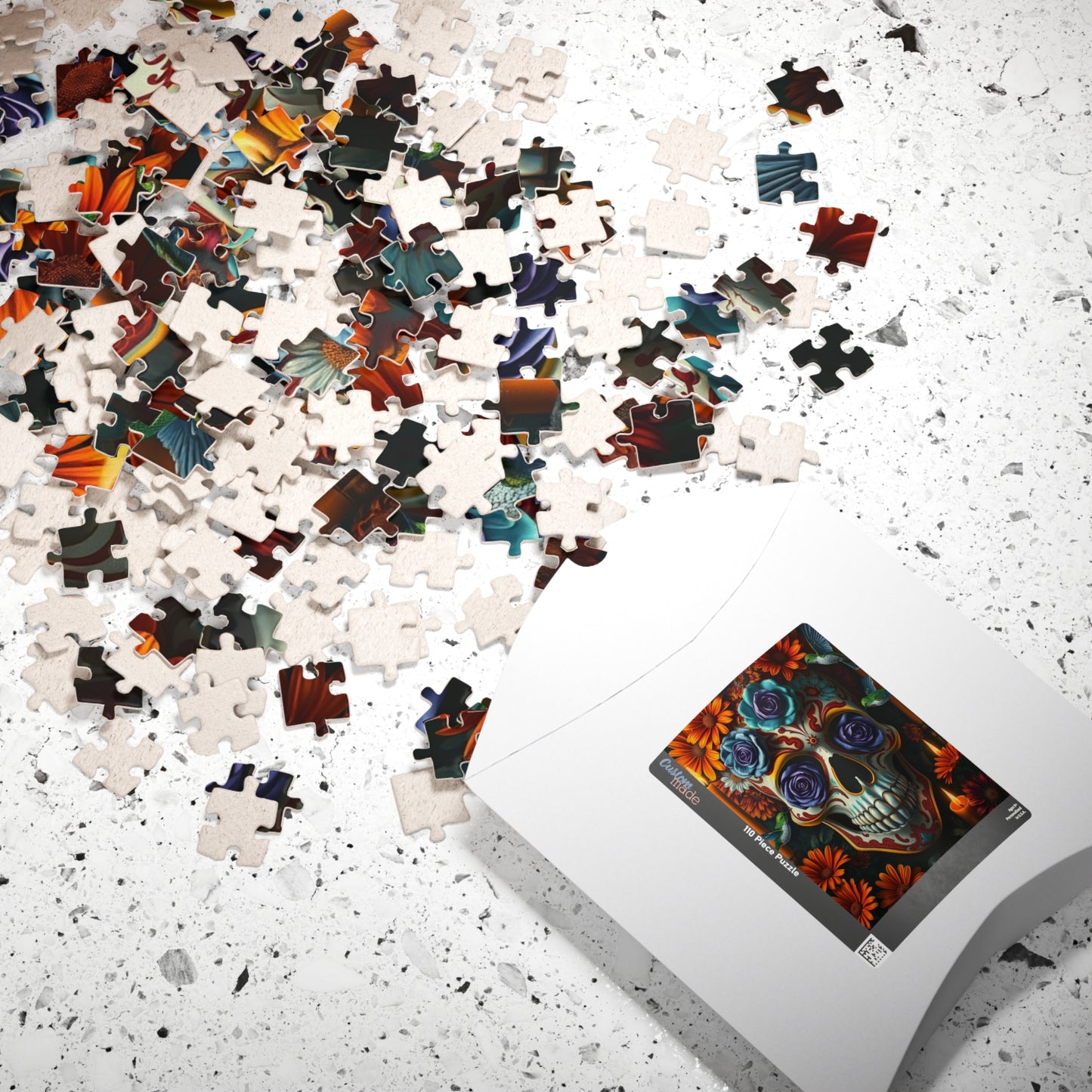 Colorful Skull Puzzle | Day of the Dead Jigsaw Game for Adults, Gift for Puzzle and Gothic Art Lovers, Mental Exercise, Fun Solo Activity