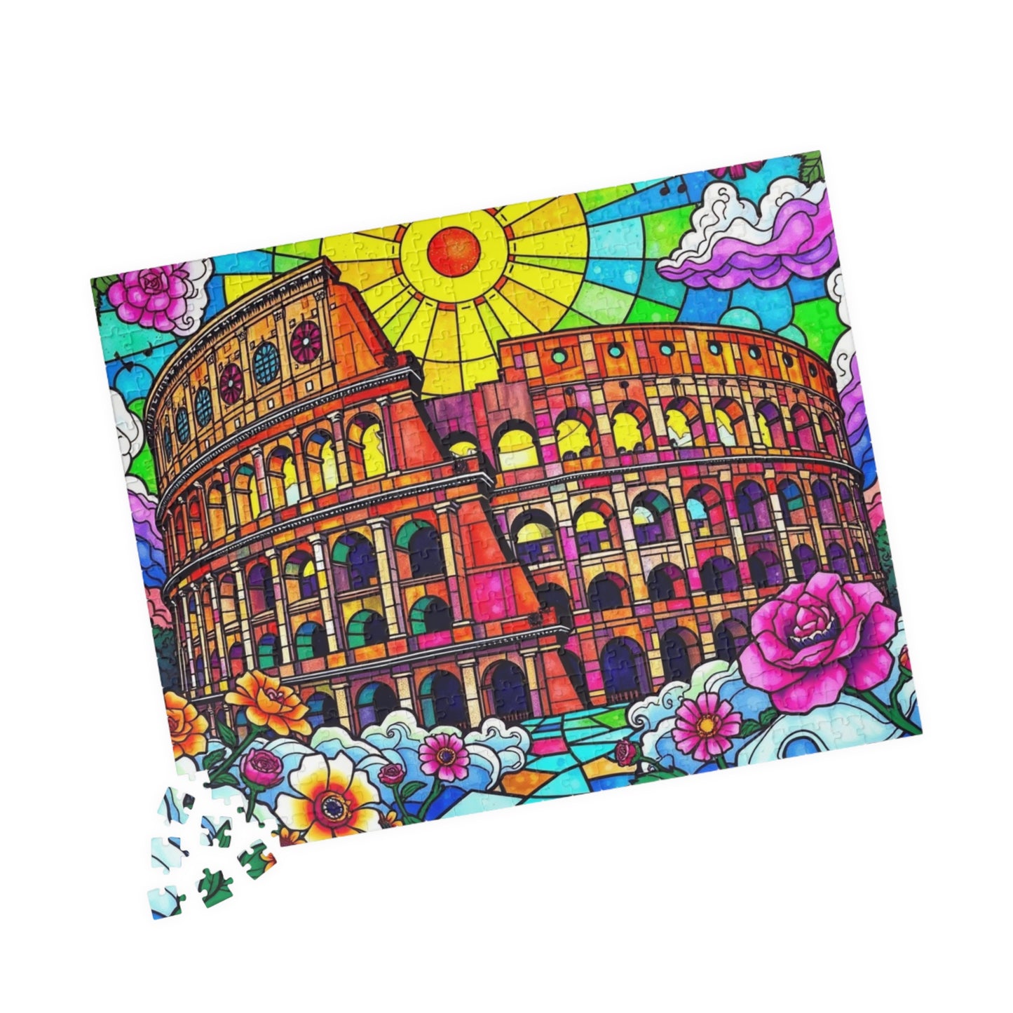 Colosseum Landmark Jigsaw Puzzle, Stained Glass Style, Ancient Rome Italy, Creative Activity Fun Family Game, Gift for Traveler Lover