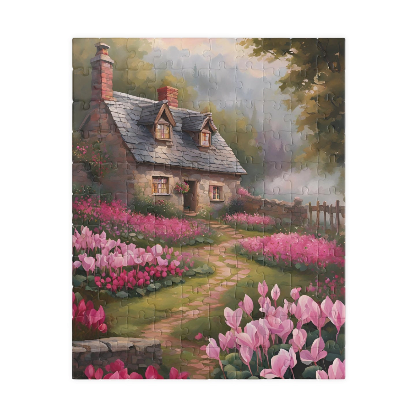 Escape to a peaceful countryside retreat with this beautifully crafted puzzle depicting a charming cottage tucked away in a vibrant field of cyclamen flowers. The soft hues of pink and purple from the cyclamen petals surround the cozy stone cottage, with its inviting windows and thatched roof. A gentle breeze seems to rustle the delicate blooms as the warmth of the cottage beckons from within. The serene setting, bathed in golden sunlight, creates an atmosphere of tranquility and natural beauty, making this puzzle the perfect way to unwind and immerse yourself in nature's charm. With each piece, you’ll bring this idyllic scene to life, allowing you to experience the calming essence of a rural getaway. Whether you're a nature lover, a gardening enthusiast, or simply someone who enjoys peaceful landscapes, this puzzle offers a delightful escape into a world of flowers and cozy comfort.