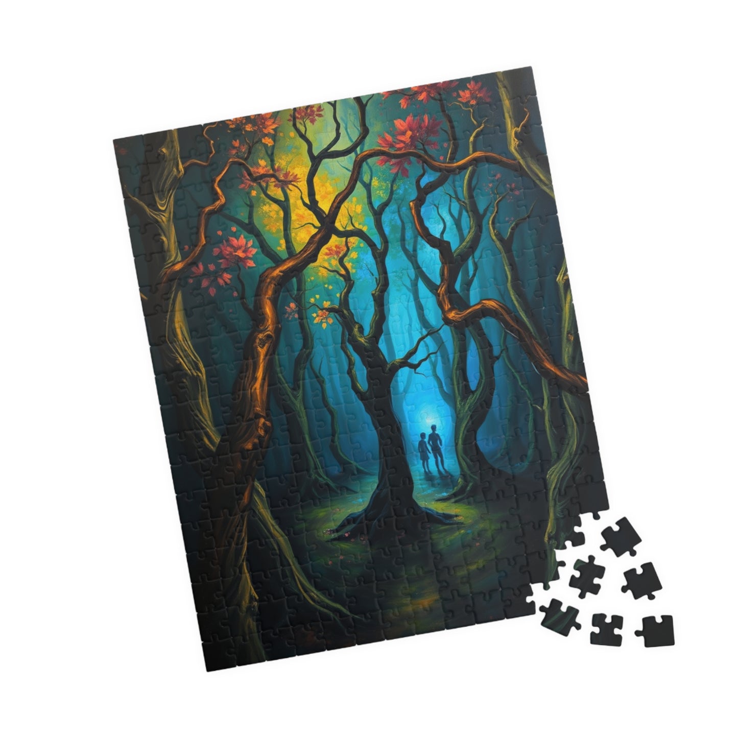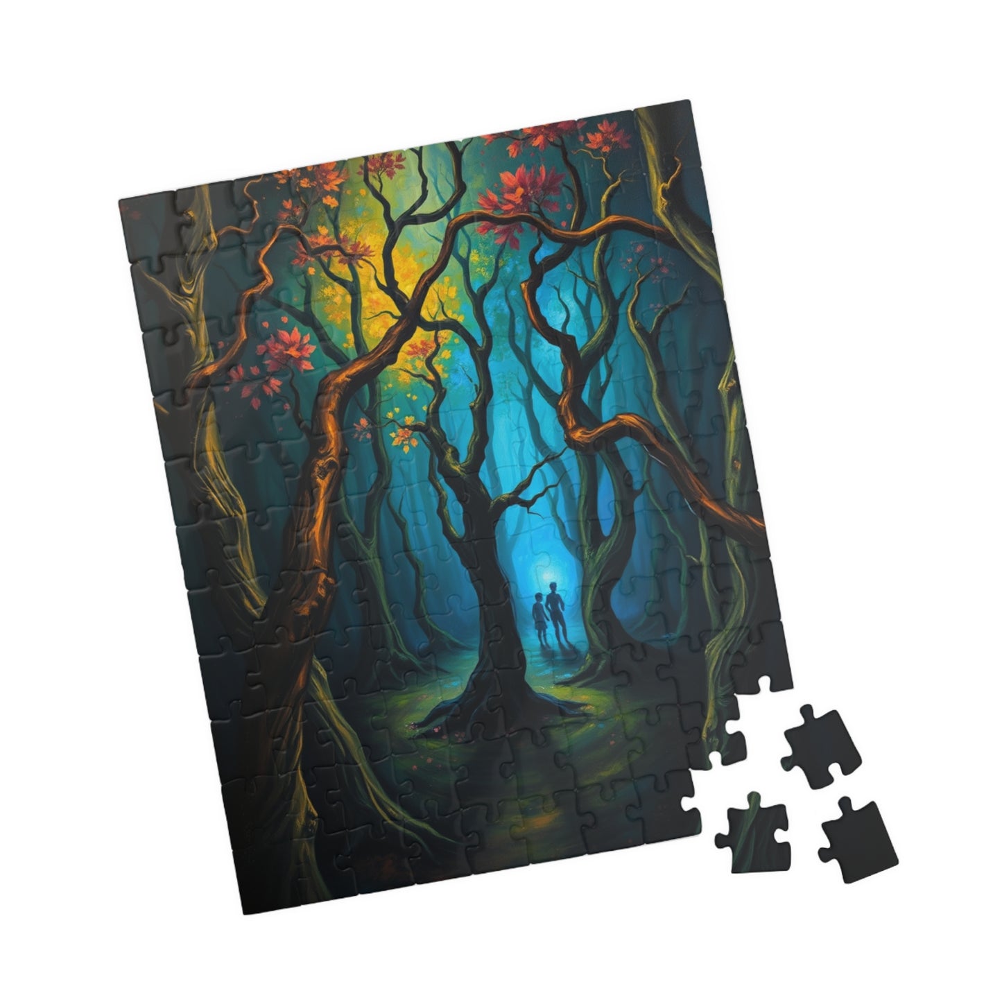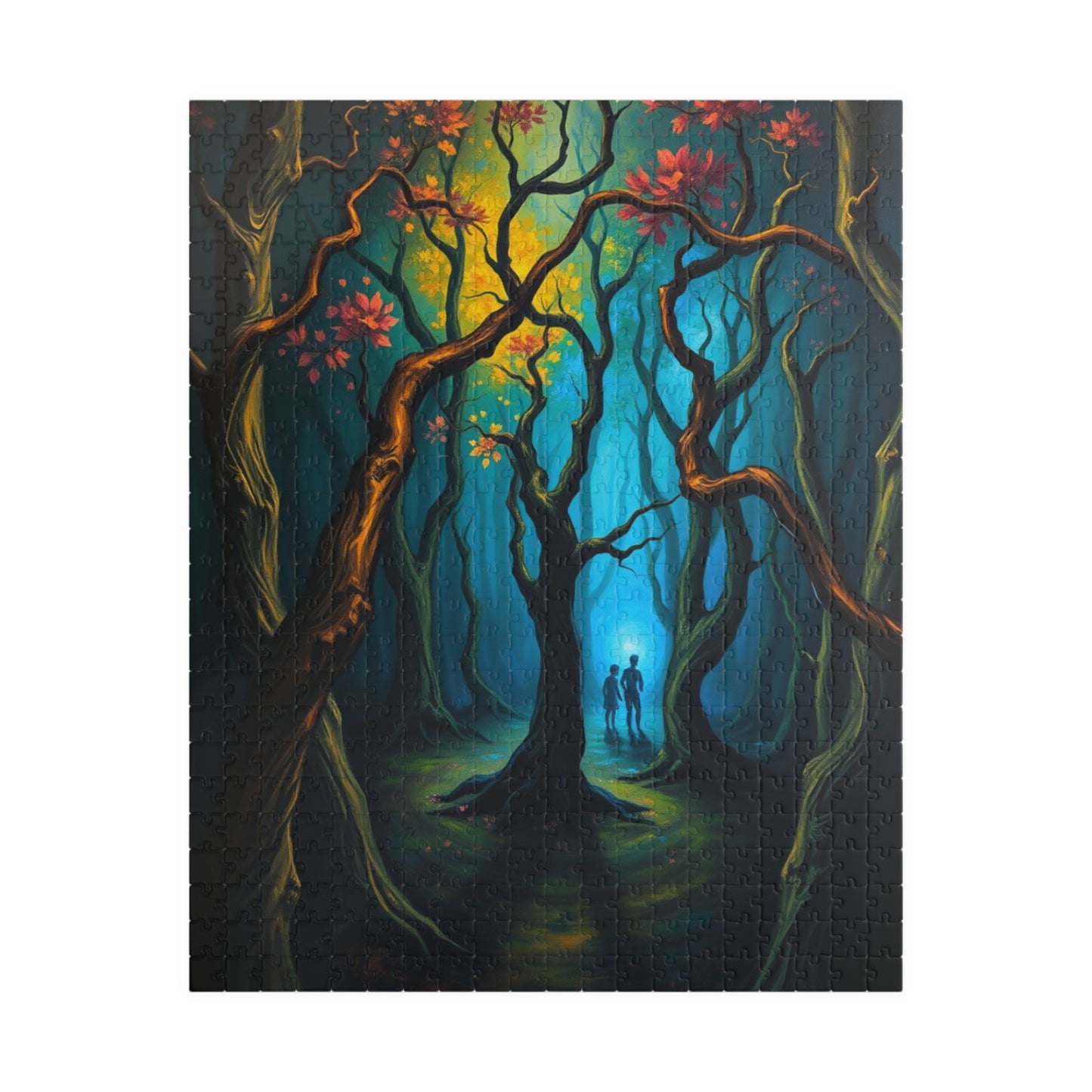Enchanting Forest Puzzle - Ghostly Figures and Blue Mist Gothic Jigsaw Game, Perfect Gift for Nature Lovers, Family Game Night, Relaxation
