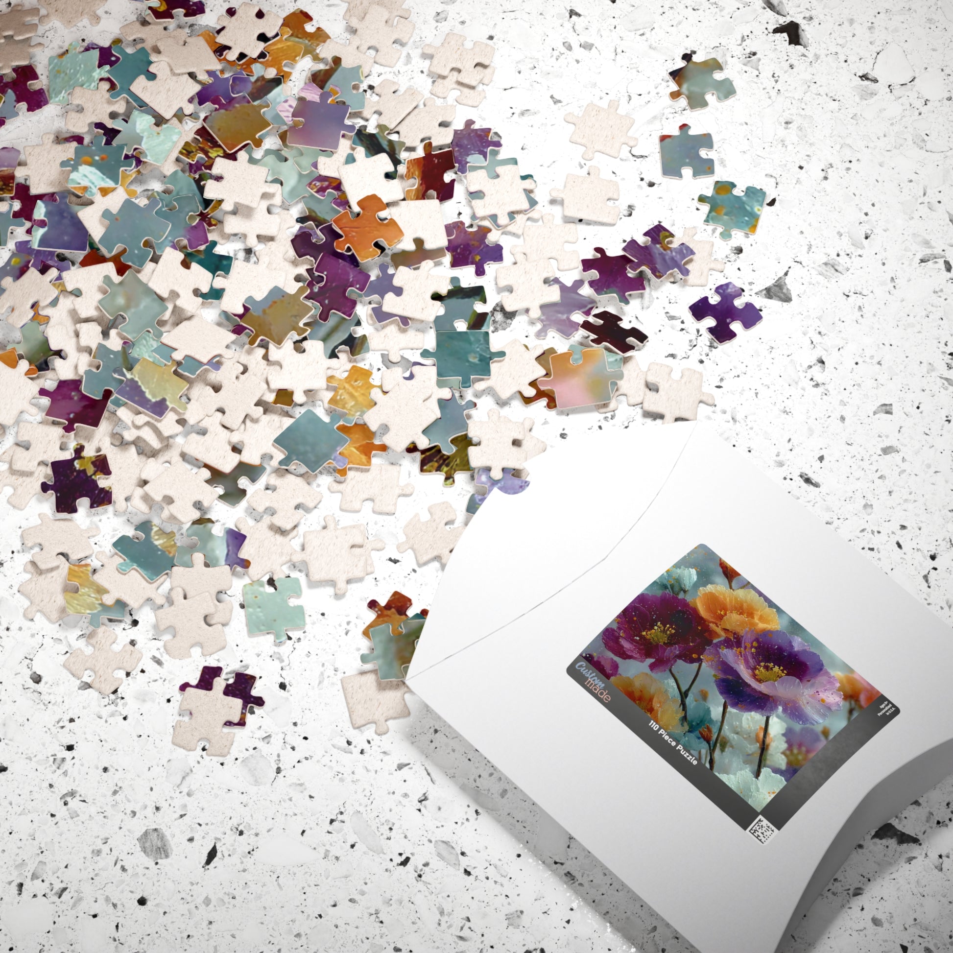Ethereal Petals Jigsaw Puzzle - Vibrant Wildflowers in a Dreamlike Landscape
