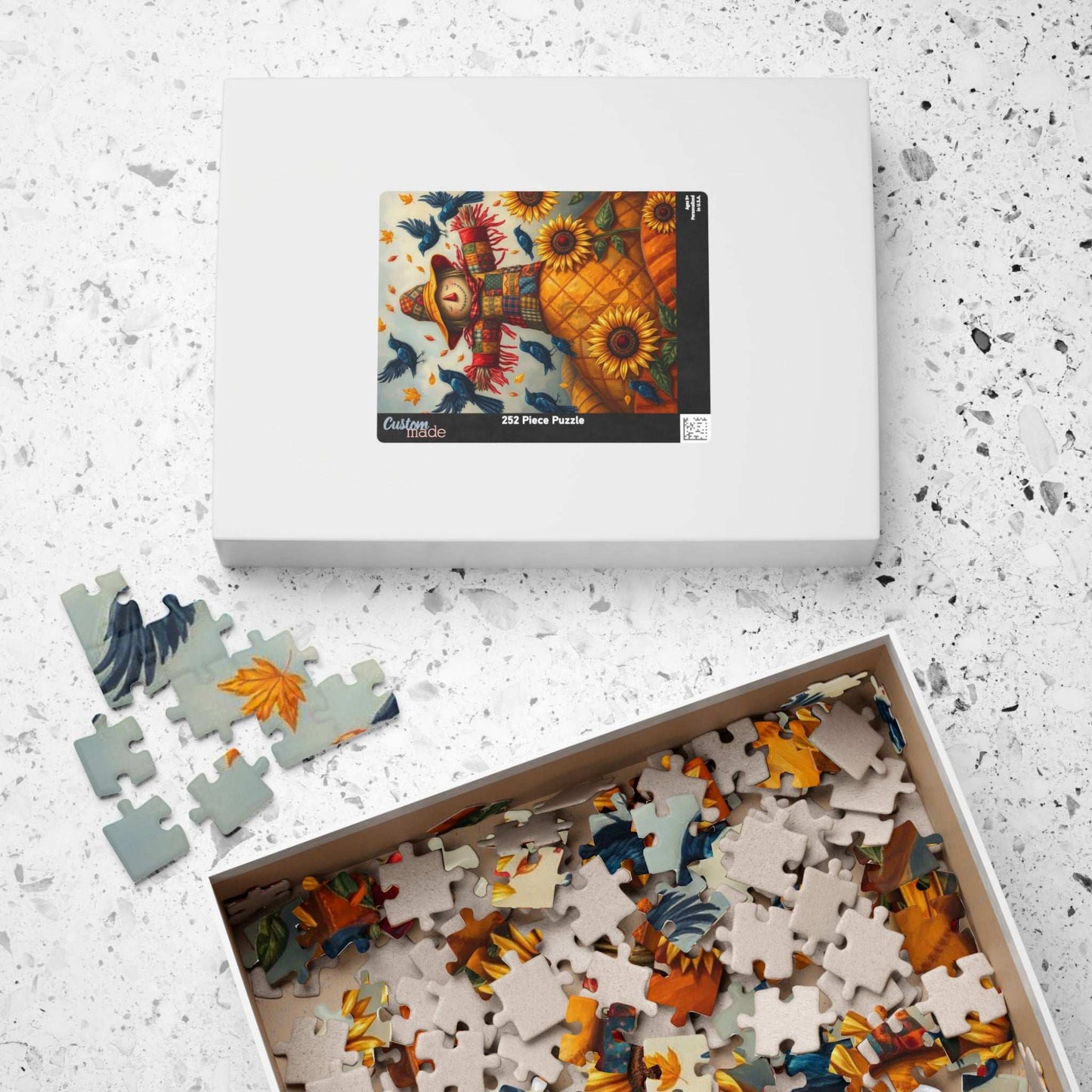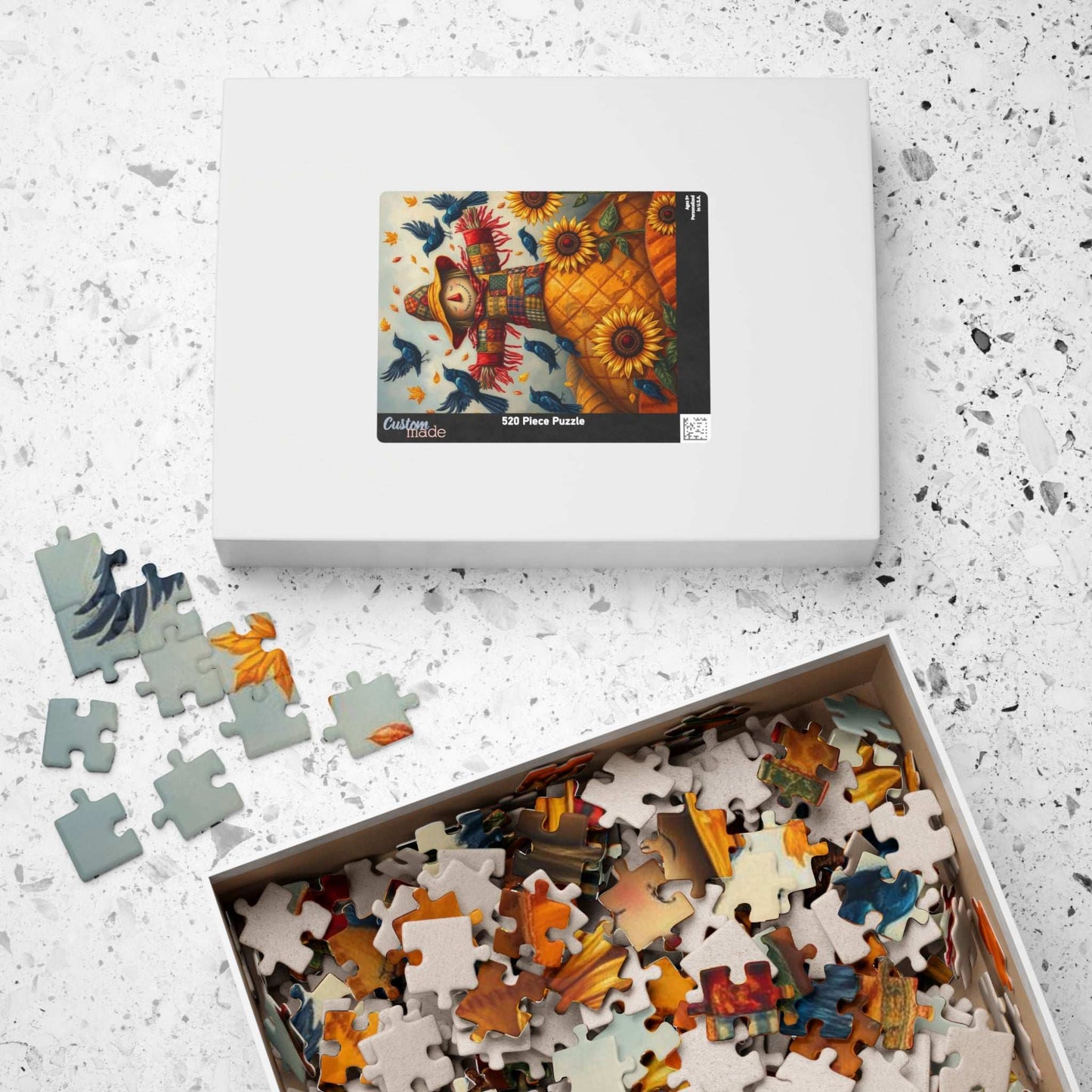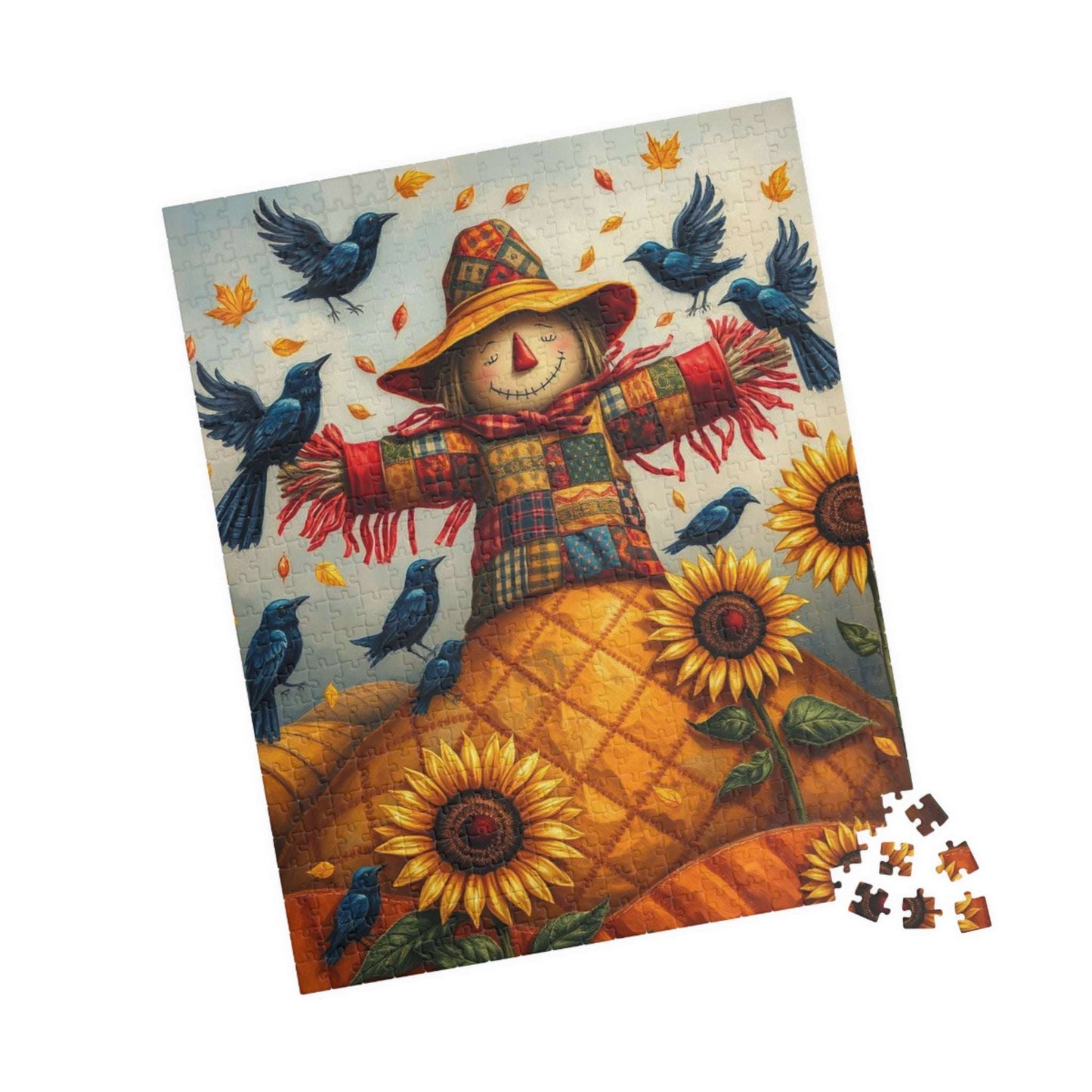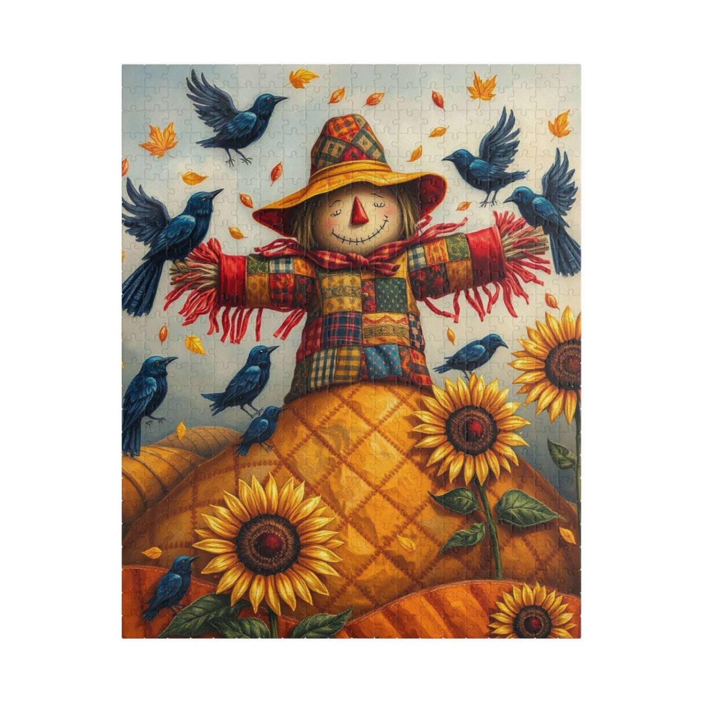 Fall Folk Art Scarecrow Puzzle, Cozy Autumn Jigsaw for Family Game Night, Thanksgiving Fun, Gift for Puzzle Lovers, 110 252 520-piece