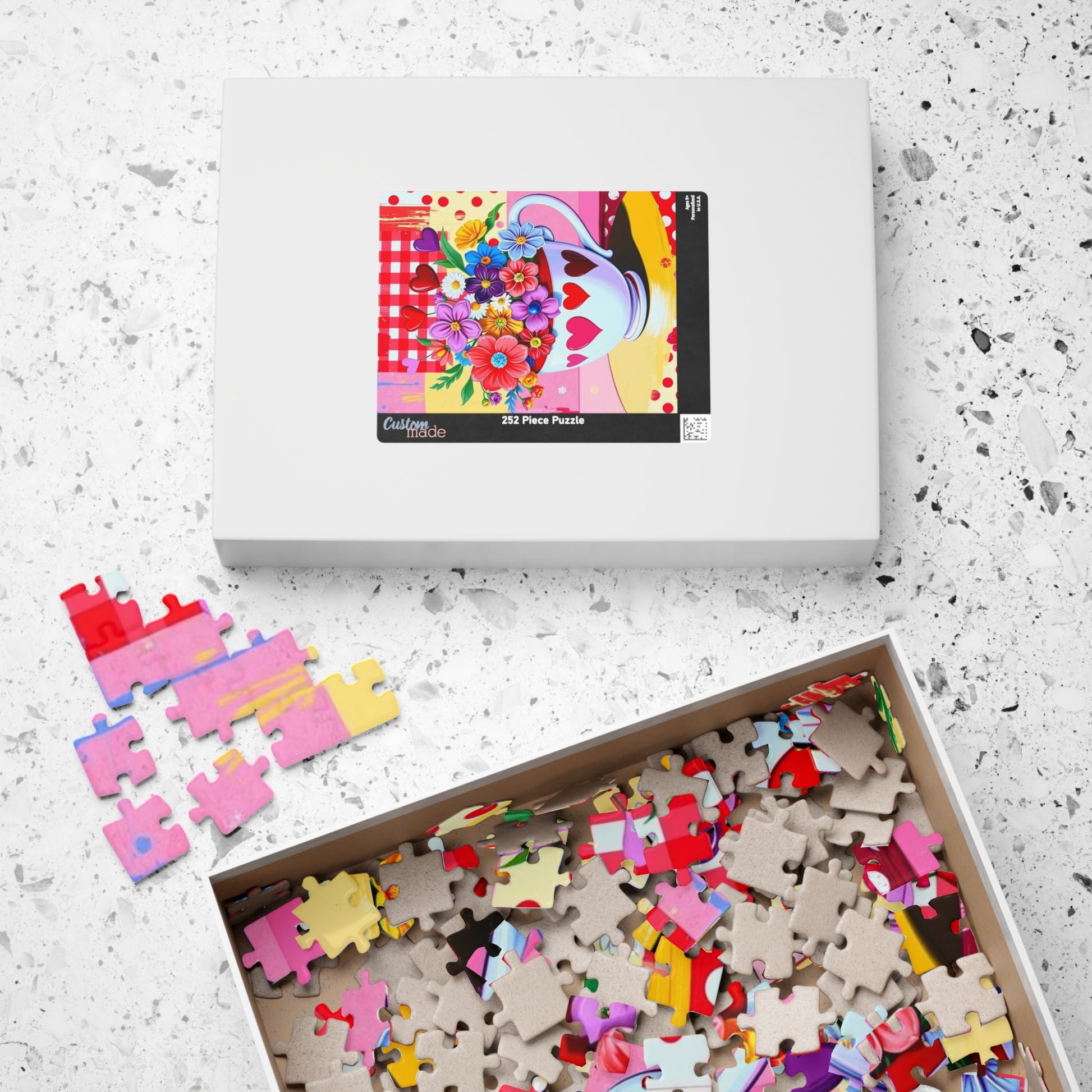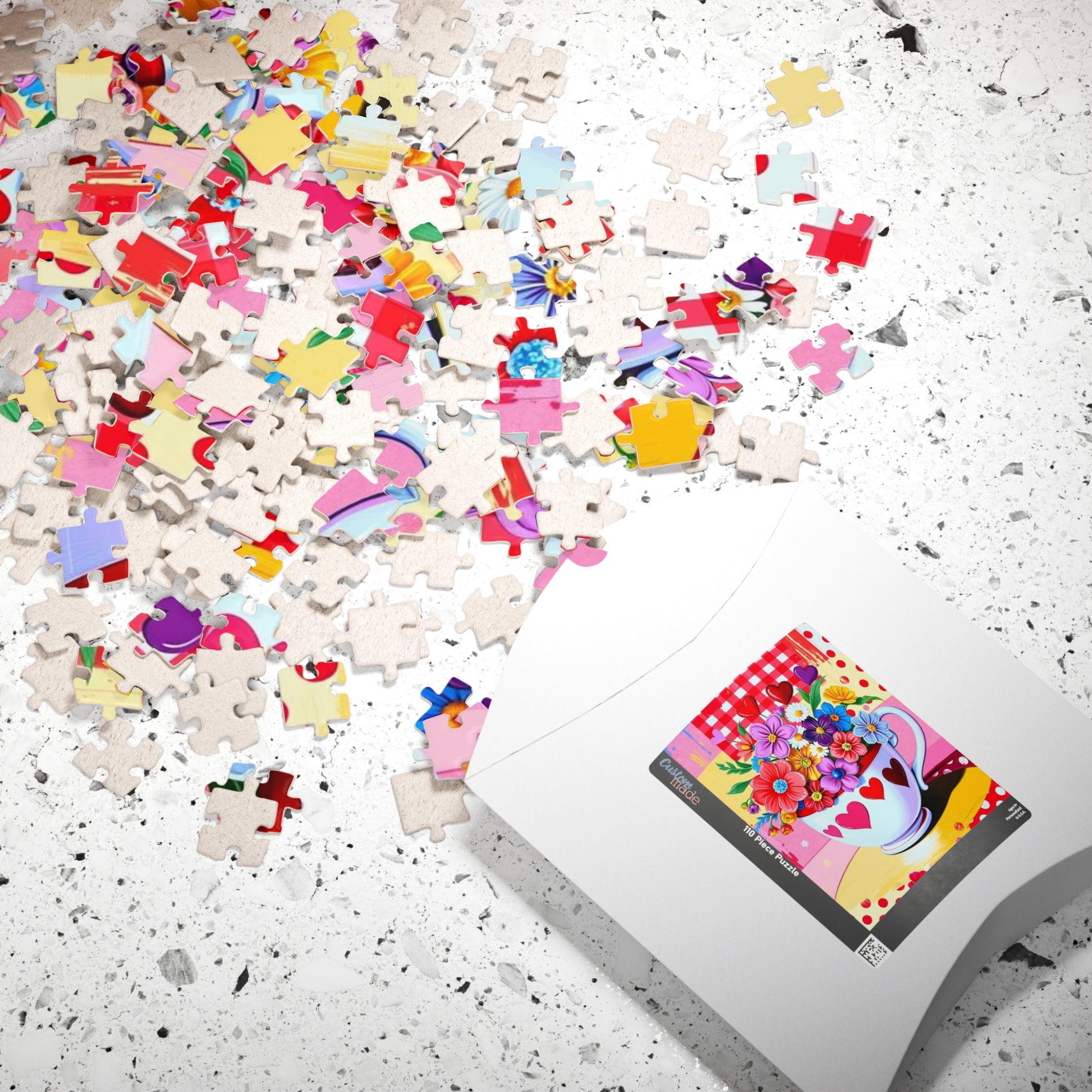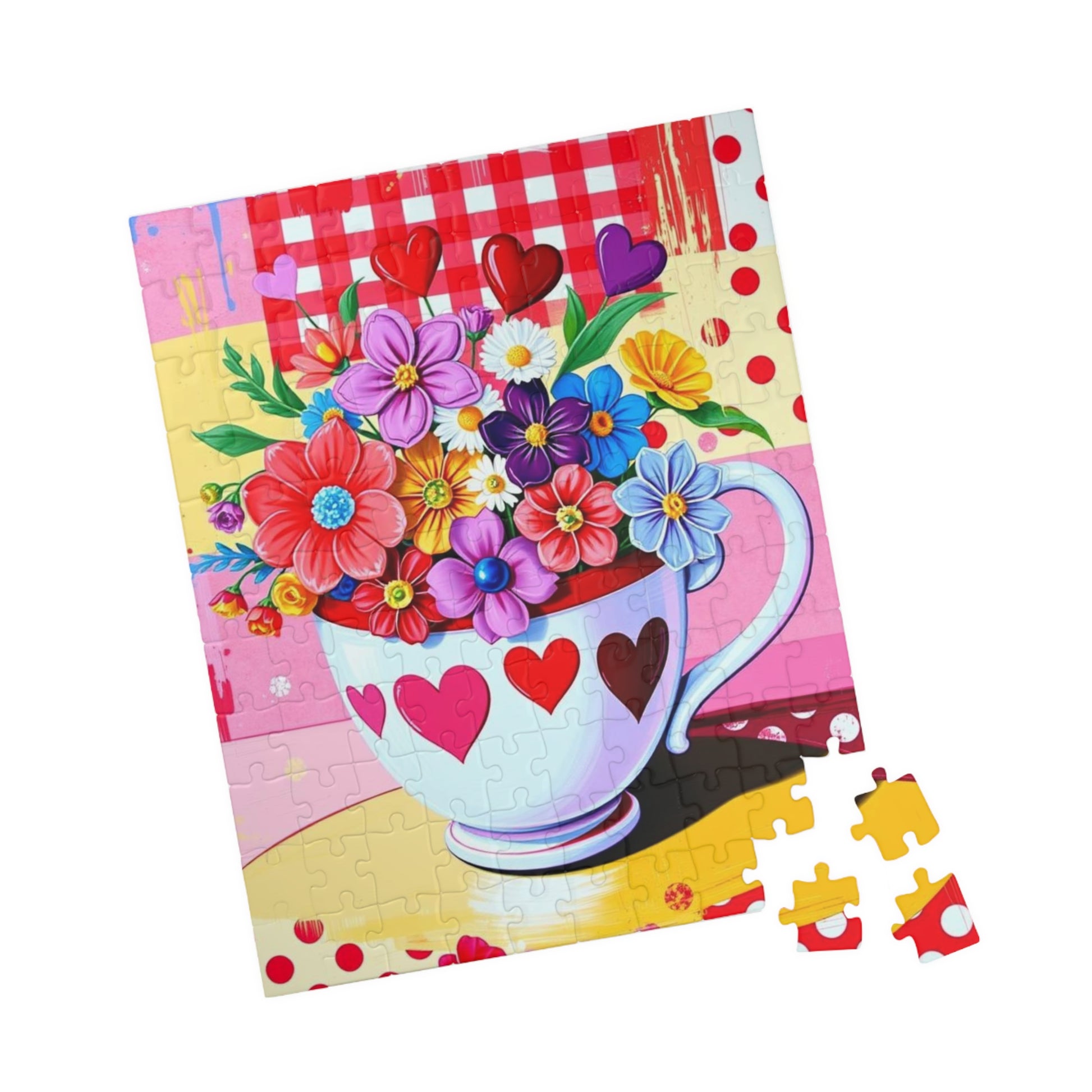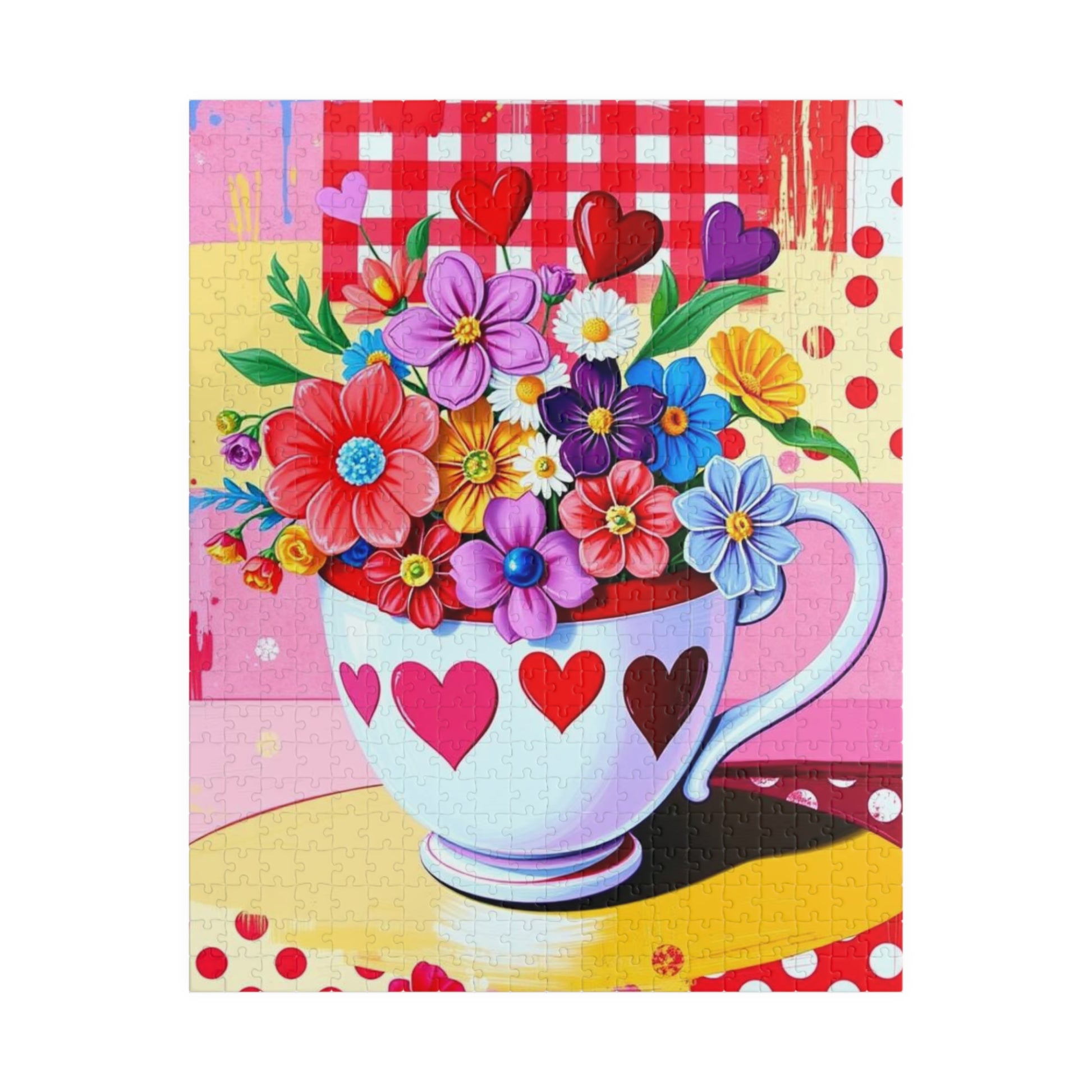 Floral Heart Teacup Puzzle, Pop Art Jigsaw Game for Family Fun, Gift for Adults and Friends, Perfect for Holidays and Birthdays