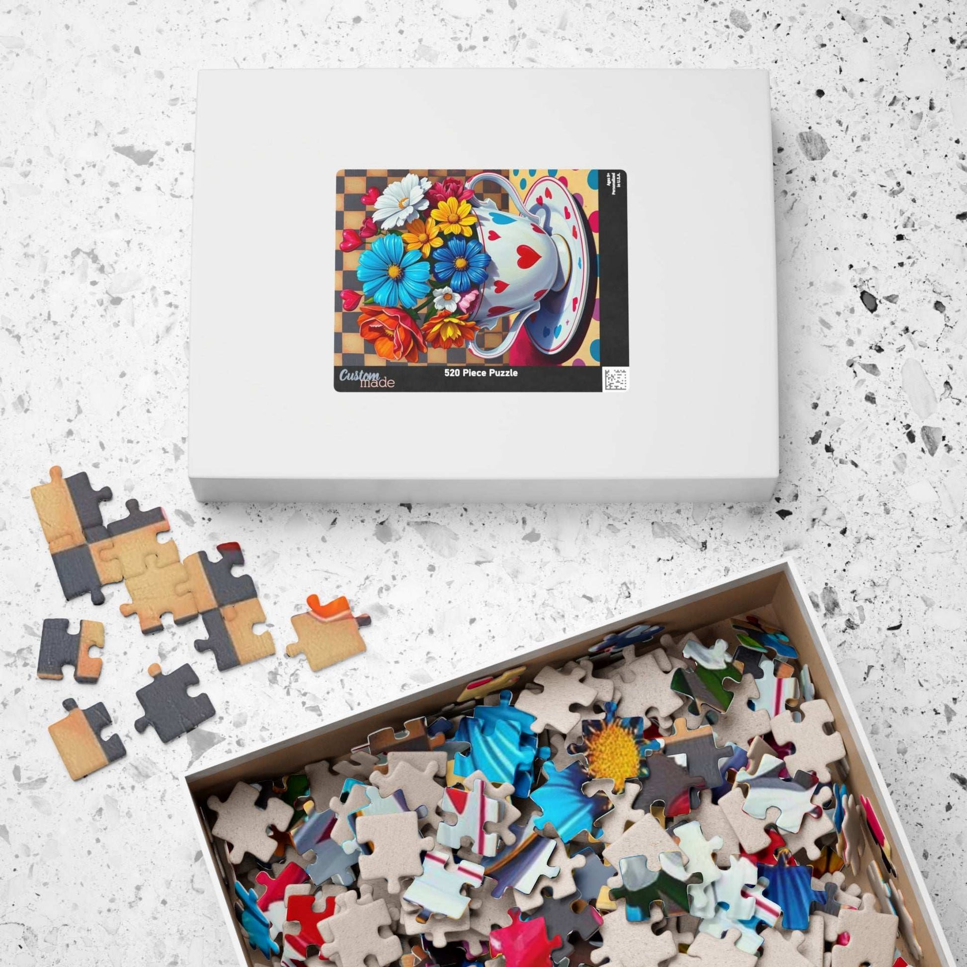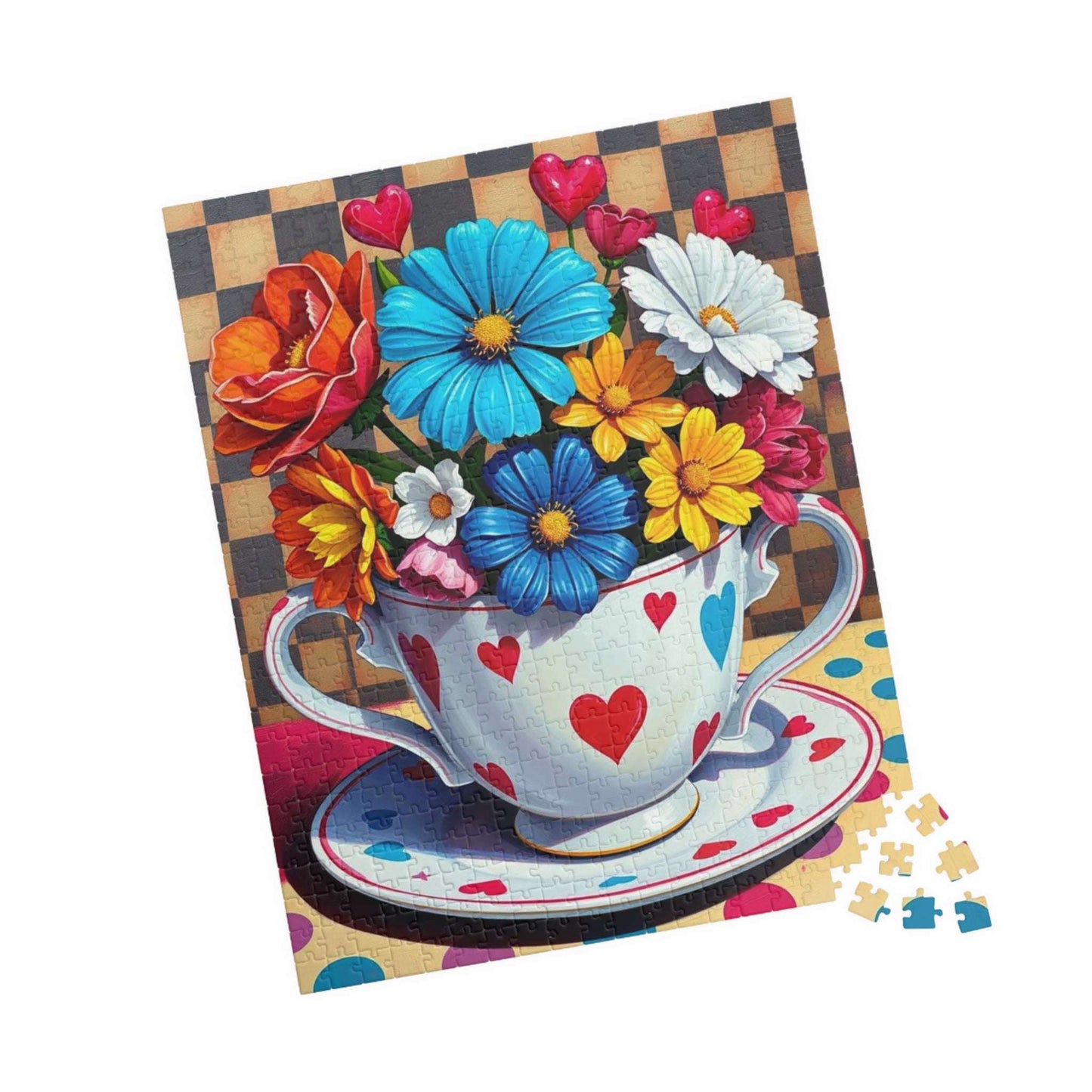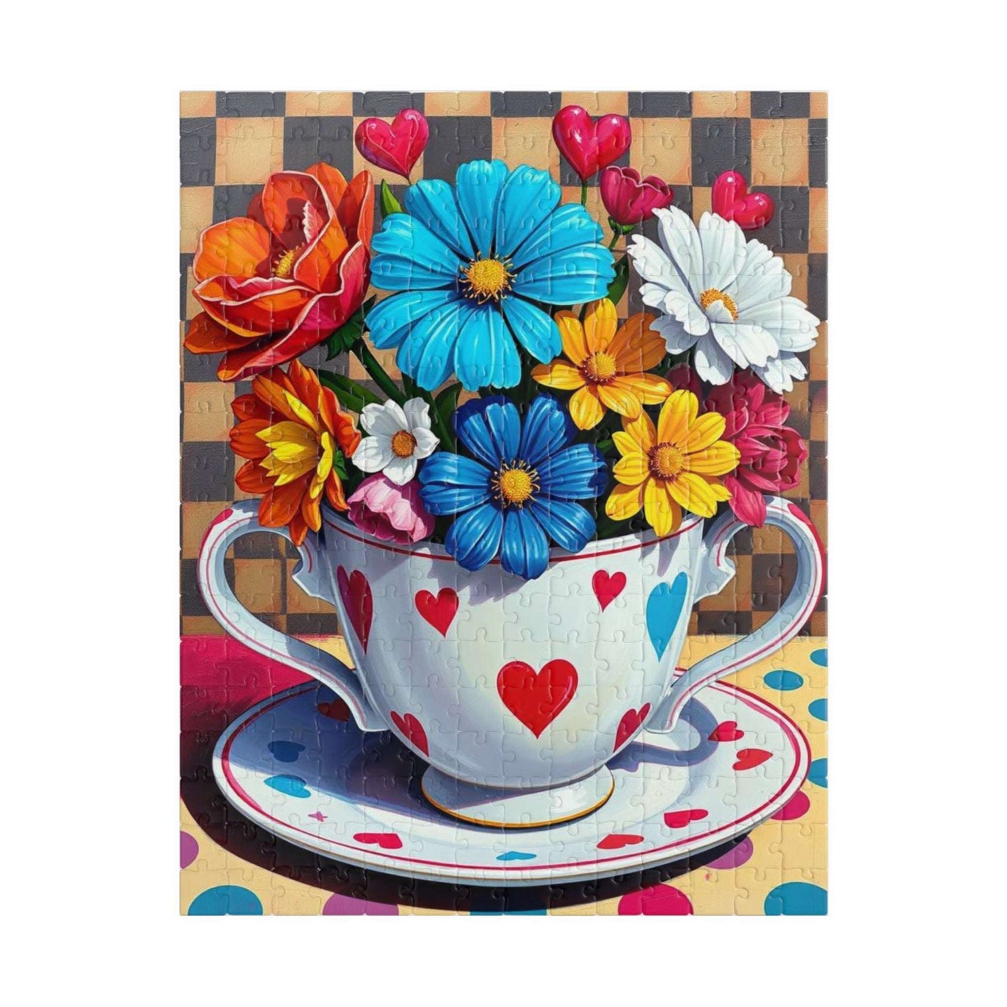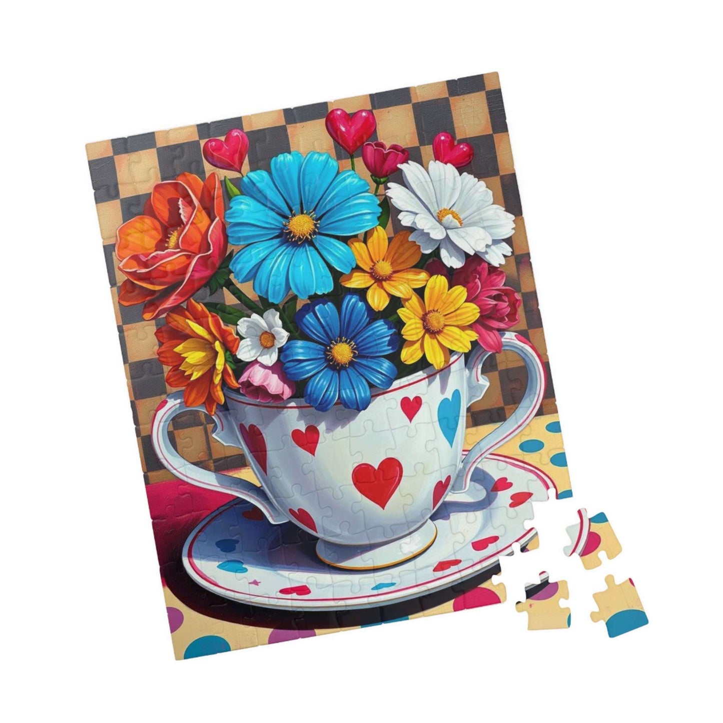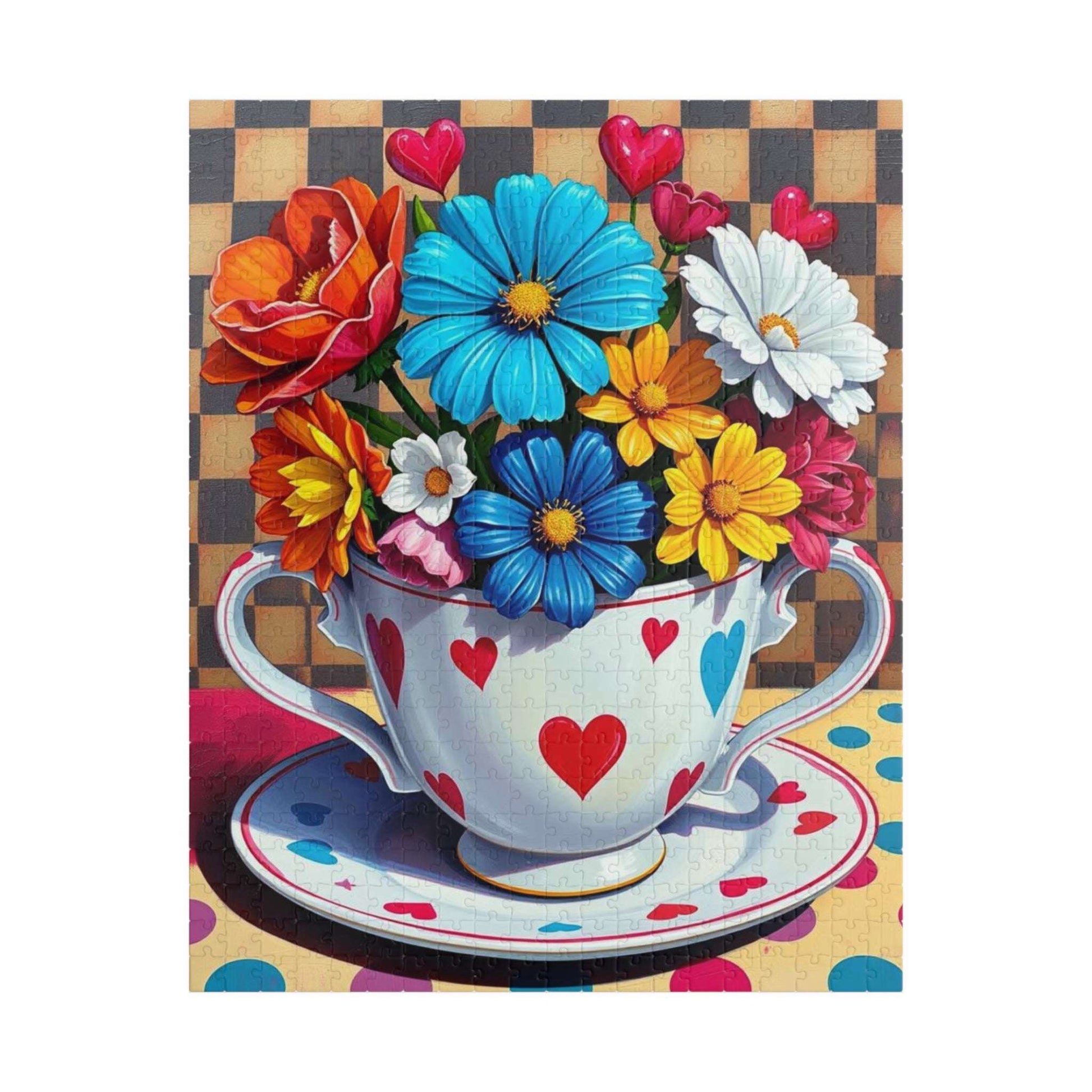 Floral Teacup Puzzle | Pop Art Jigsaw Game of Colorful Flowers | Gift for Flower Lovers, Friends, Family, Home Entertainment, Brain Teaser
