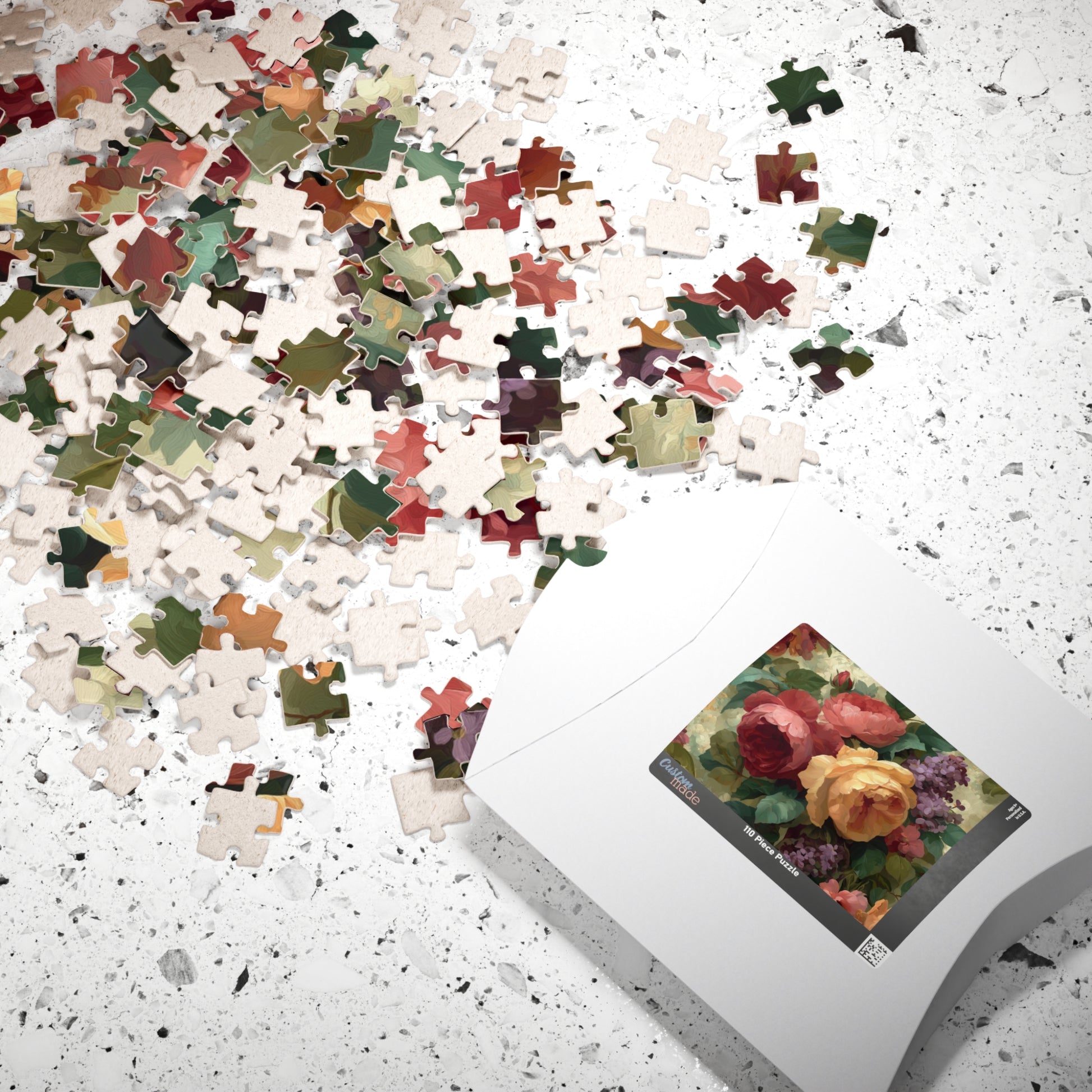 A tactile, slow-paced craft that brings a classic floral painting to life. This puzzle turns a vintage bouquet into hours of focused calm — glossy petals catch the light as you fit each sturdy chipboard piece together. Lay out the vibrant roses and lilacs, lose yourself in the warm palette, and end with a picture-ready image mounted on the included paper box or displayed on the table. Whether you’re building through a rainy afternoon or sharing quiet time with someone who loves art, the weighty pieces and crisp printed colors make completion feel like an achievement.