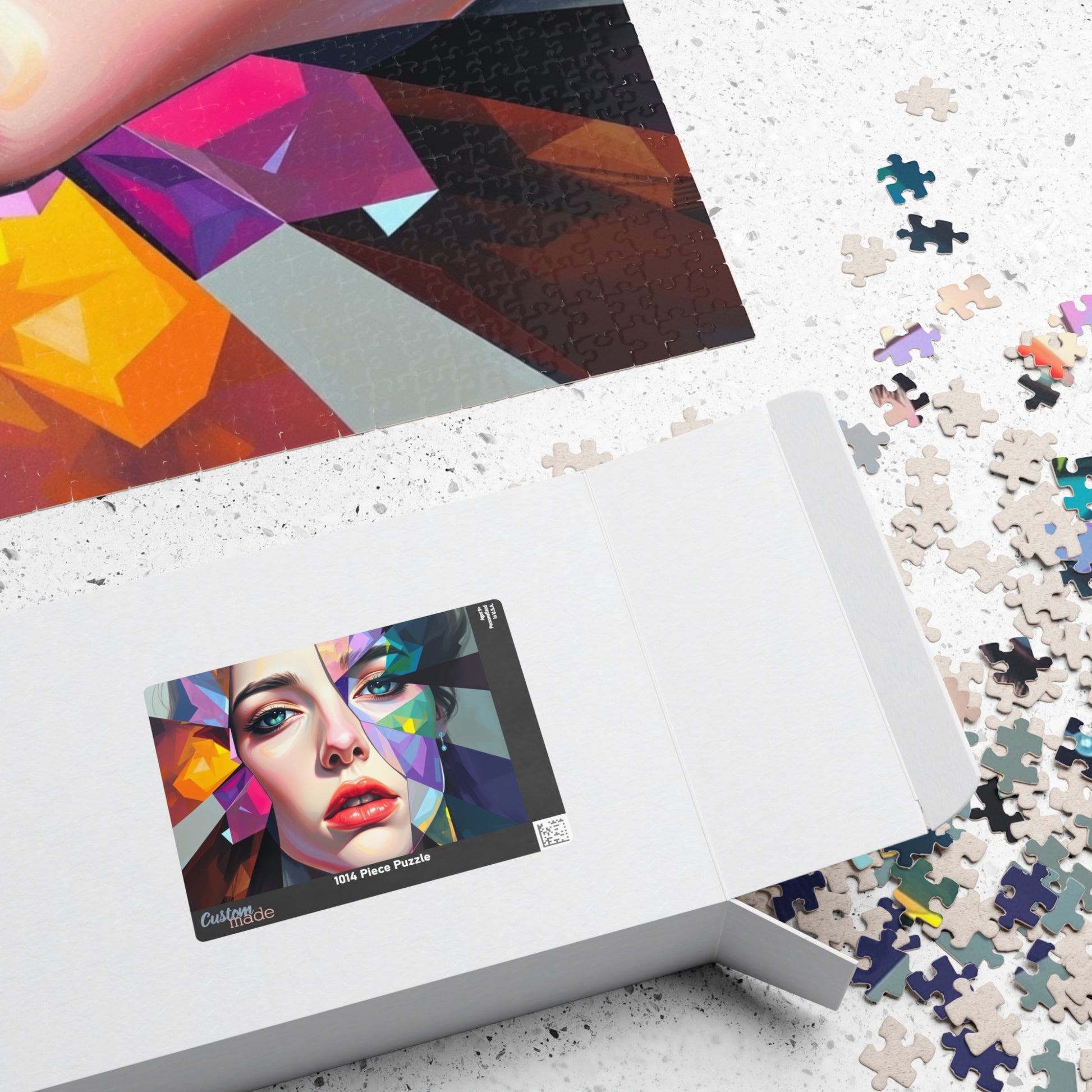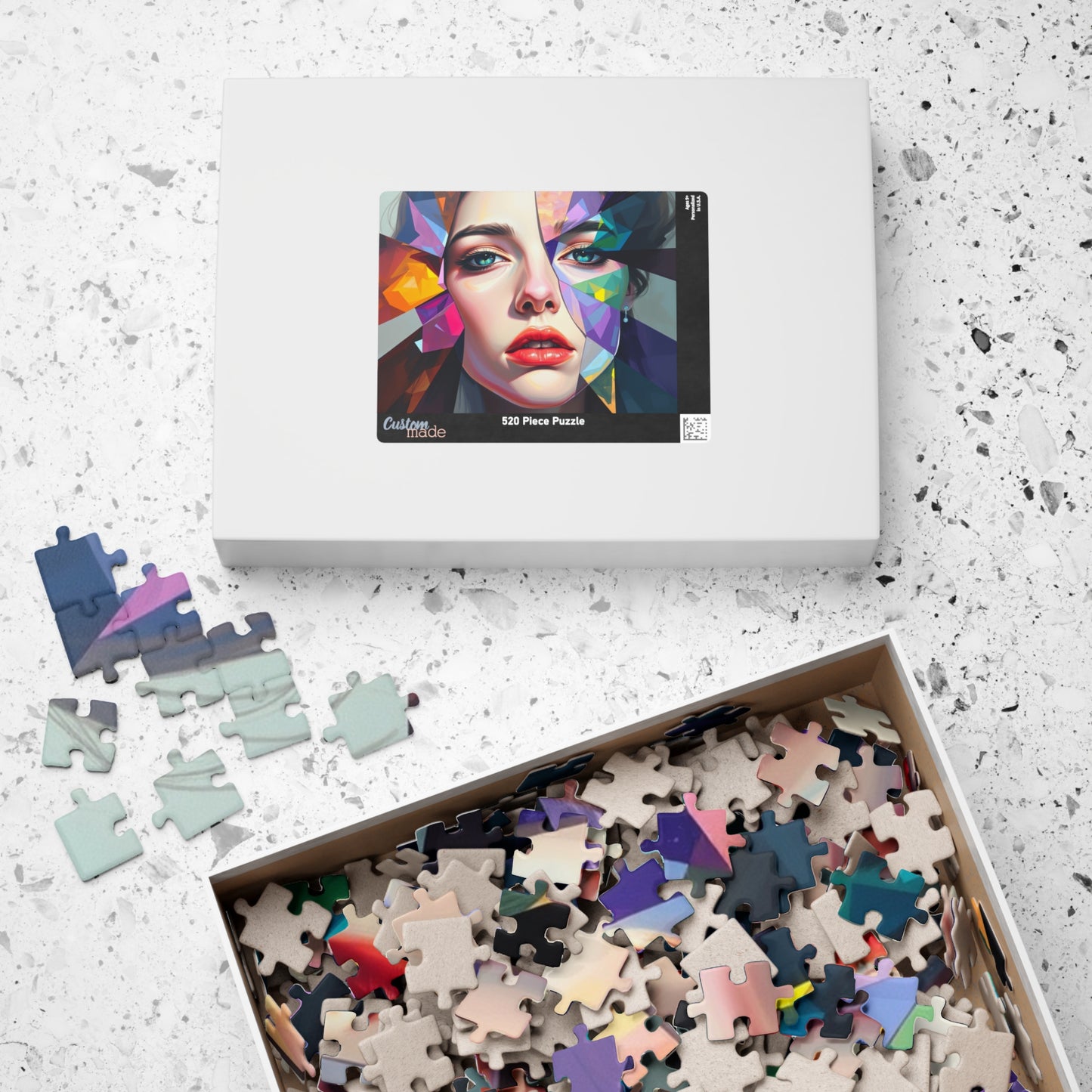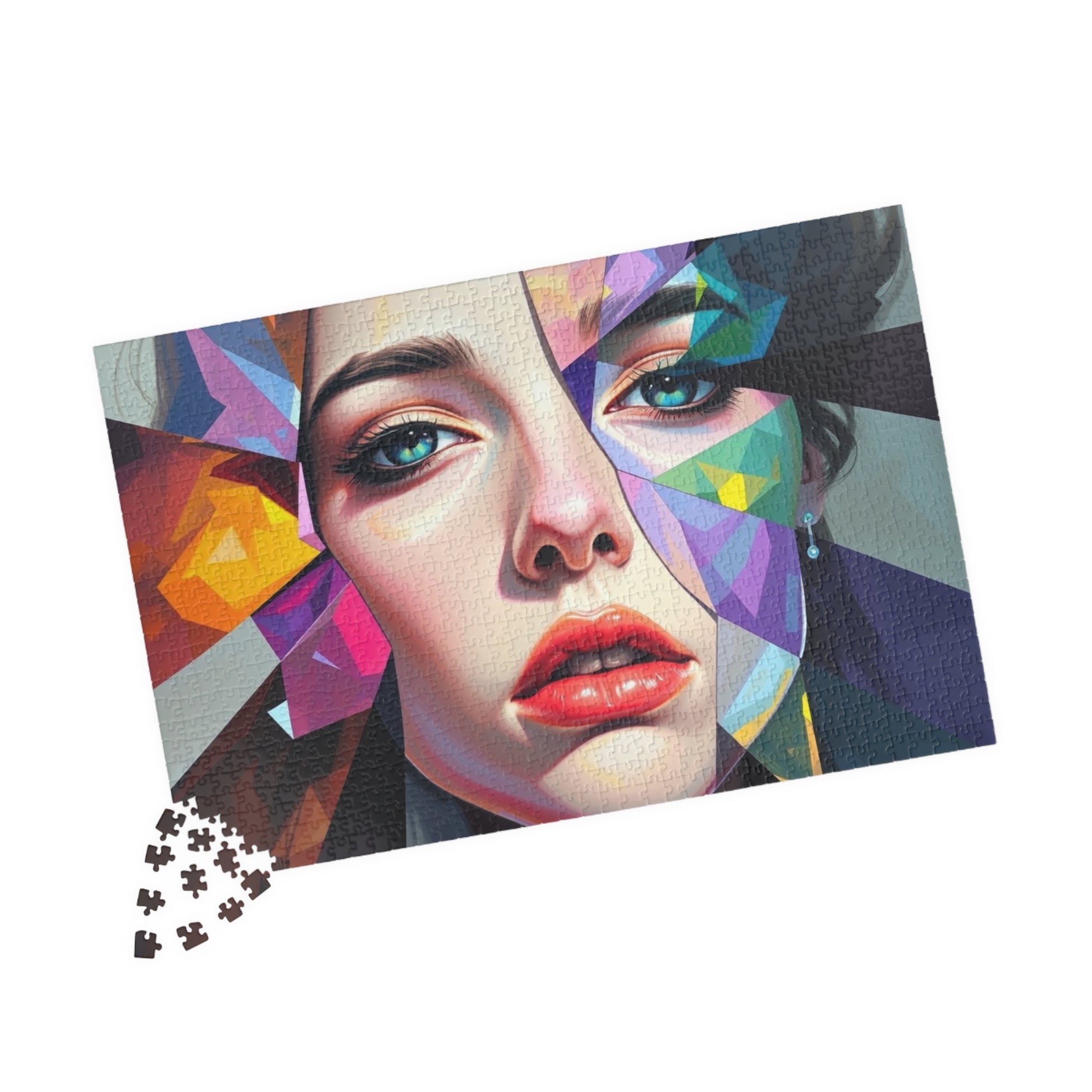 This captivating puzzle features a soft, dreamy abstract painting of a face, beautifully fragmented into vividly colored prisms. Each shard reflects a different emotion, creating a stunning visual representation of human expression. The hazy, soft light that bathes the scene adds a sense of tranquility, making this puzzle both challenging and meditative to assemble, while offering a unique exploration of emotions through art. Perfect for puzzle enthusiasts and art lovers, this design offers a thought-provoking journey as you piece together each vibrant facet.