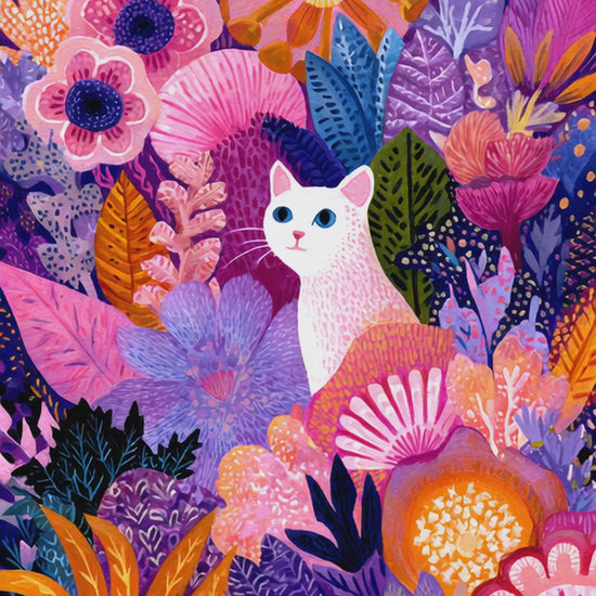 This Puzzle features a white cat surrounded by flowers in a Matisse-Inspired design, giving off a whimsical and artistic vibe. Perfect for cat lovers and art enthusiasts, this puzzle can provide hours of entertainment and relaxation. Ideal for gifting during birthdays, holidays, or for any puzzle enthusiast.