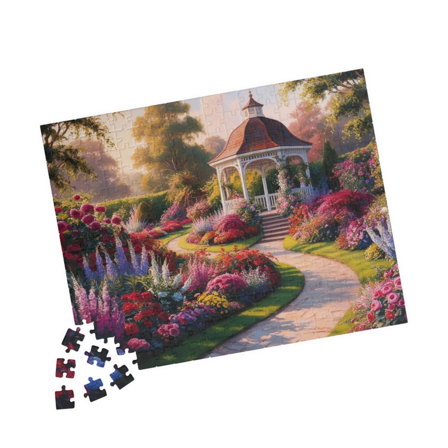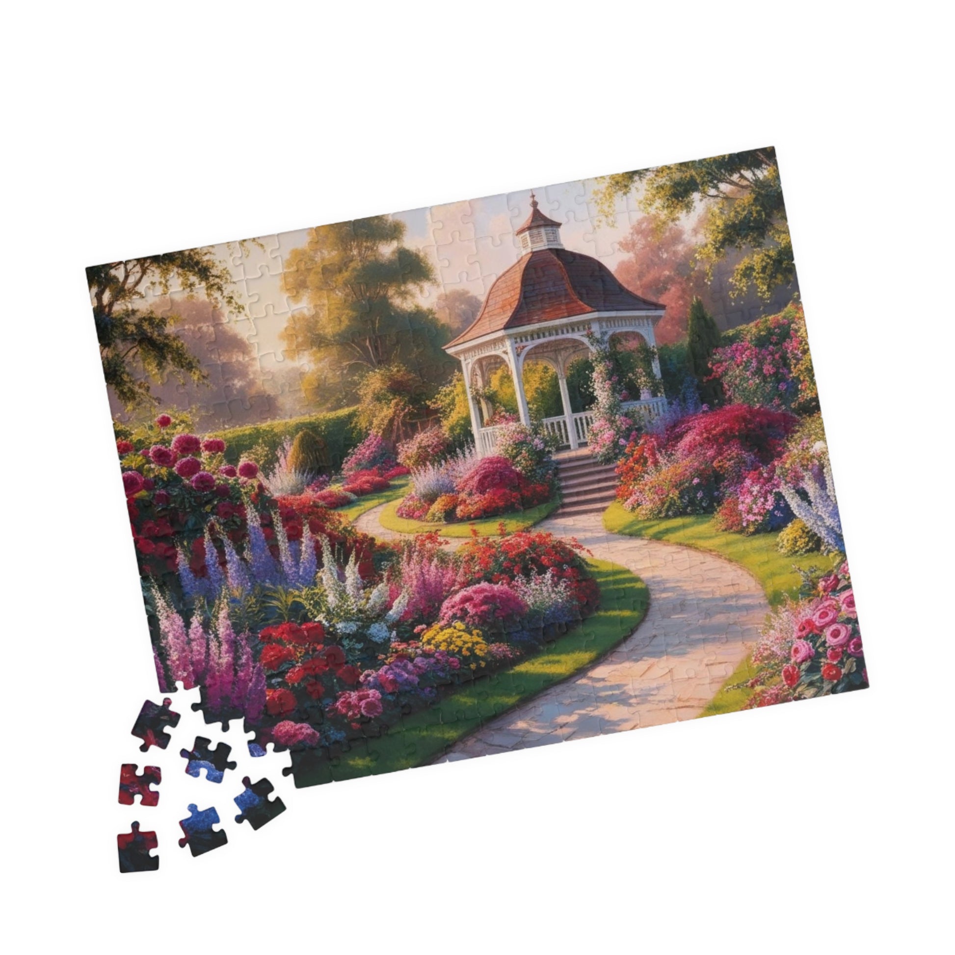 Garden Gazebo Puzzle - 110, 252, 520, 1014-piece Floral Landscape Jigsaw Game, Family Activity, Best Nature Lover Gift, Hobby