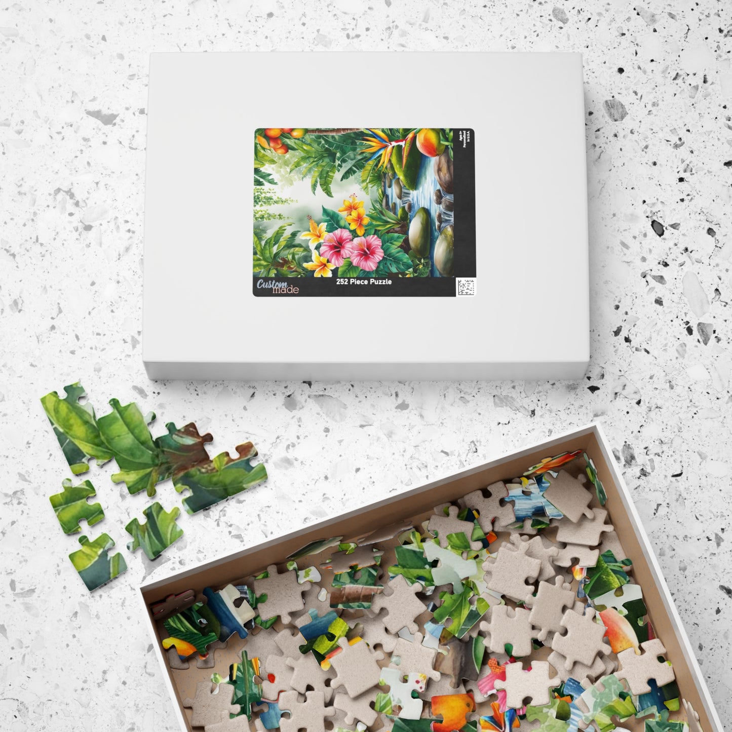 Step into a paradise of natural beauty with this captivating puzzle, depicting the Garden of Eden in all its lush, tropical glory. Vibrant flowers bloom, flowing streams meander through the scene, and fruit-laden trees stand tall amidst a gentle mist. Sunlight filters through the canopy of leaves, casting a serene glow over the tranquil landscape. This enchanting puzzle offers a peaceful and immersive experience as you assemble each piece and bring this heavenly garden to life. Perfect for nature lovers and puzzle enthusiasts alike, it's a beautiful way to escape into a world of color and calm.
