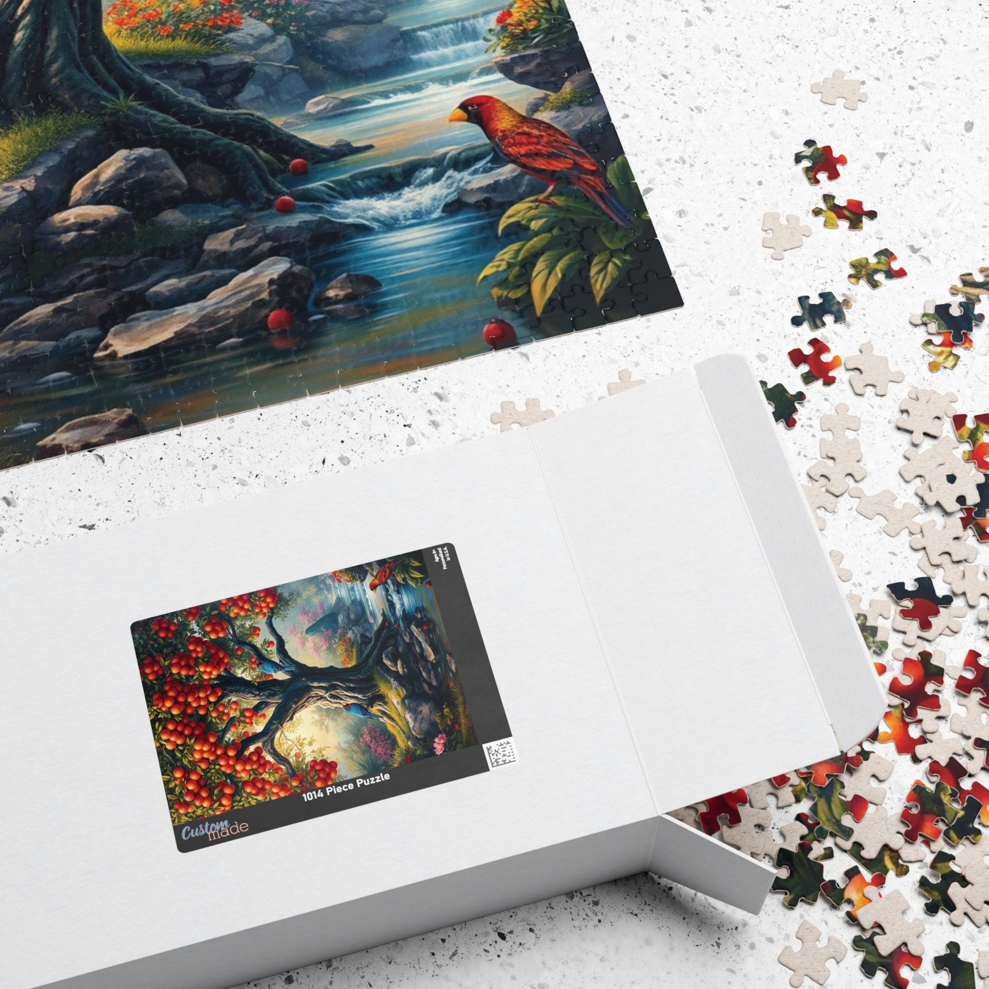 Garden of Eden Puzzle, Serene Biblical Scene (110, 252, 520, 1014 Pieces), Fruit Tree Stream Birds Flowers, Jigsaw Game Brain Teaser, Home