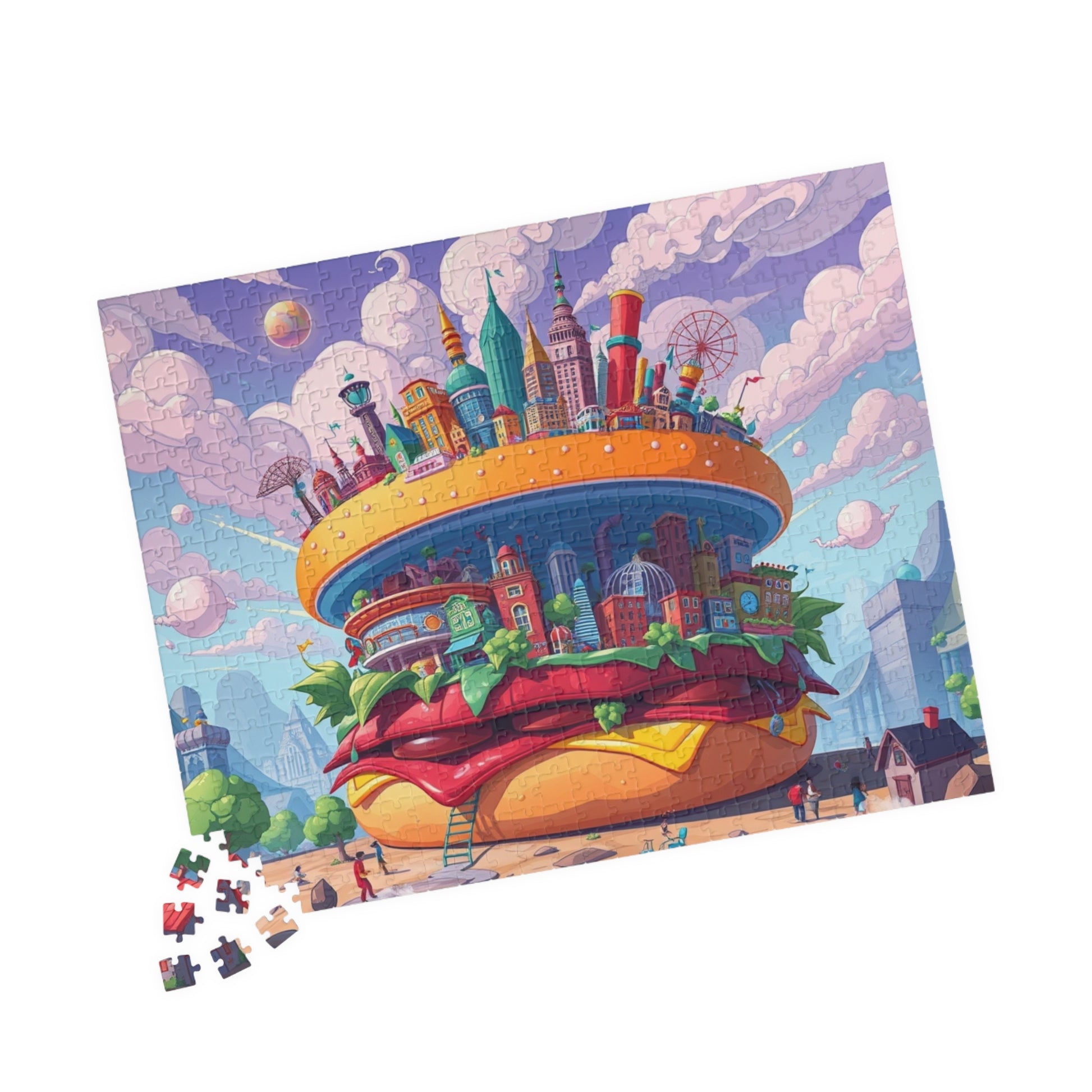 Get ready for a deliciously fun challenge with this eye-popping pop art puzzle featuring a giant burger stuffed with an entire cityscape! This vibrant and surreal design blends the love of fast food and urban adventure, creating a bold, comic-style masterpiece. Instead of lettuce and cheese, tiny skyscrapers and bustling streets peek out from between layers of dripping sauce, sizzling patties, and a bun. Perfect for food lovers, city dreamers, and pop art fans alike, this high-quality jigsaw puzzle offers hours of engaging fun while bringing a quirky, colorful masterpiece to life. Whether you frame it for a unique decor piece or enjoy the satisfying challenge of piecing it together, this puzzle is a must-have for those who love bold, imaginative artwork.