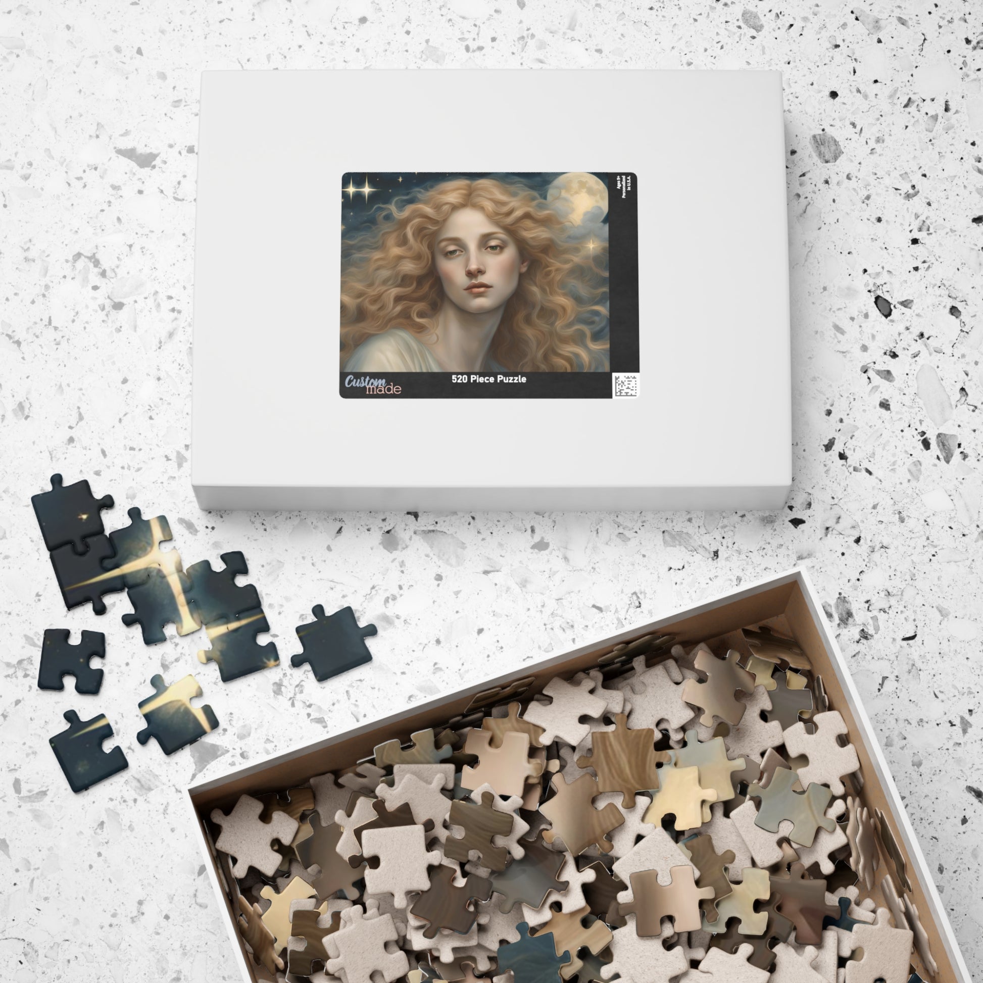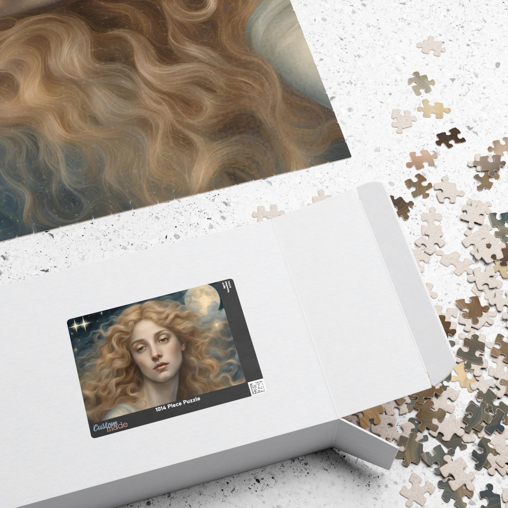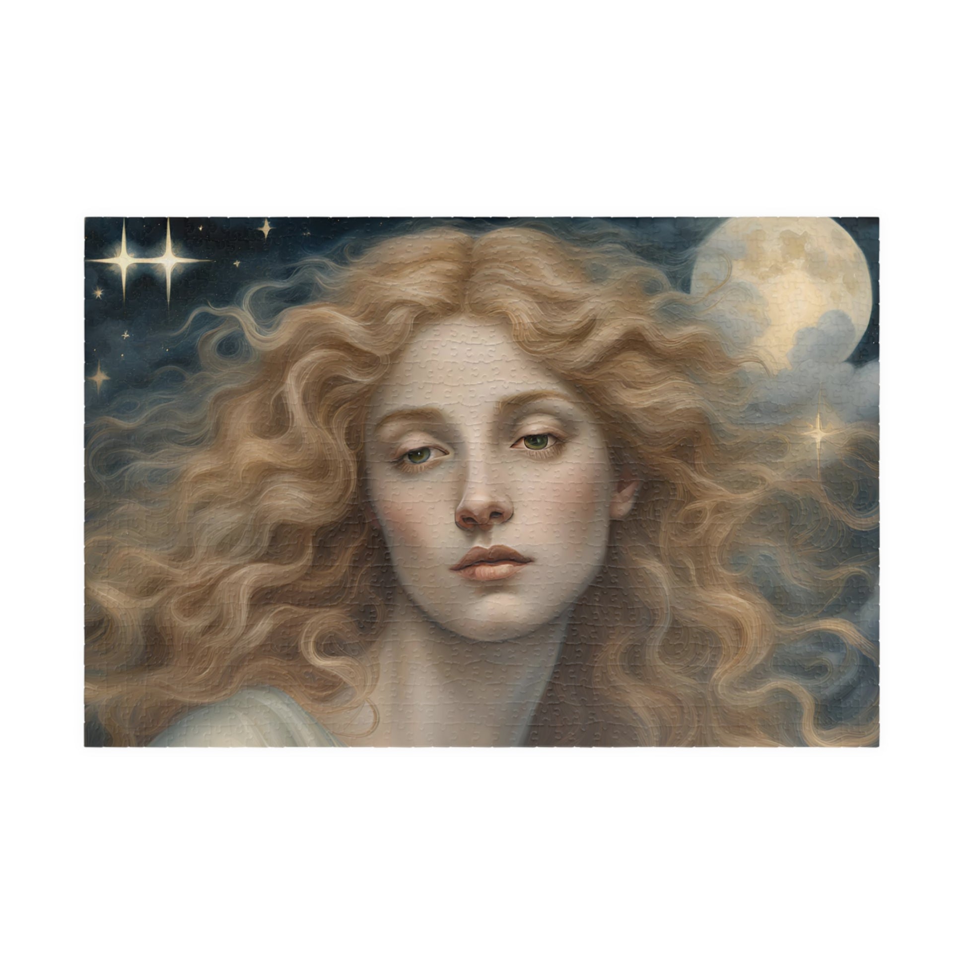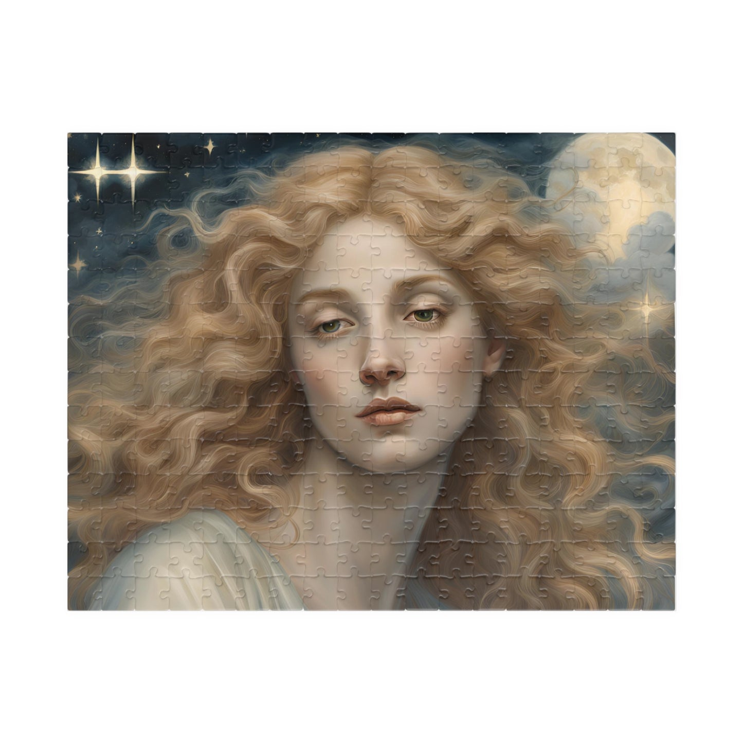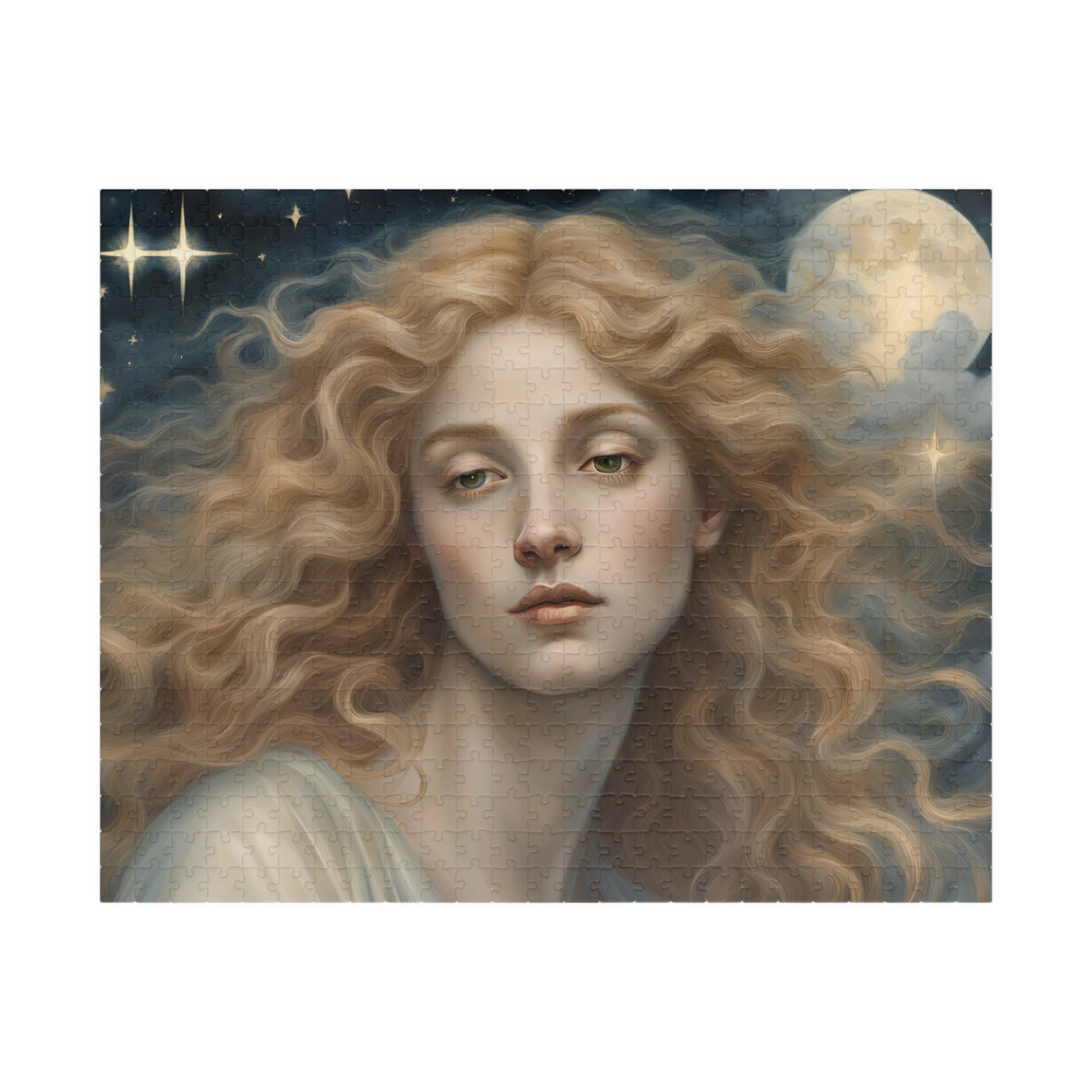 Immerse yourself in the celestial beauty of this puzzle featuring a close-up of a female angel with flowing golden hair. Perfect for angel enthusiasts and those who love intricate designs. Ideal for relaxing and unwinding during holidays or quiet evenings at home.