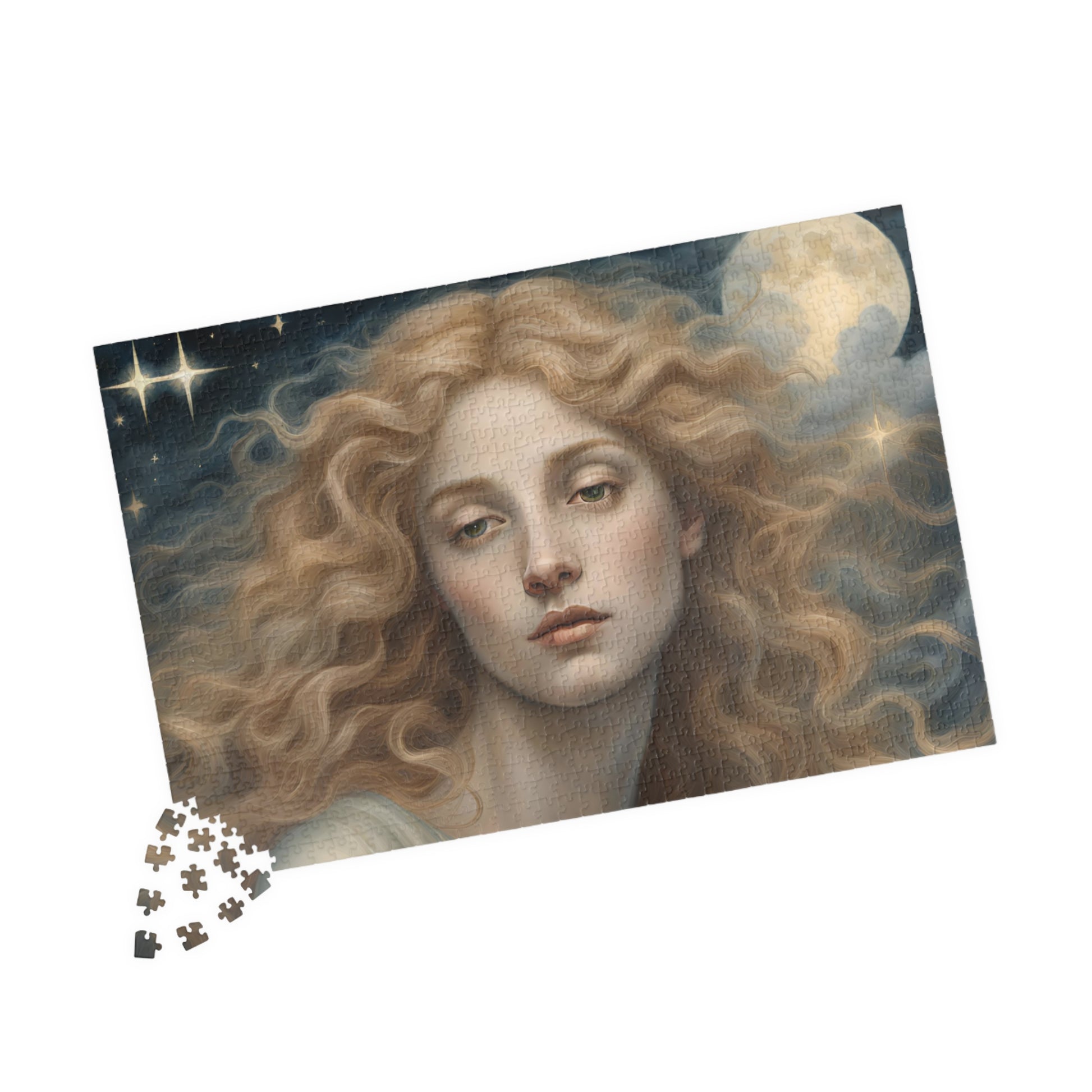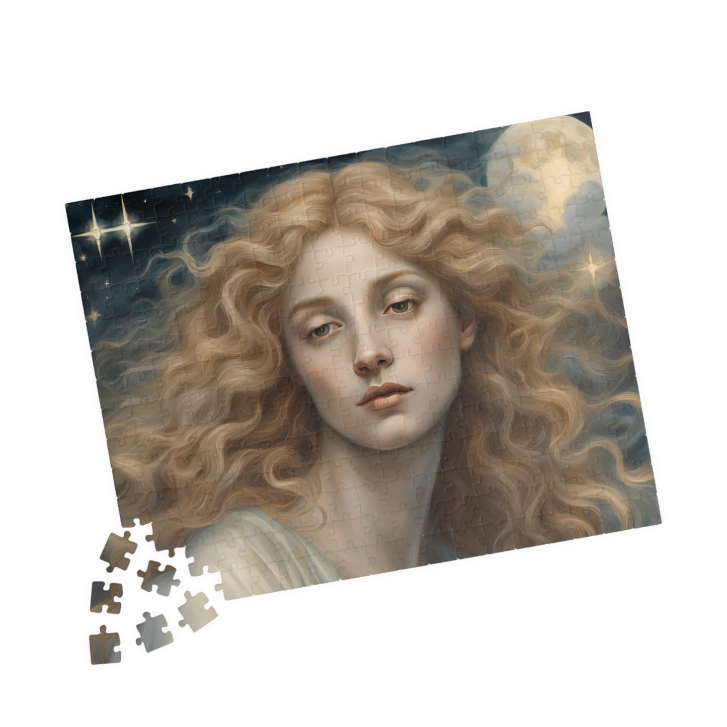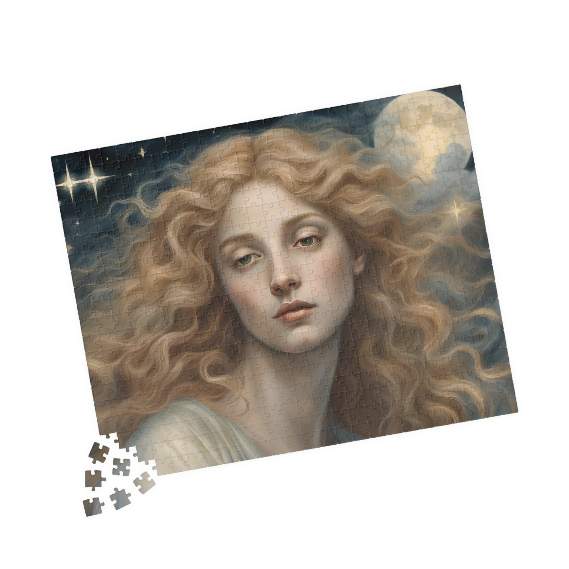 Golden Haired Celestial Angel Puzzle, Heavenly Angelic Creature Jigsaw Game, Spiritual Art, Adult Entertainment, Hobby