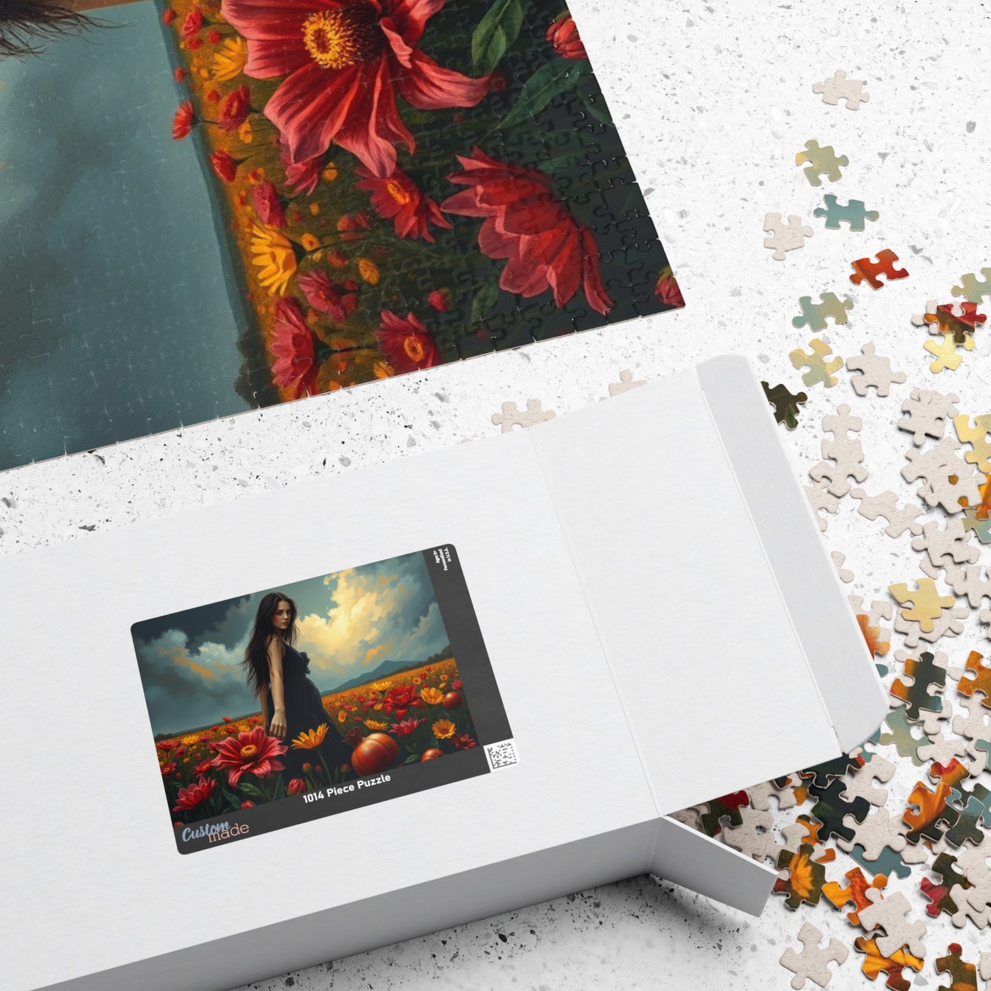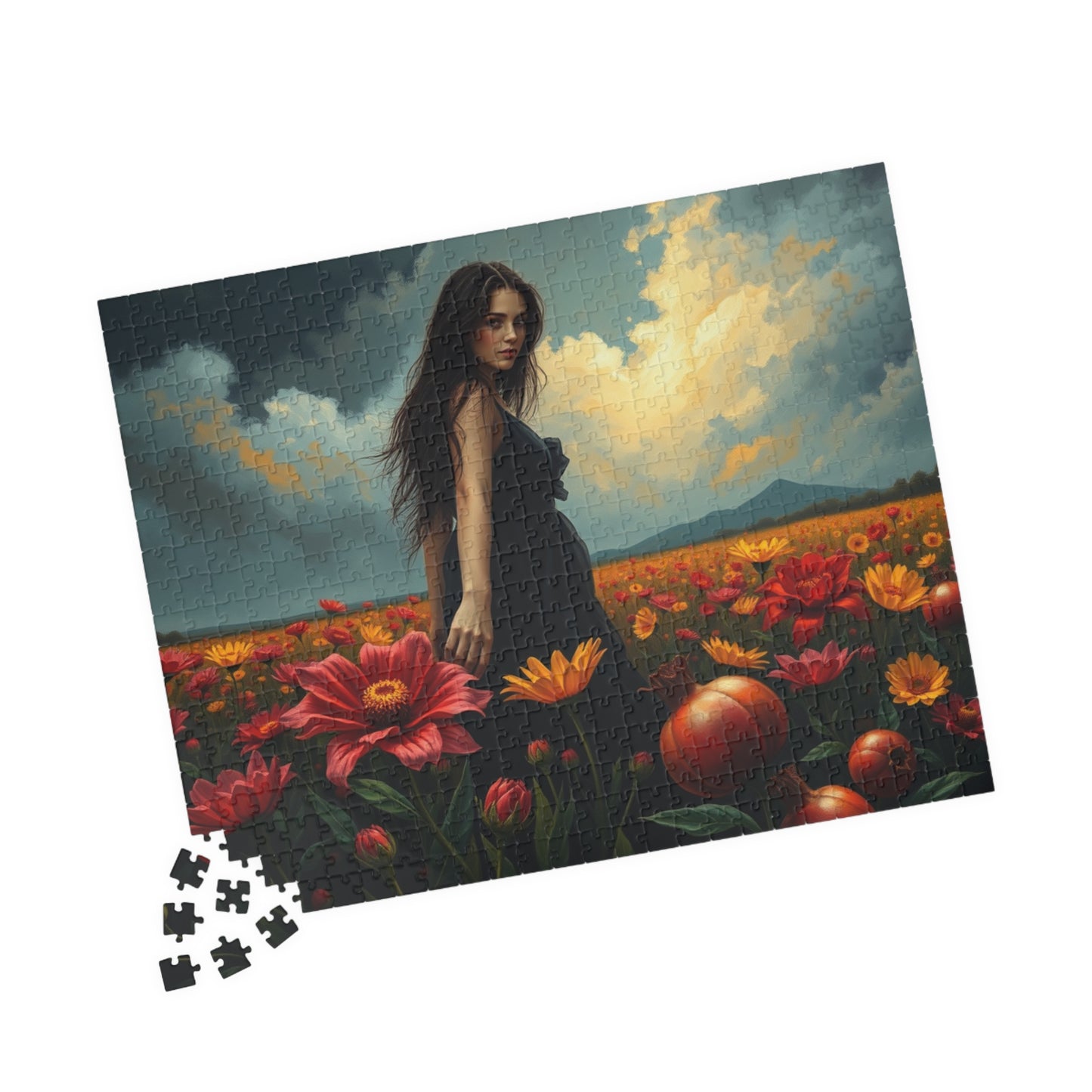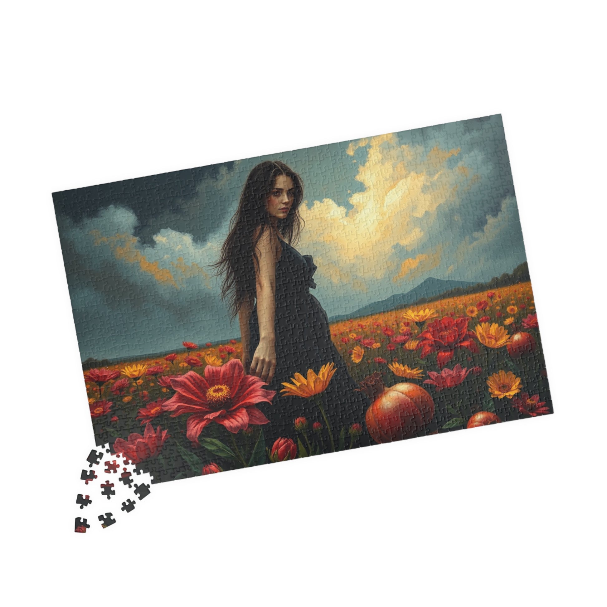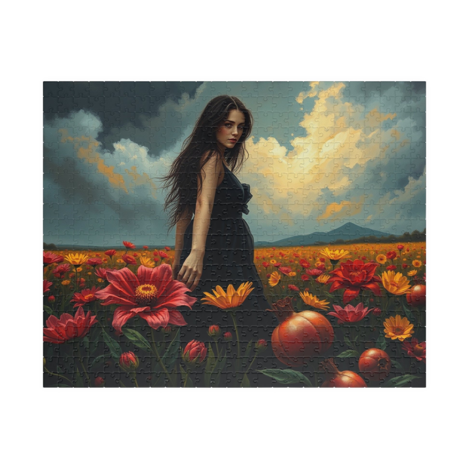 Gothic Floral Jigsaw Puzzle, Lone Figure in Flower Field Dark Fantasy Art Puzzle for Adult, Indoor Leisure Activity, Gift for Family Friends