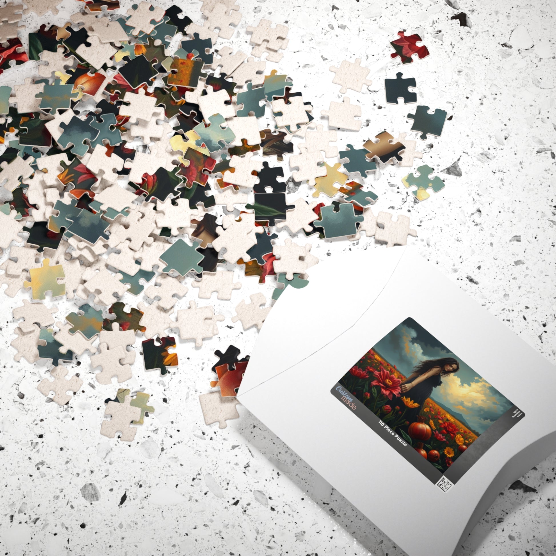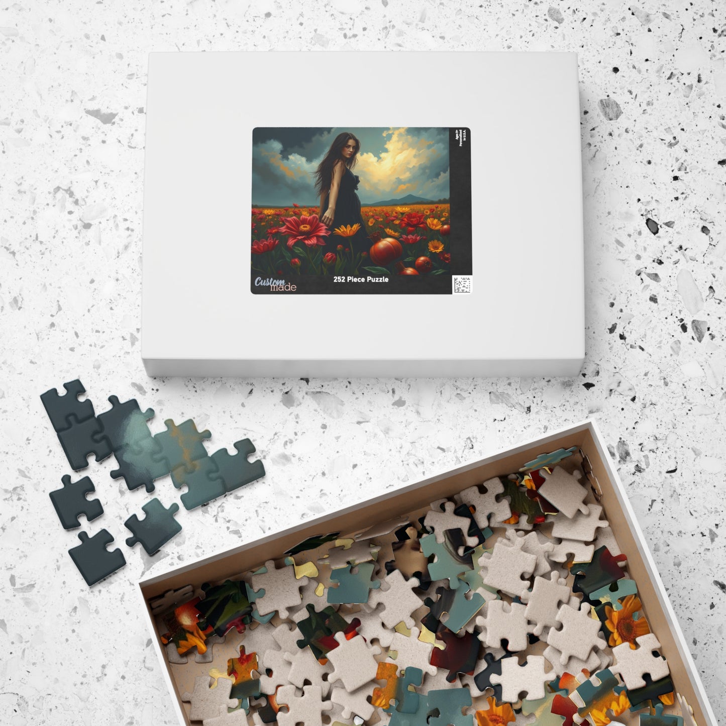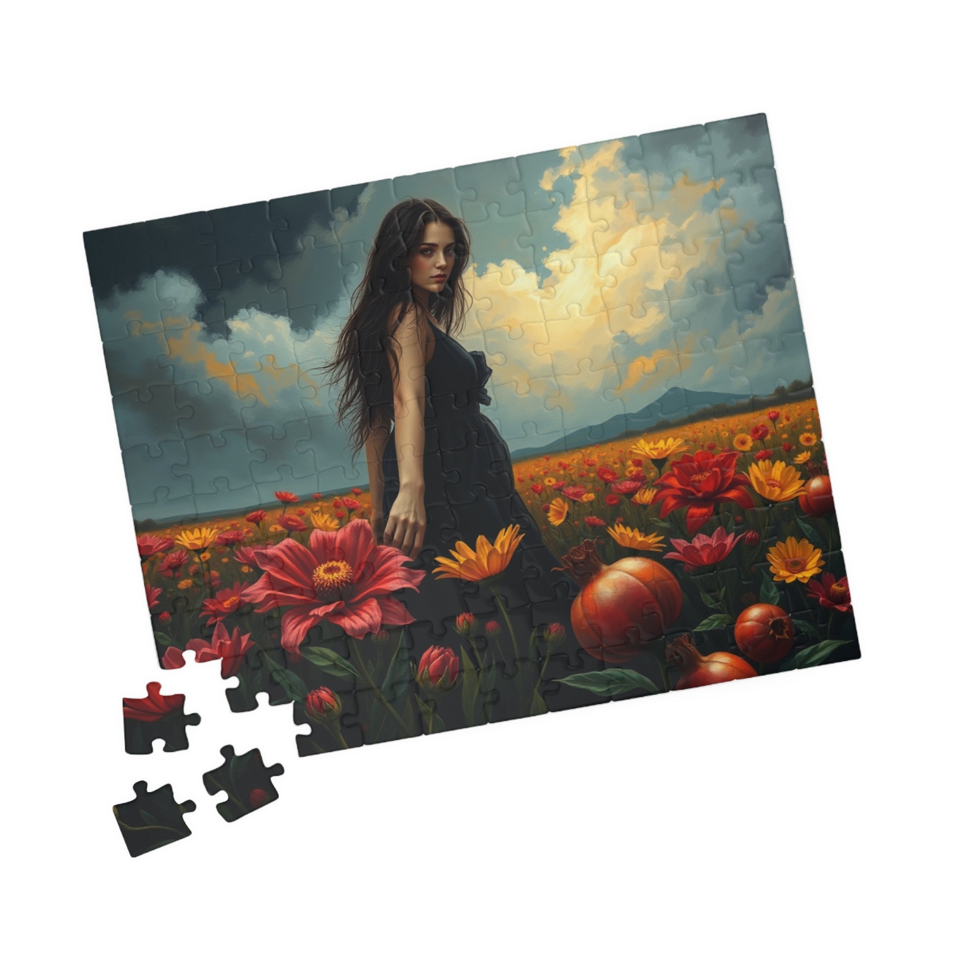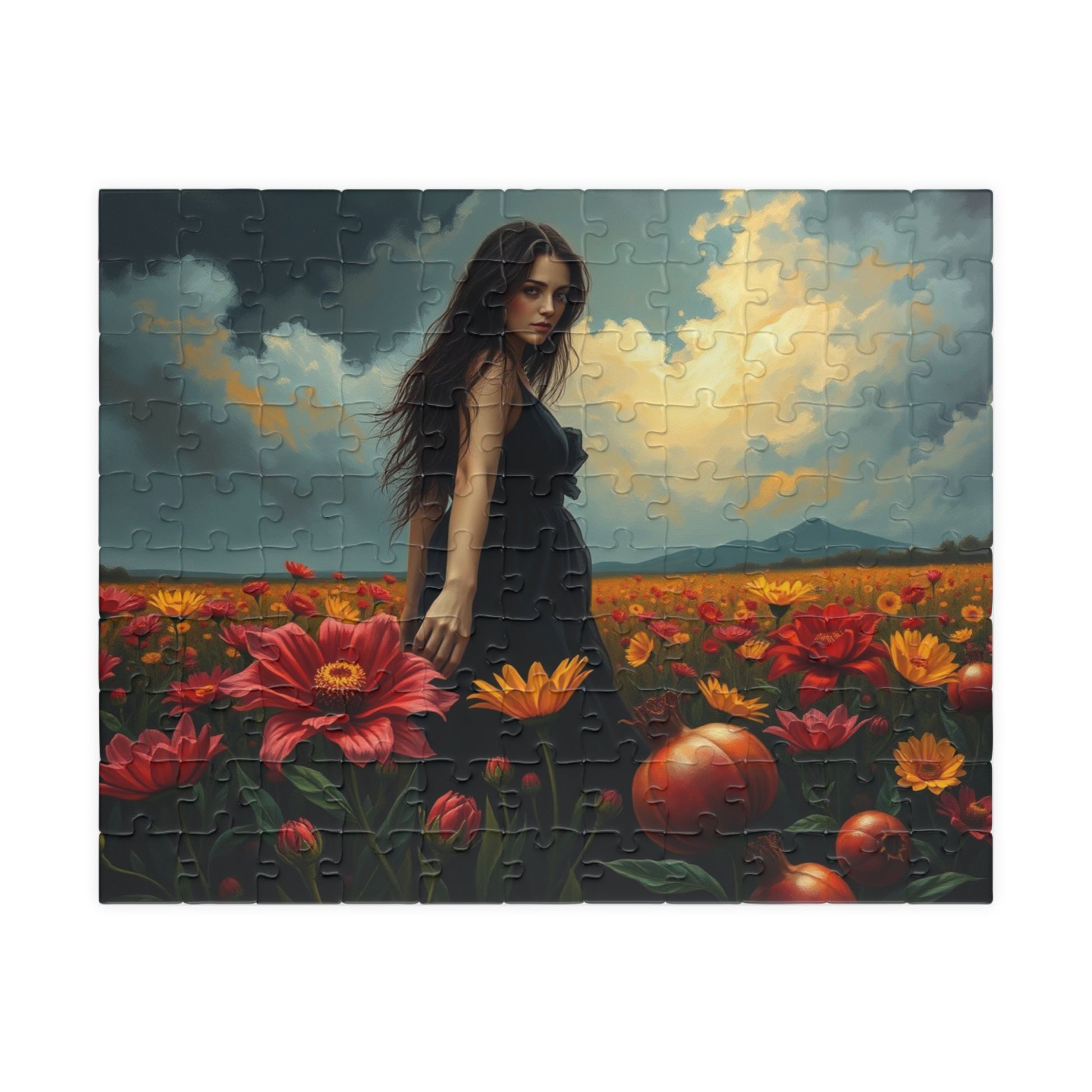 Gothic Floral Jigsaw Puzzle, Lone Figure in Flower Field Dark Fantasy Art Puzzle for Adult, Indoor Leisure Activity, Gift for Family Friends