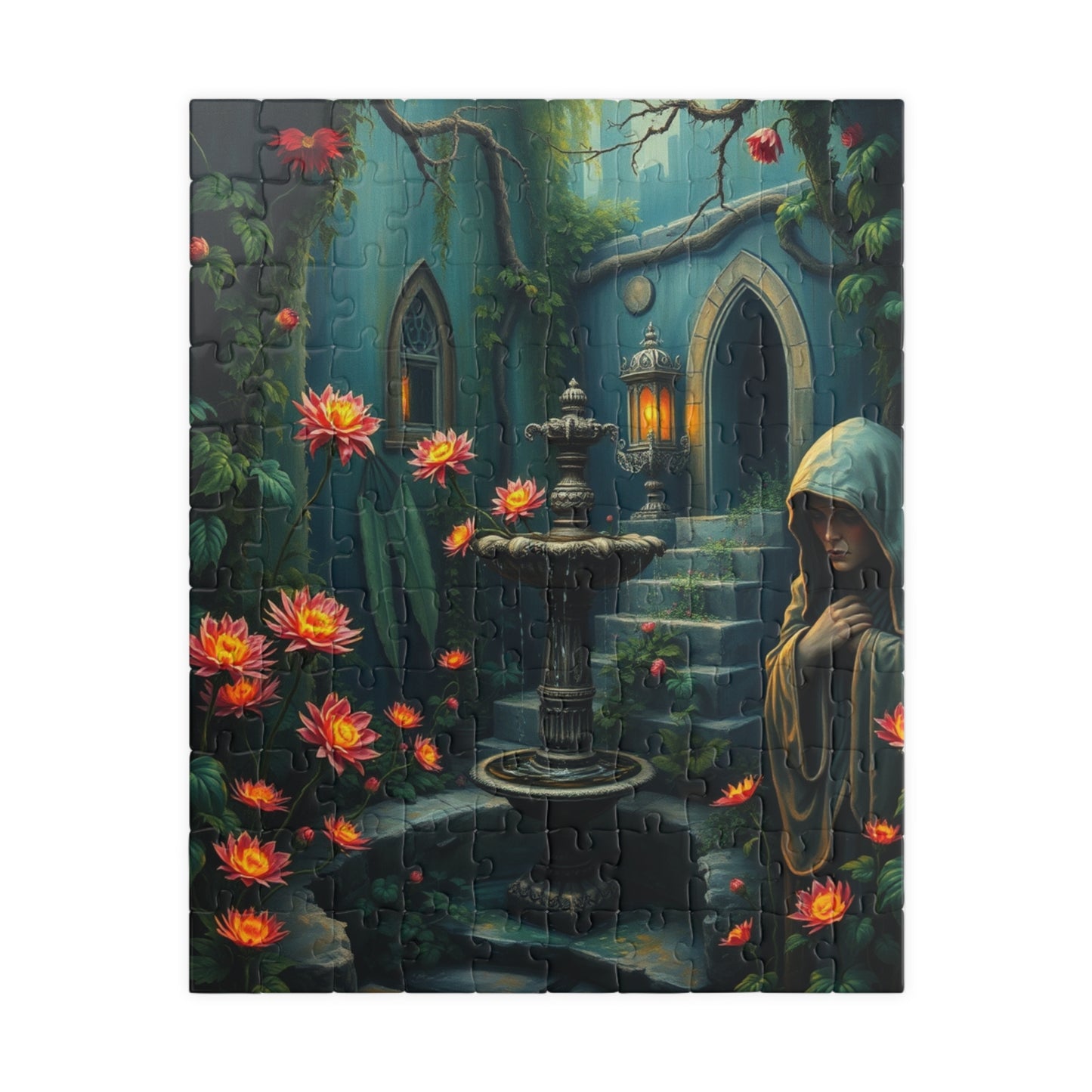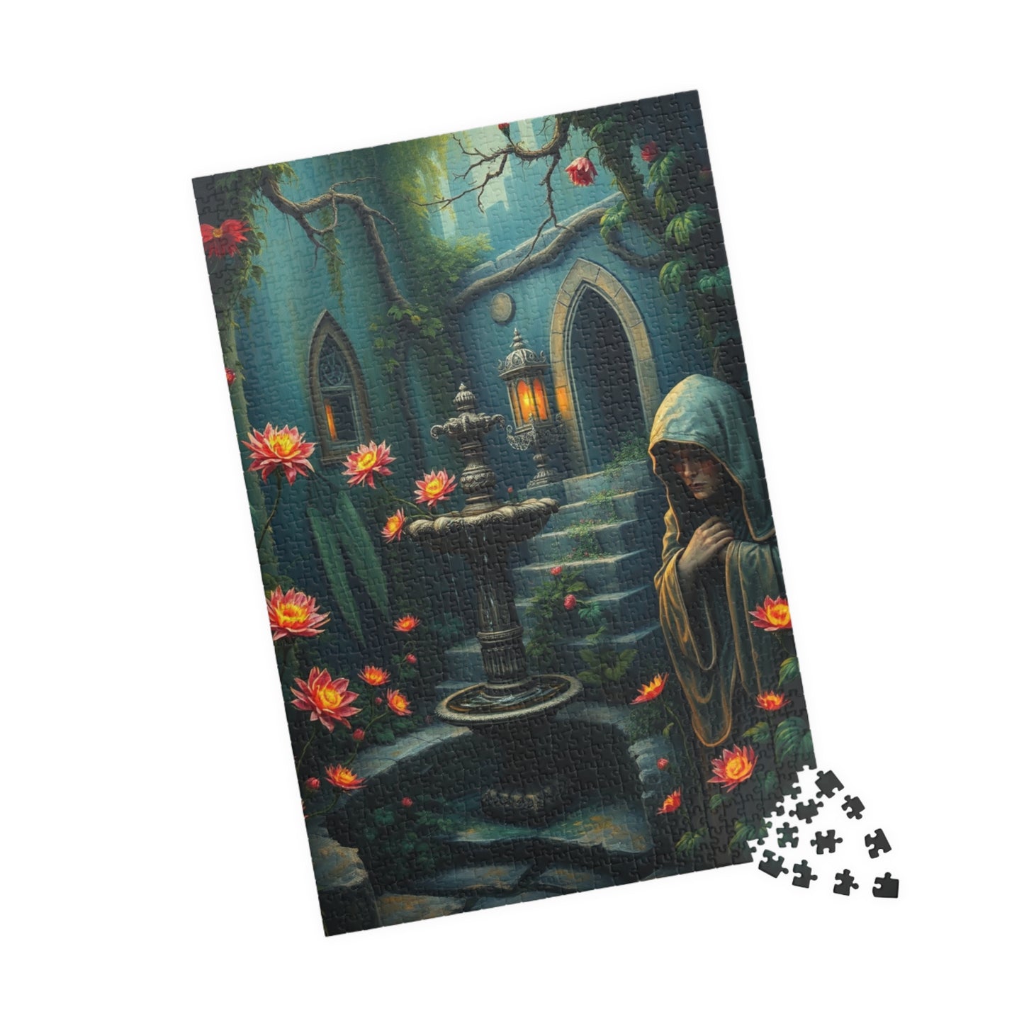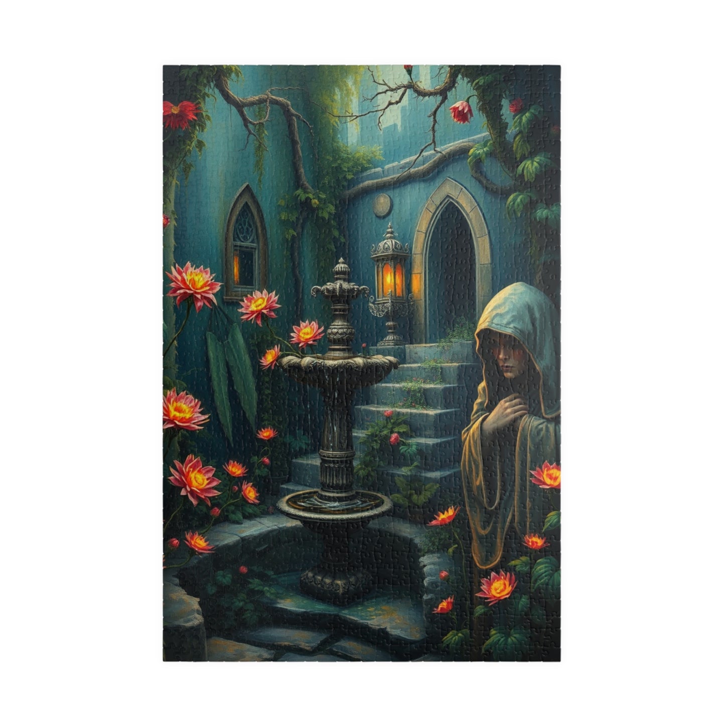 Gothic Garden Puzzle, Mysterious Bioluminescent Flowers & Stone Statues, 520-Piece Jigsaw, Dark Fantasy Art, Mystery Garden Puzzle, Fantasy